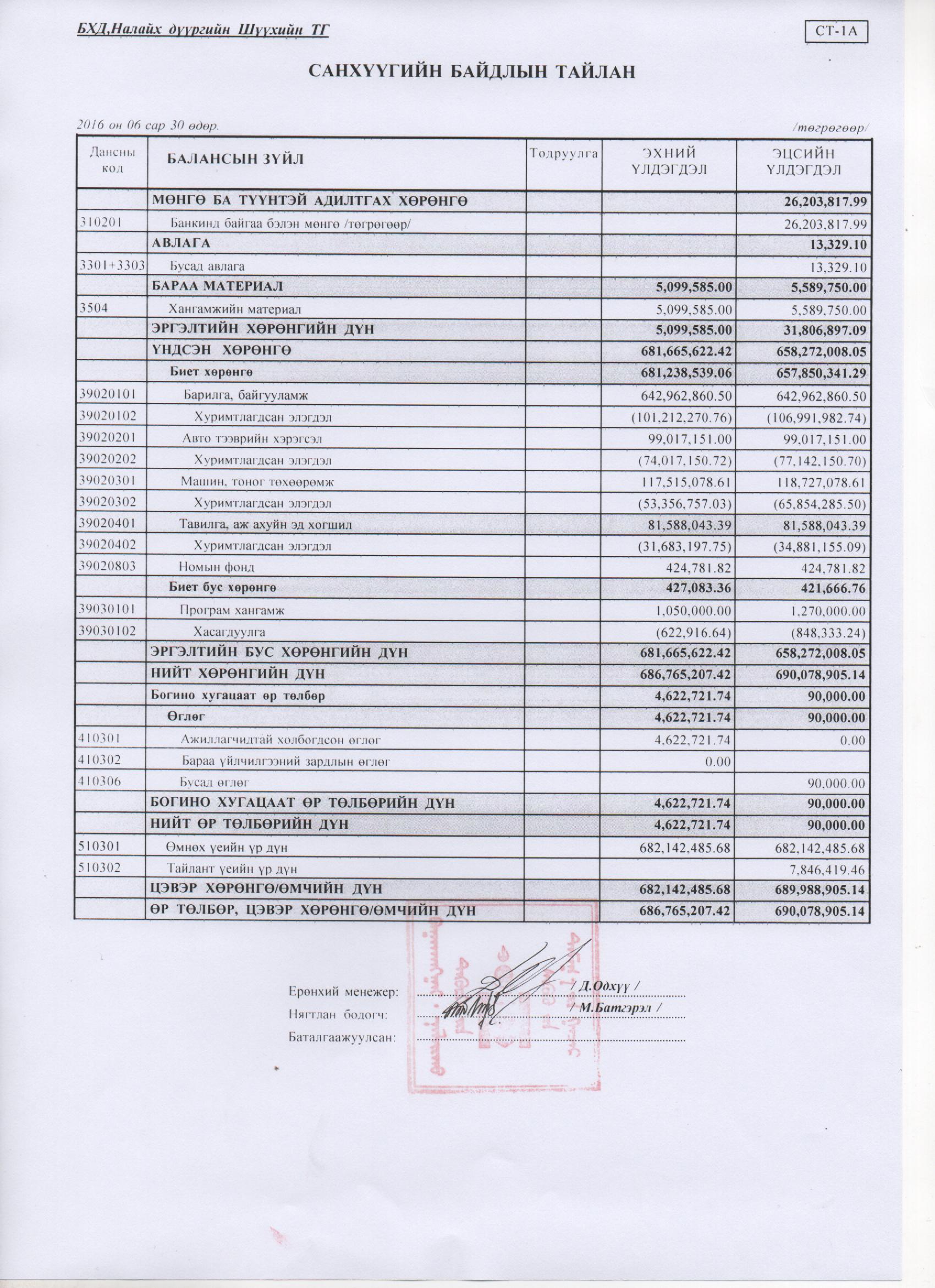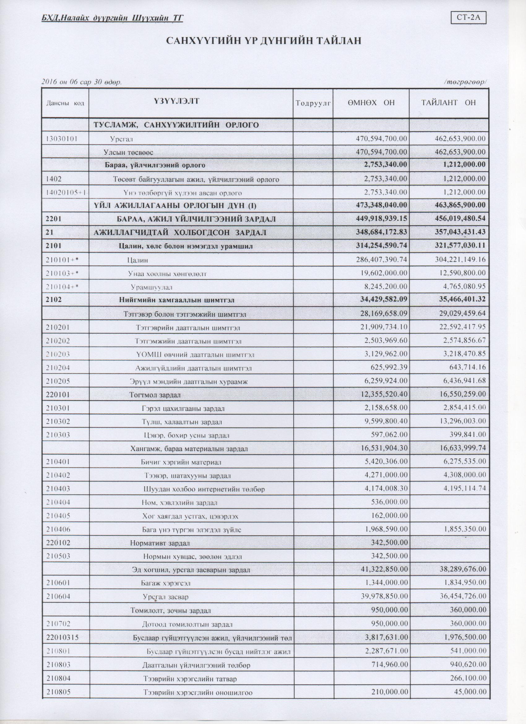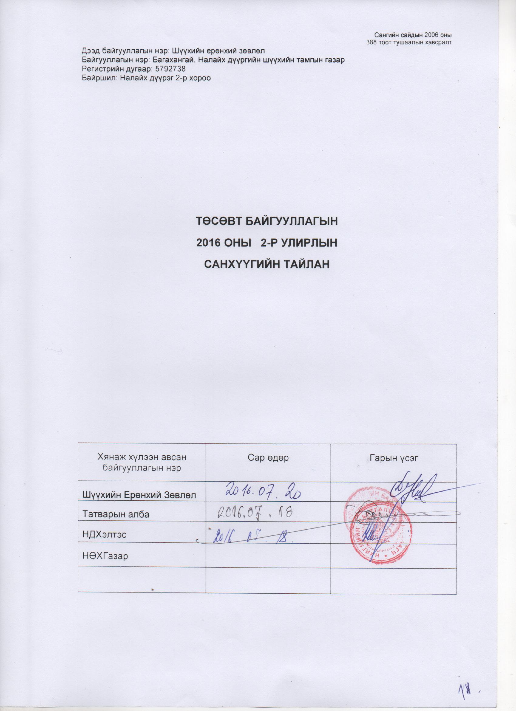 2016 оны 2 дугаар улиралын санхүүгийн тайлан