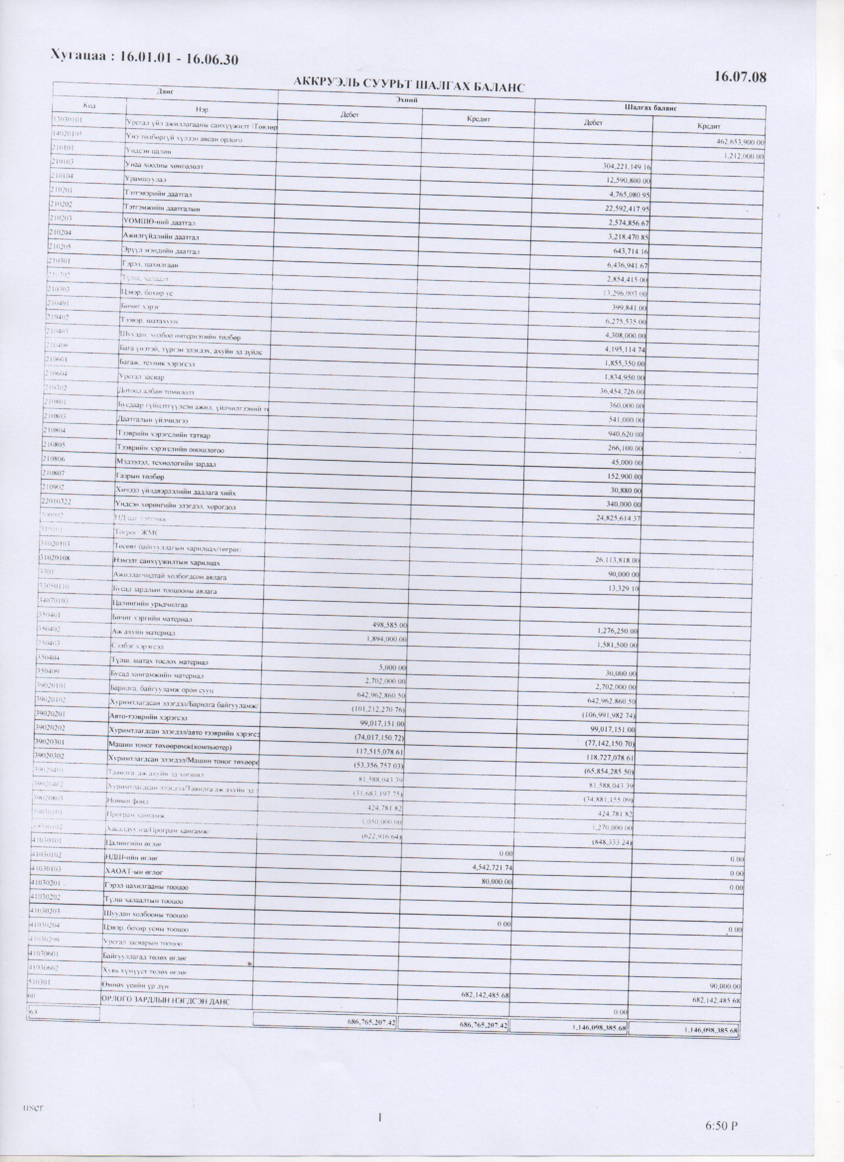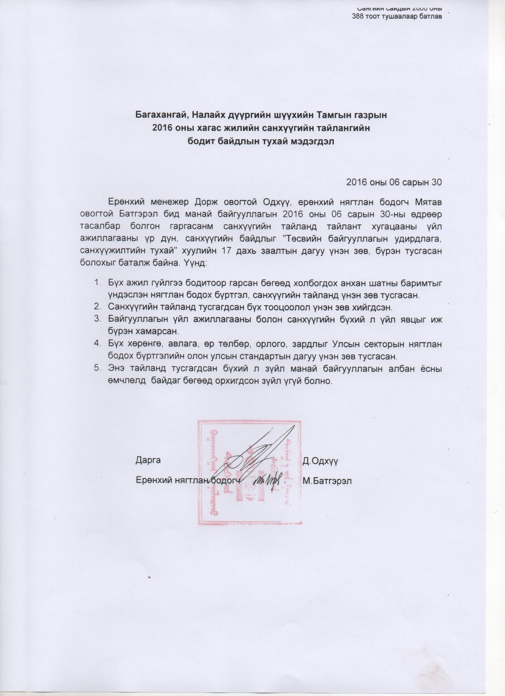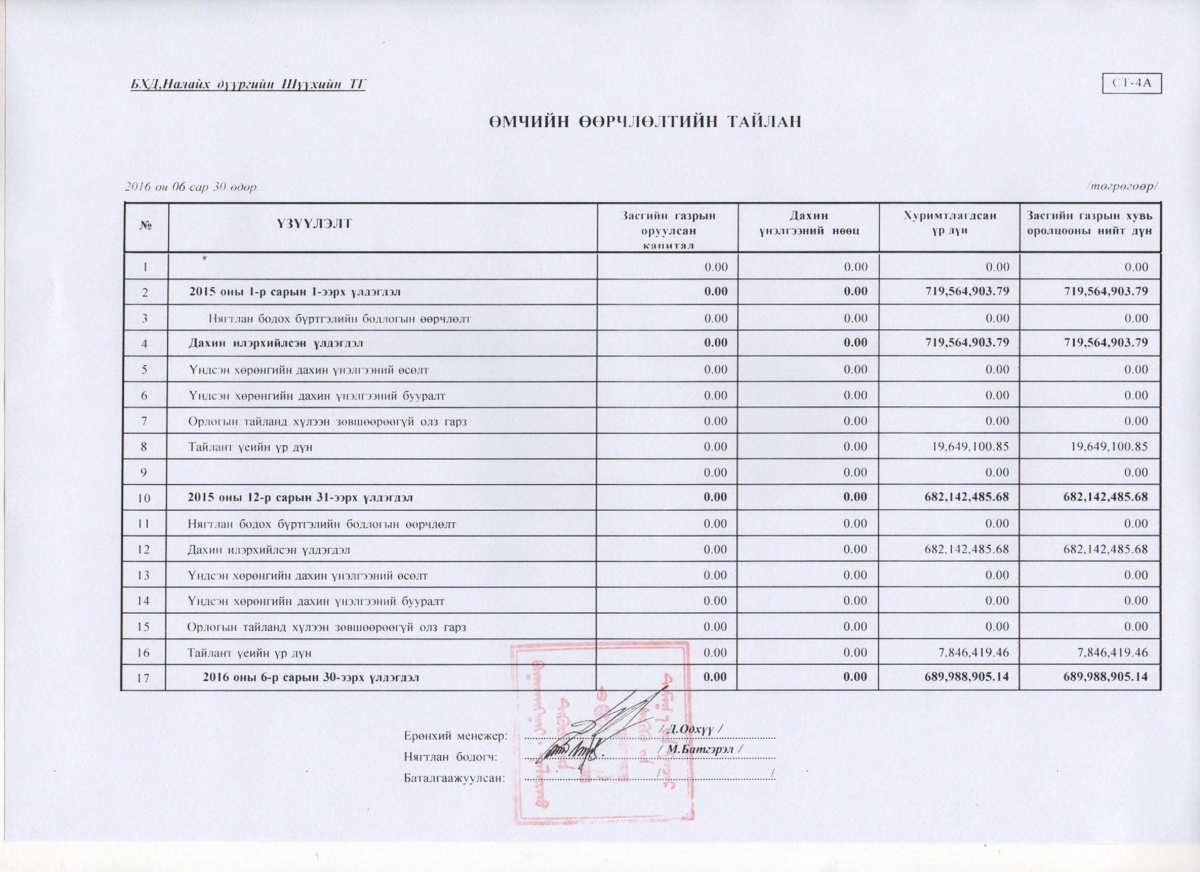2016 оны 2 дугаар улиралын санхүүгийн тайлан