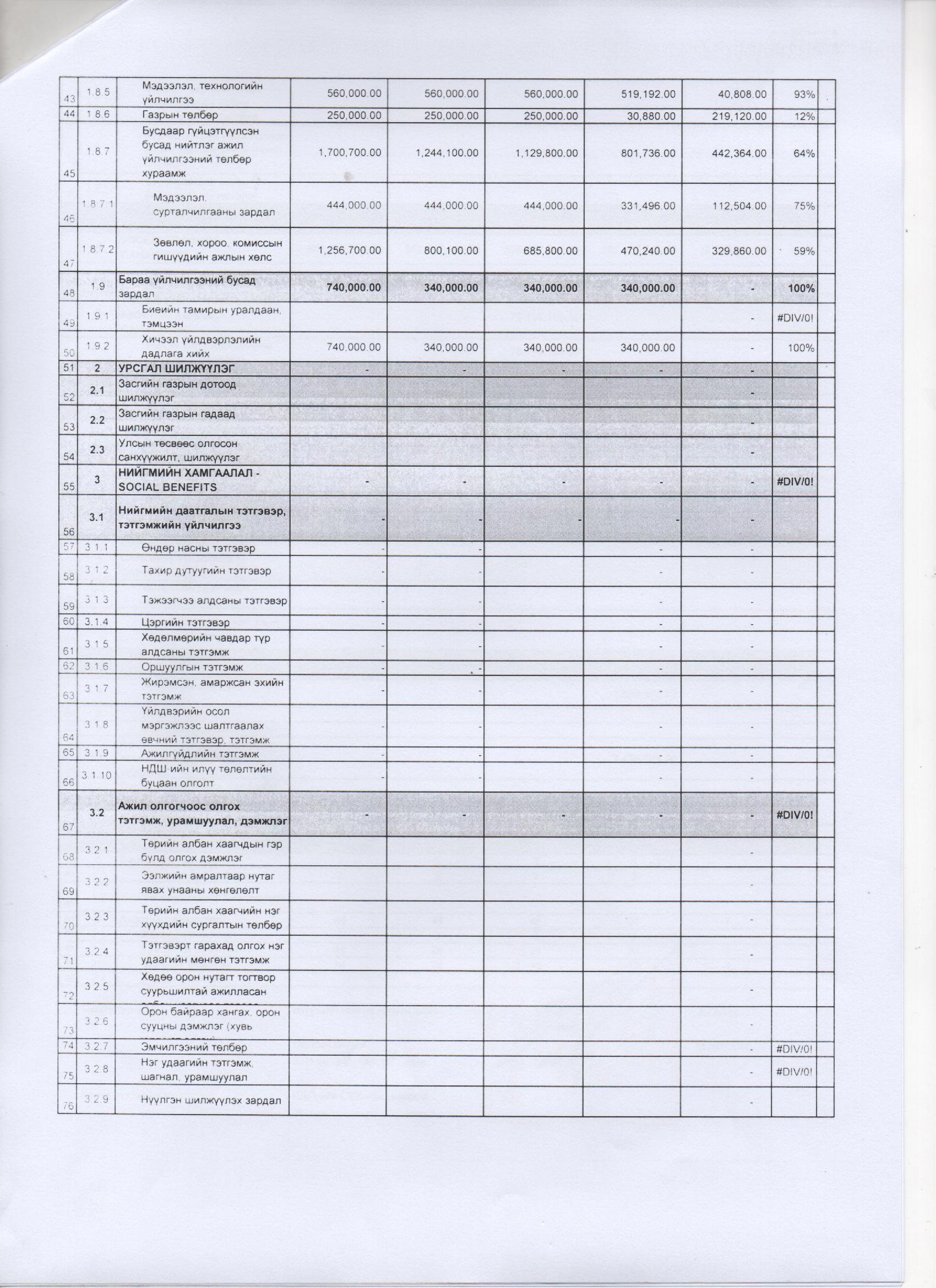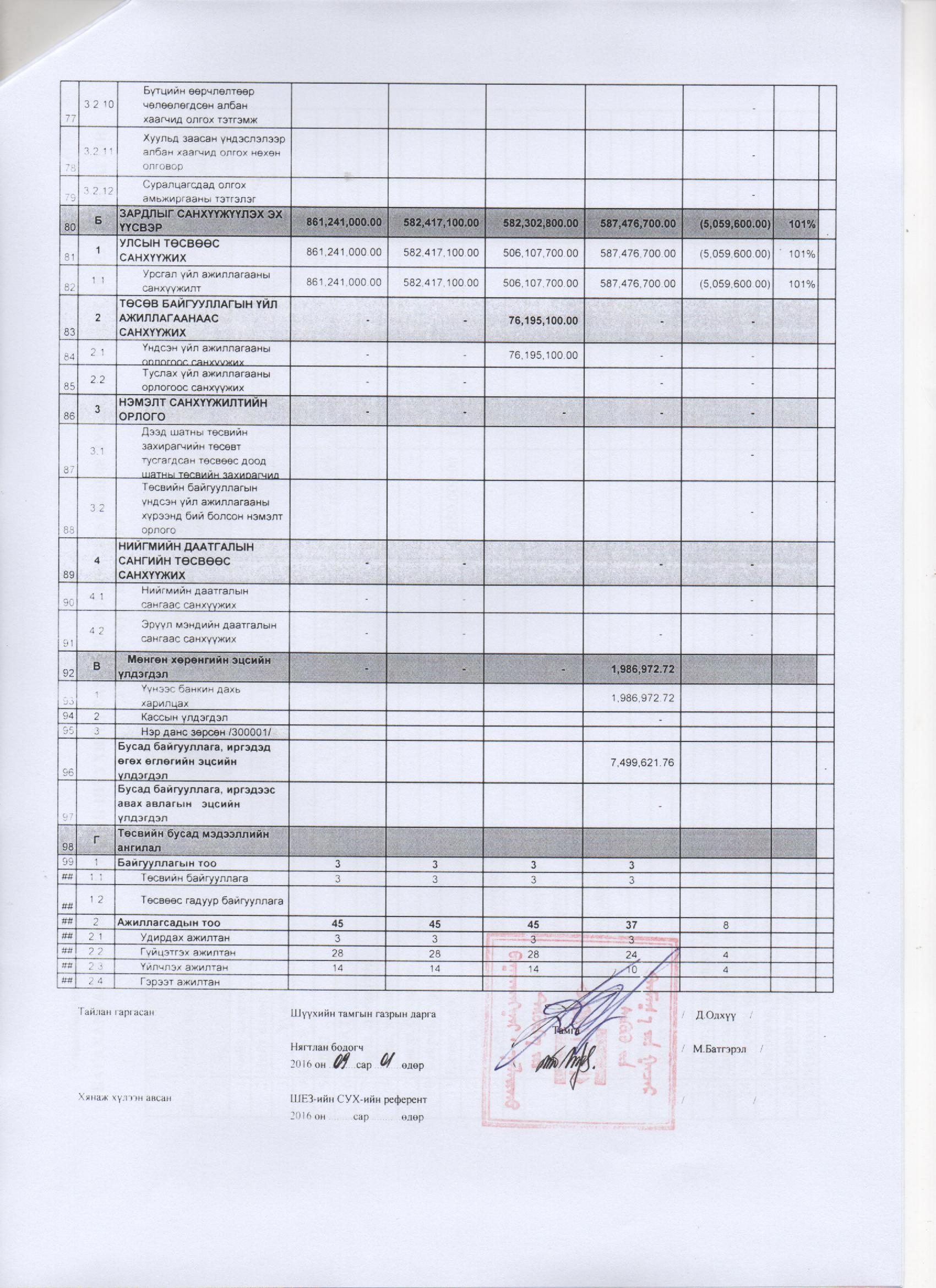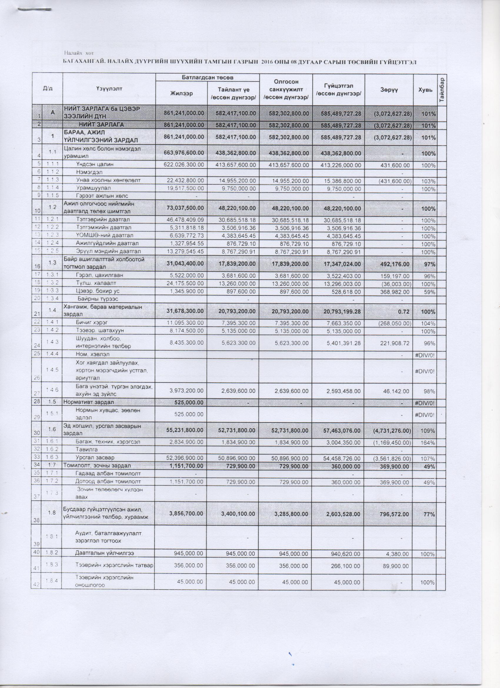2016 оны 8 дугаар сарын төсвийн гүйцэтгэл