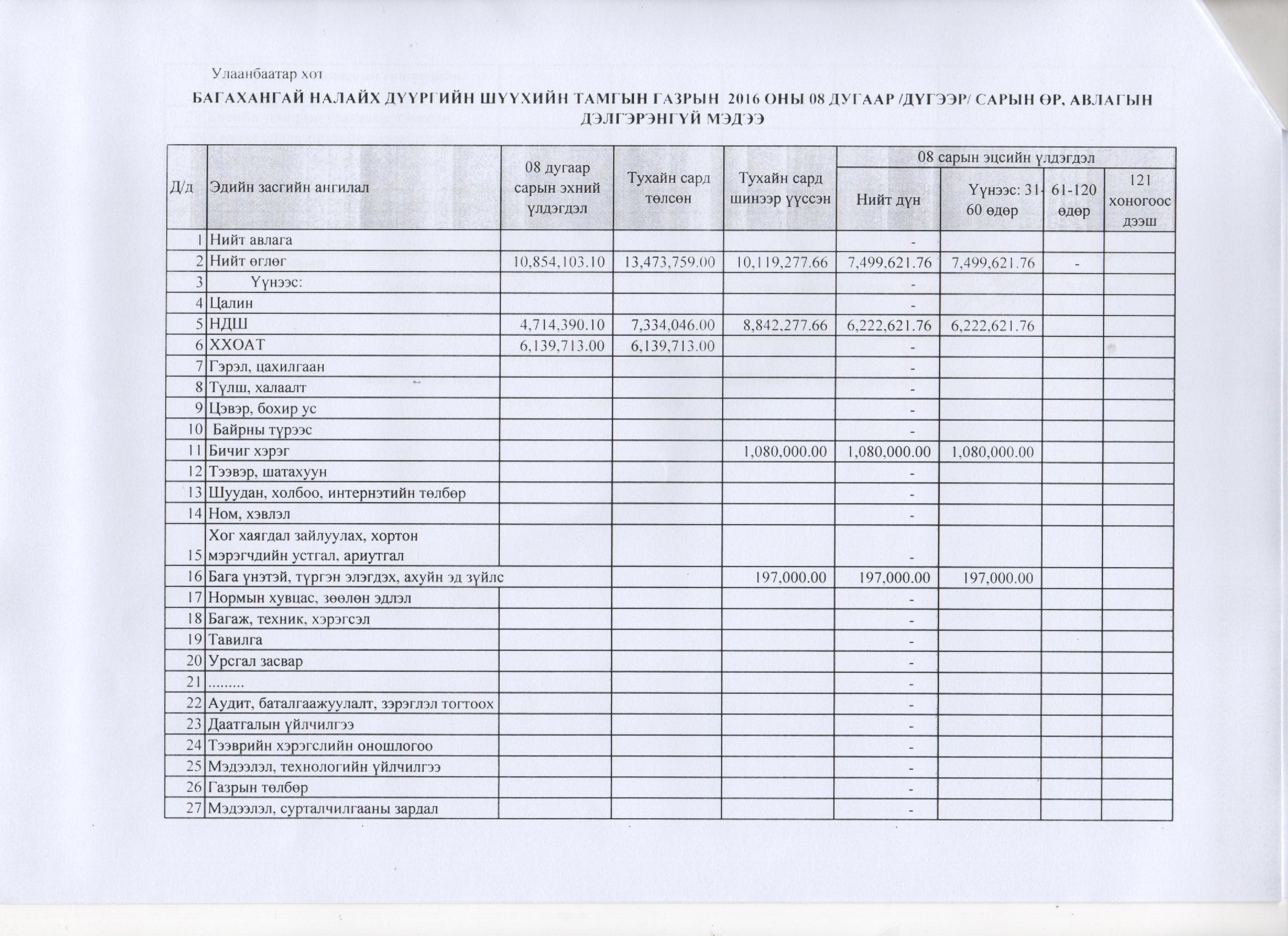 Өглөг, авлагын мэдээ 2016 оны 8 дугаар сар