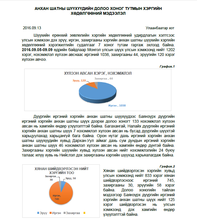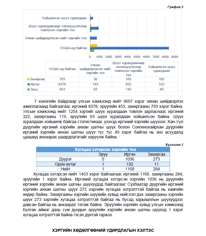 Анхан шатны шүүхүүдийн долоо хоног тутмын хэргийн хөдөлгөөний мэдээлэл