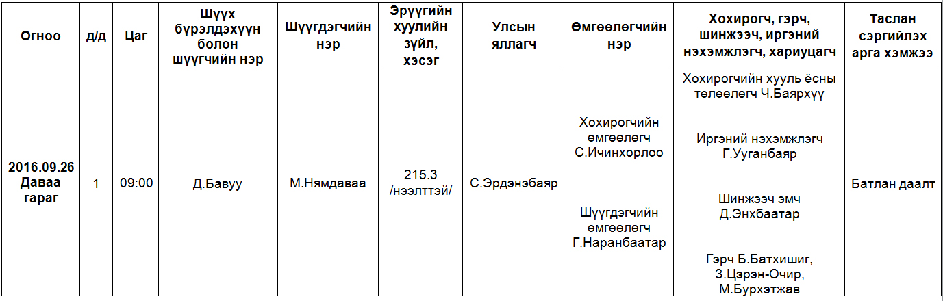 АНХАН ШАТНЫ ШҮҮХ ХУРАЛДААНААР ХЭЛЭЛЦҮҮЛЭХ ЭРҮҮГИЙН ХЭРГҮҮД (2016.09.26-09.30)