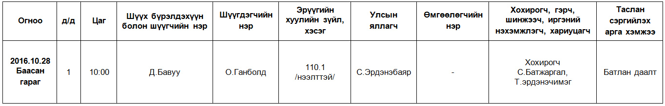 АНХАН ШАТНЫ ШҮҮХ ХУРАЛДААНААР ХЭЛЭЛЦҮҮЛЭХ ЭРҮҮГИЙН ХЭРГҮҮД (2016.10.24-10.28)