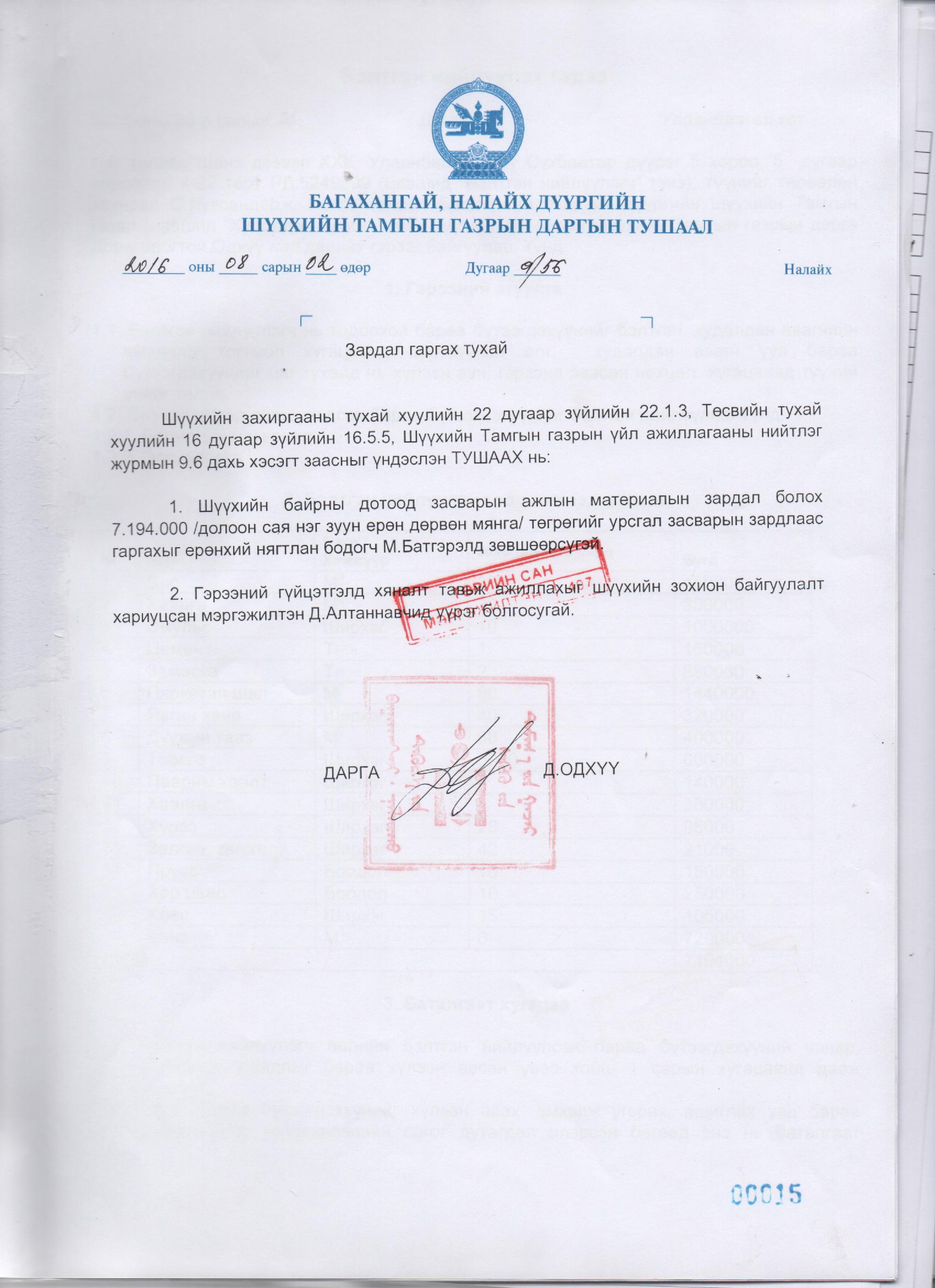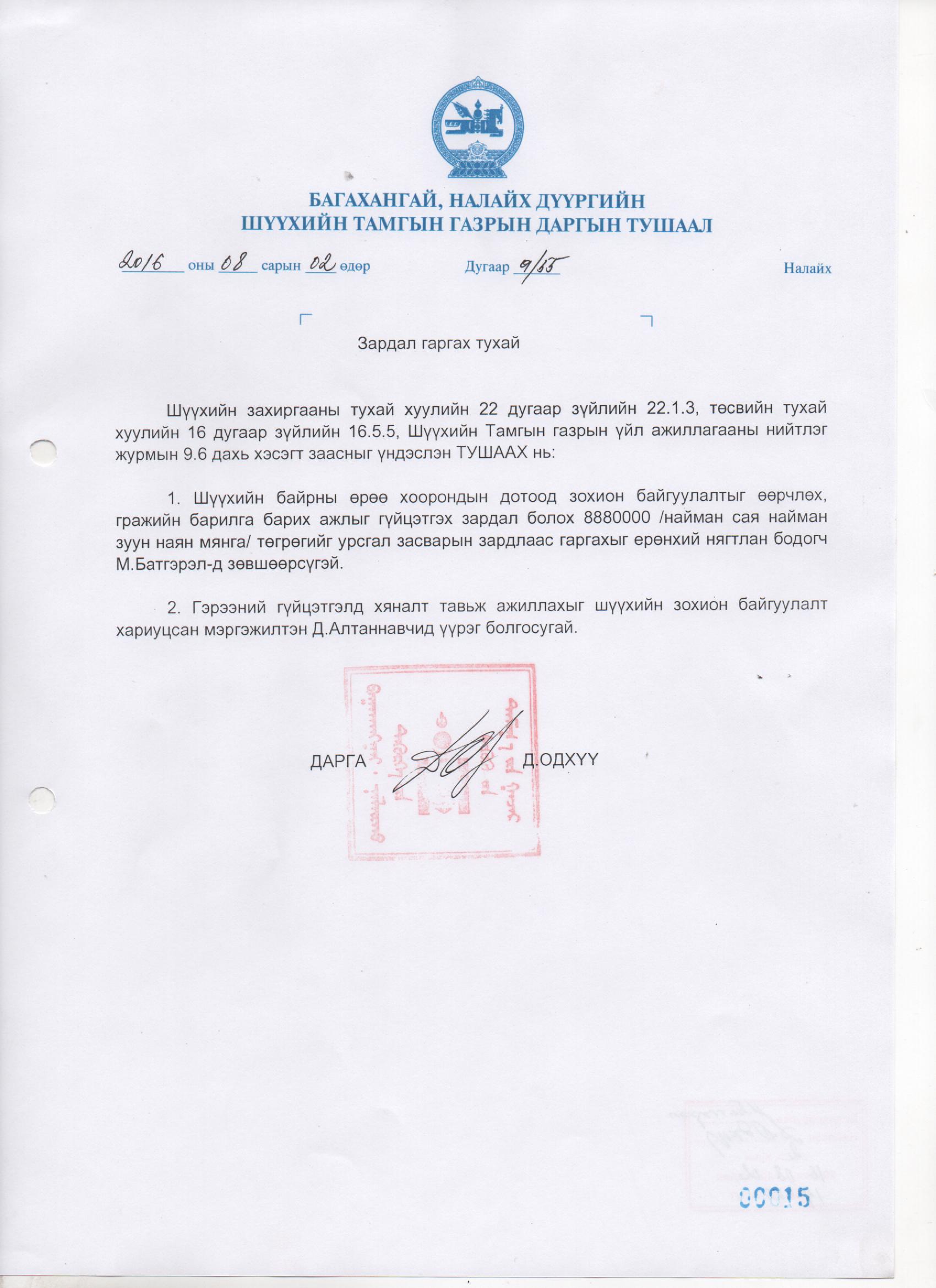 Тушаал 2016 оны 8 дугаар сар