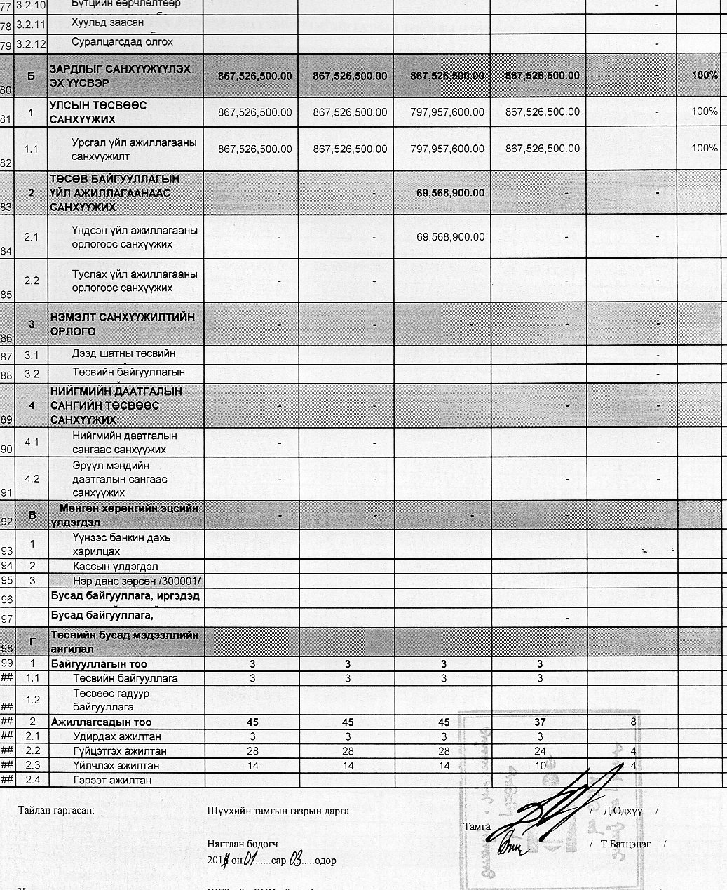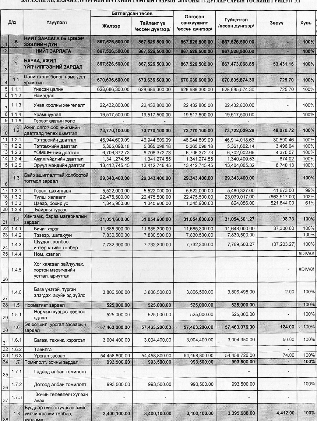 2016 оны 12 дугаар сарын төсвийн гүйцэтгэл