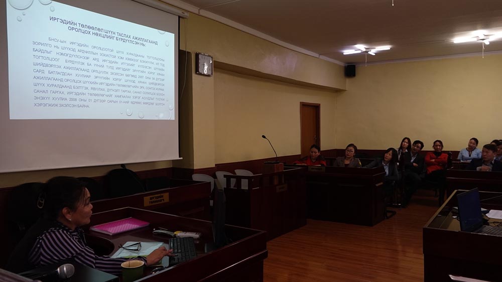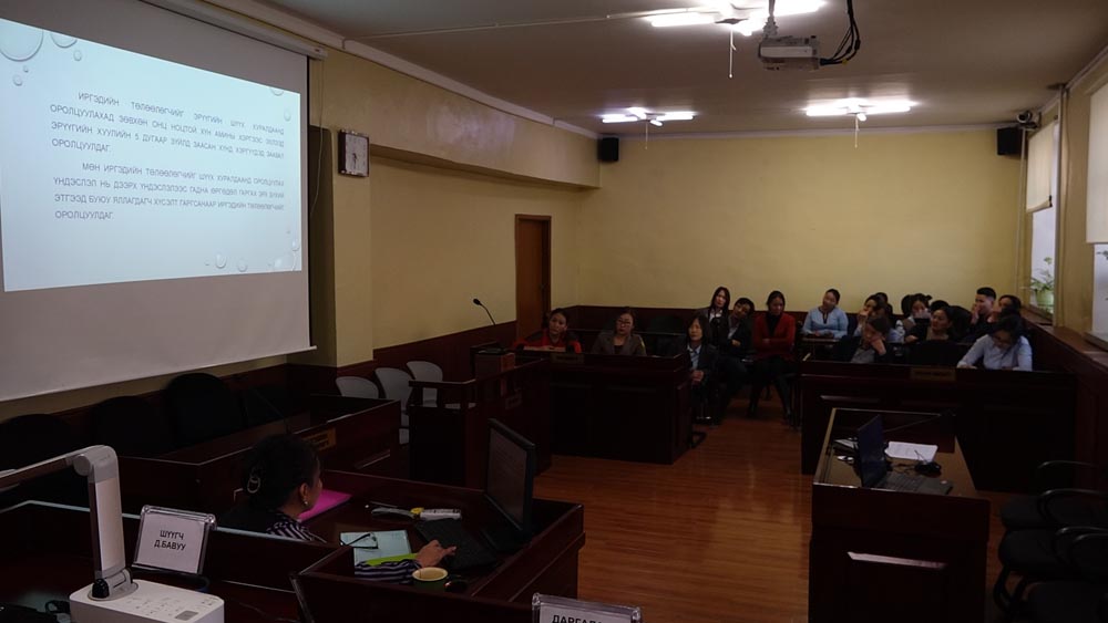 Сургалтанд шүүхийн захиргааны болон үйлчилгээний  ажилтнууд  санал бодлоо солилцон идэвхтэй оролцлоо.