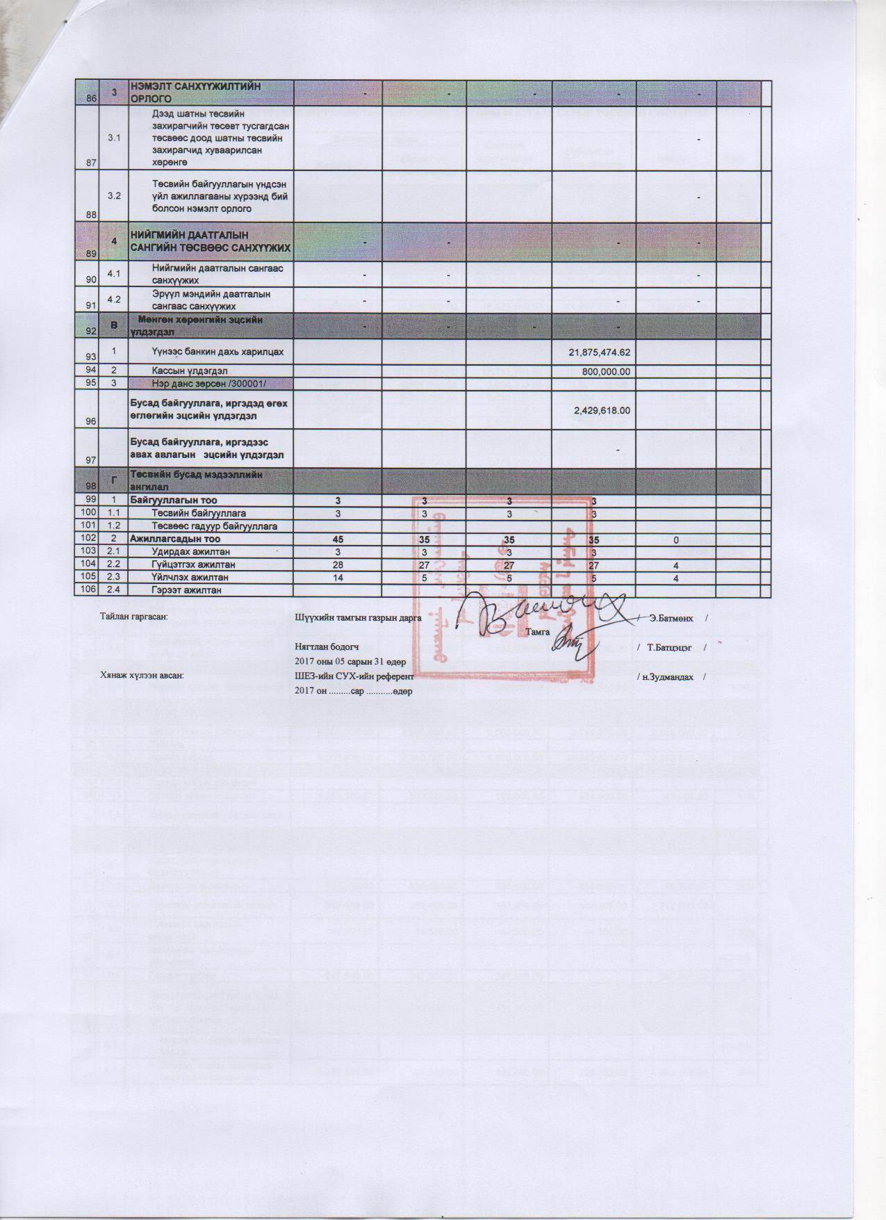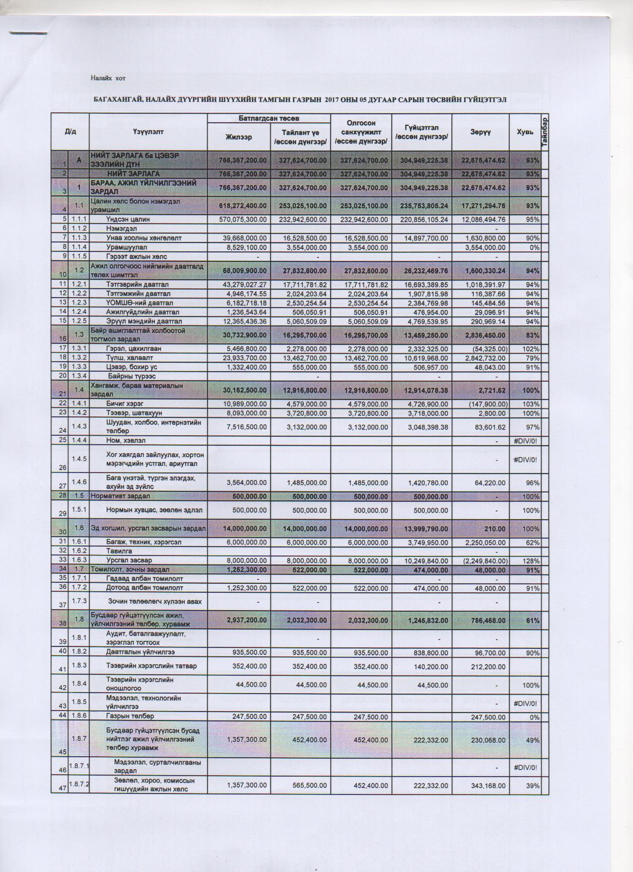 2017 оны 5 дугаар сарын төсвийн гүйцэтгэл