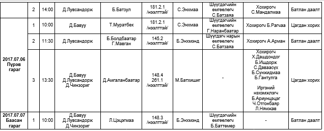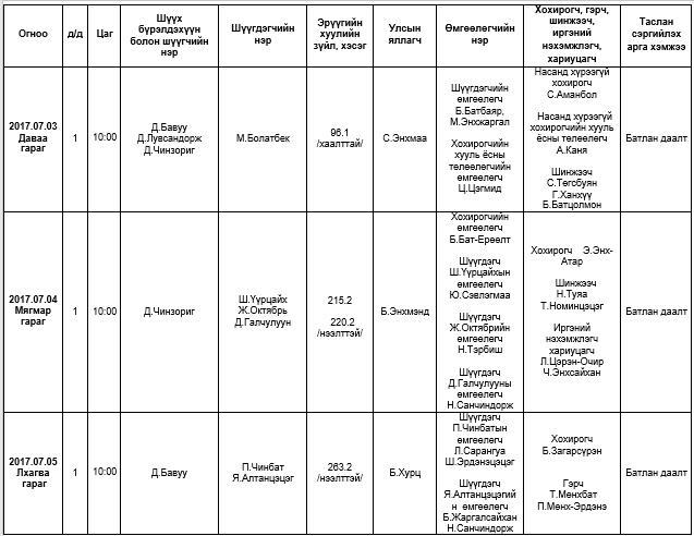 АНХАН ШАТНЫ ШҮҮХ ХУРАЛДААНААР ХЭЛЭЛЦҮҮЛЭХ ЭРҮҮГИЙН ХЭРГҮҮД (2017.07.03-07.07)