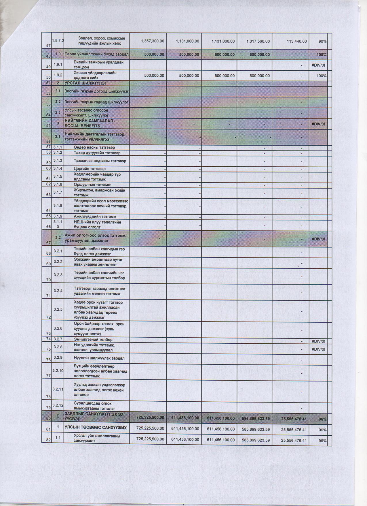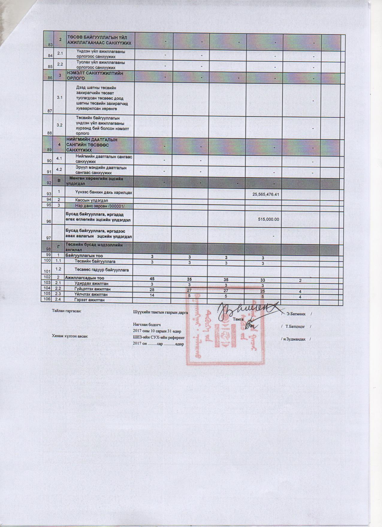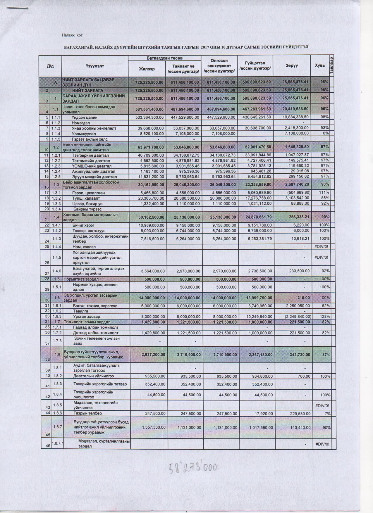 2017 оны 10 дугаар сарын төсвийн гүйцэтгэл