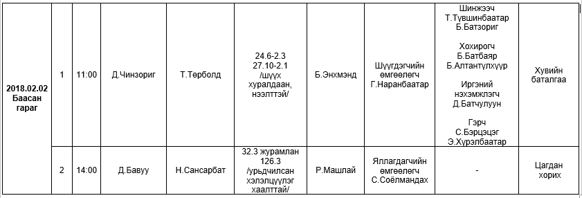 АНХАН ШАТНЫ ШҮҮХ ХУРАЛДААНААР ХЭЛЭЛЦҮҮЛЭХ ЭРҮҮГИЙН ХЭРГҮҮД (2018.01.29-02.02)