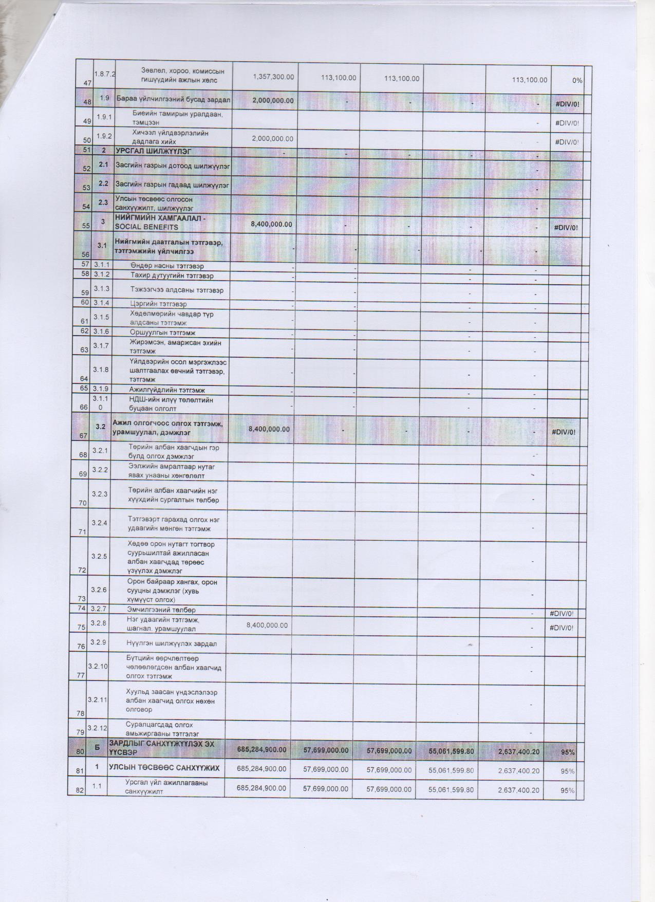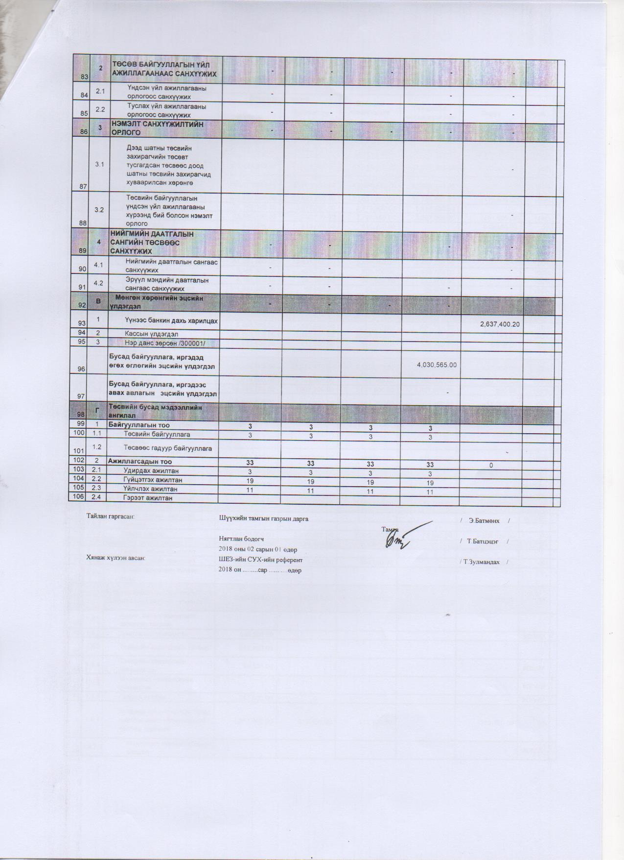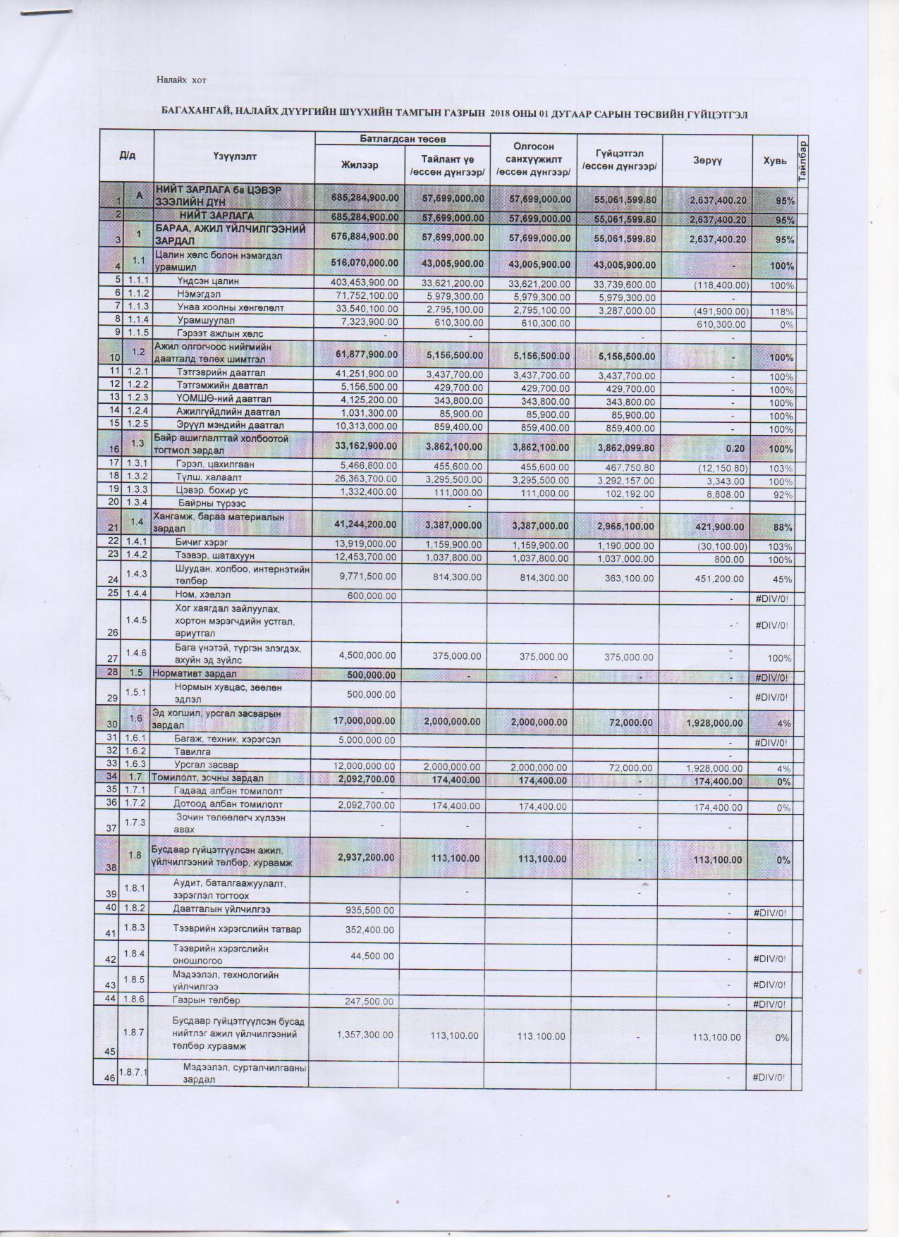 2018 оны 1 дүгээр сарын төсвийн гүйцэтгэл