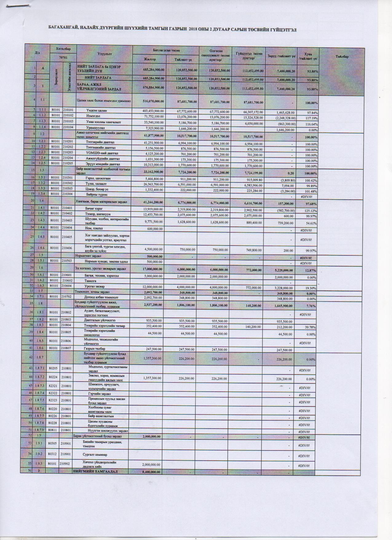 2018 оны 2 дугаар сарын төсвийн гүйцэтгэл