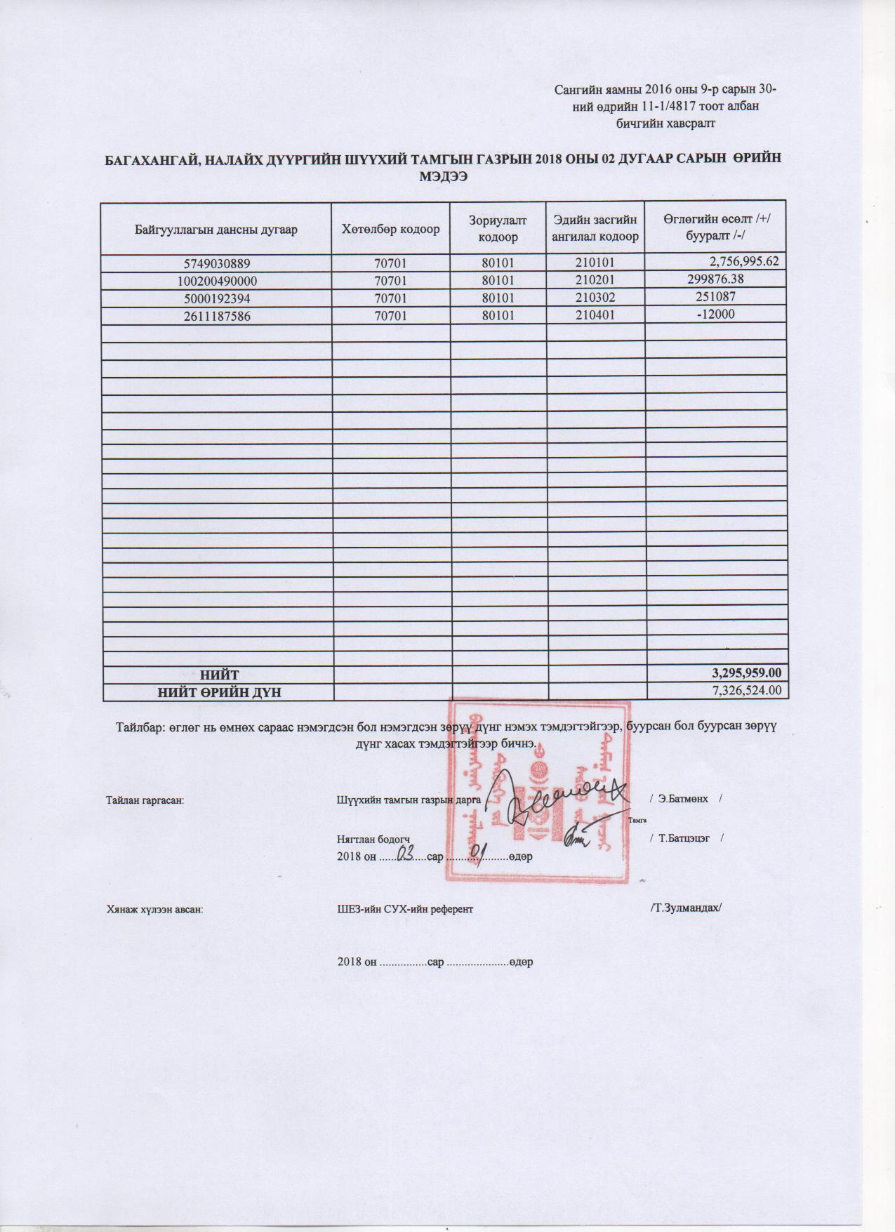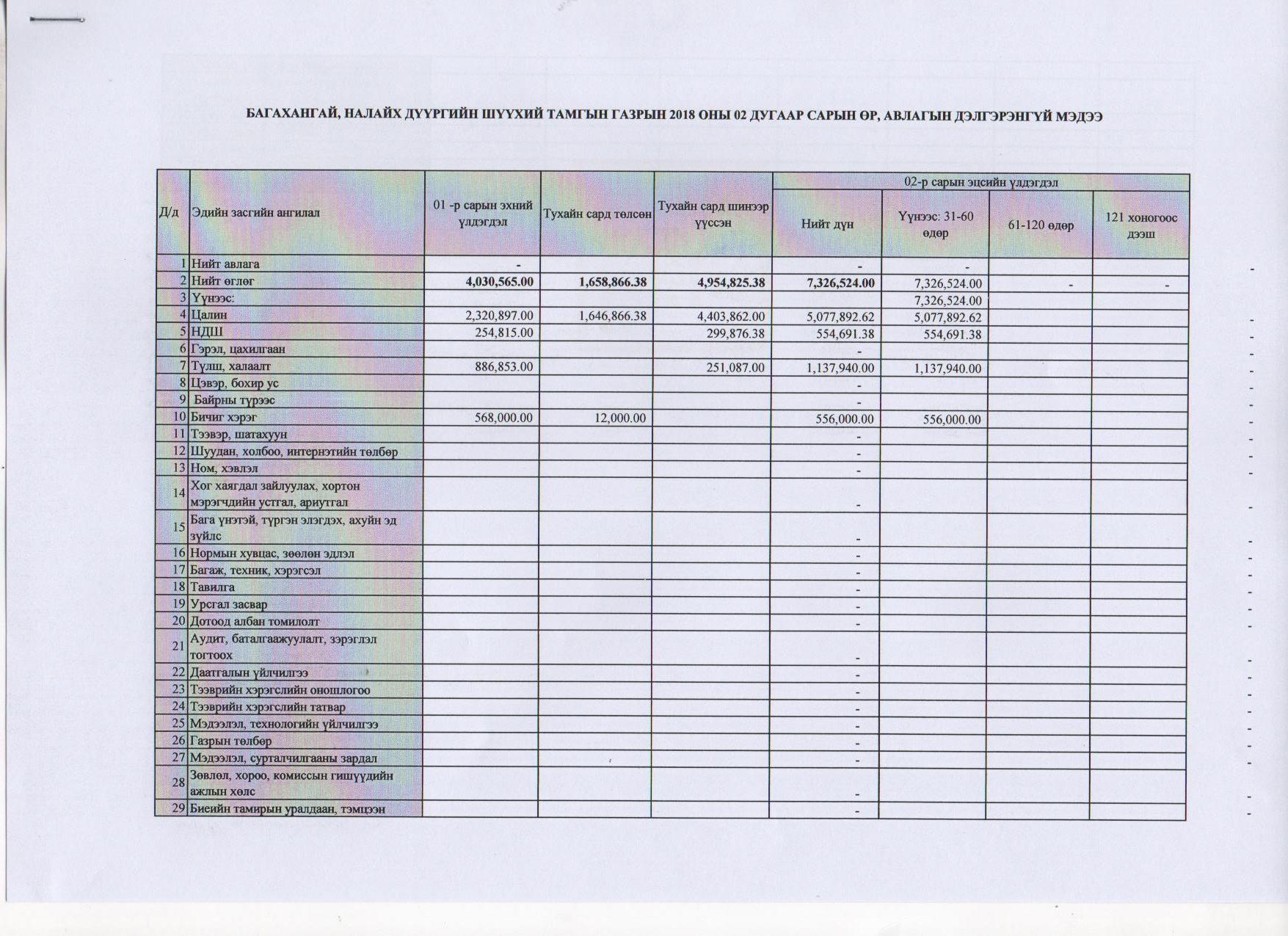 Өглөг, авлагын мэдээ 2018 оны 2 дугаар сар