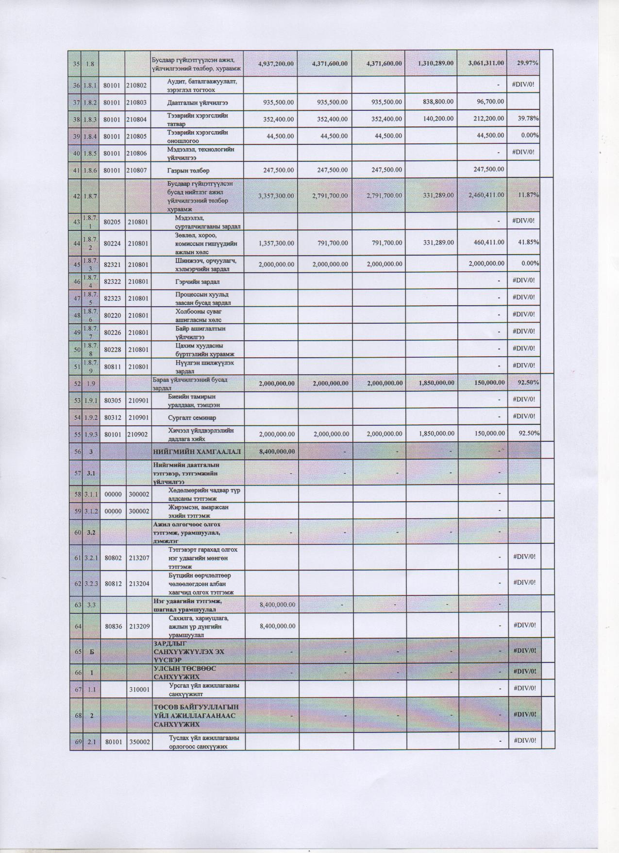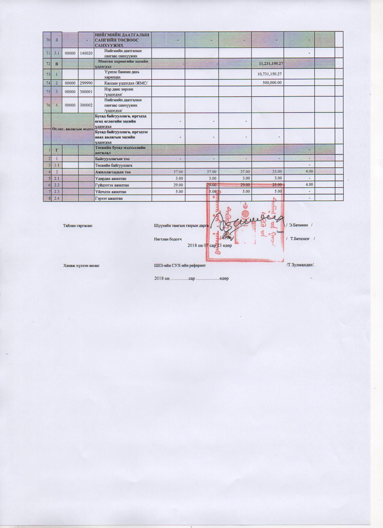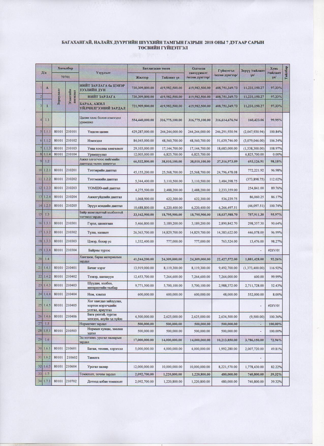 2018 оны 7 дугаар сарын төсвийн гүйцэтгэл