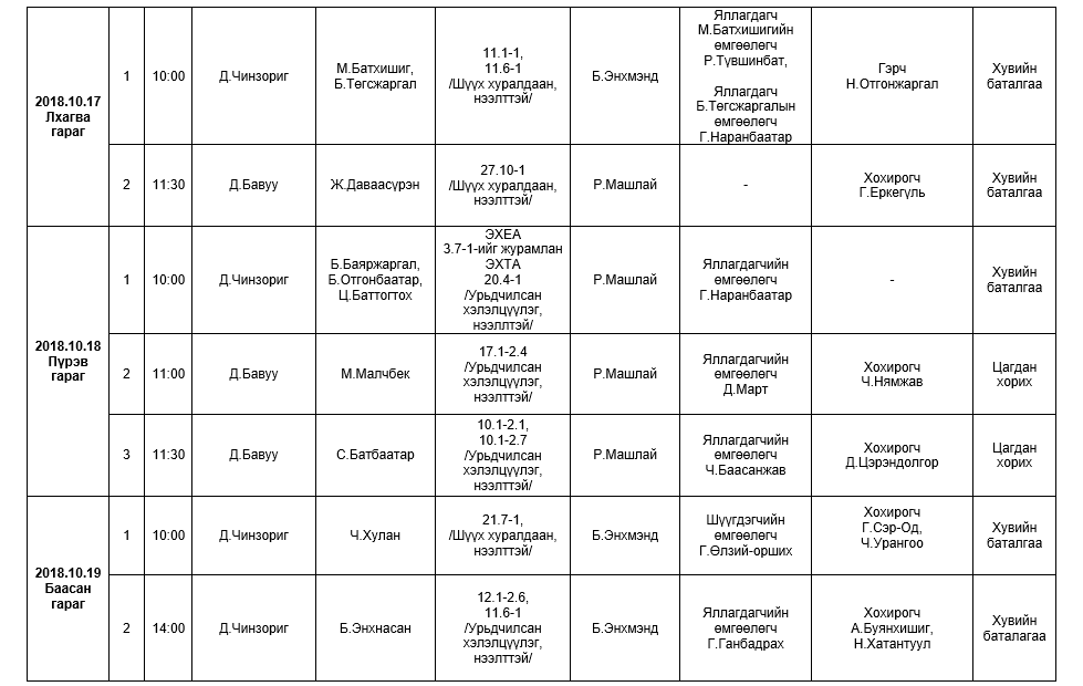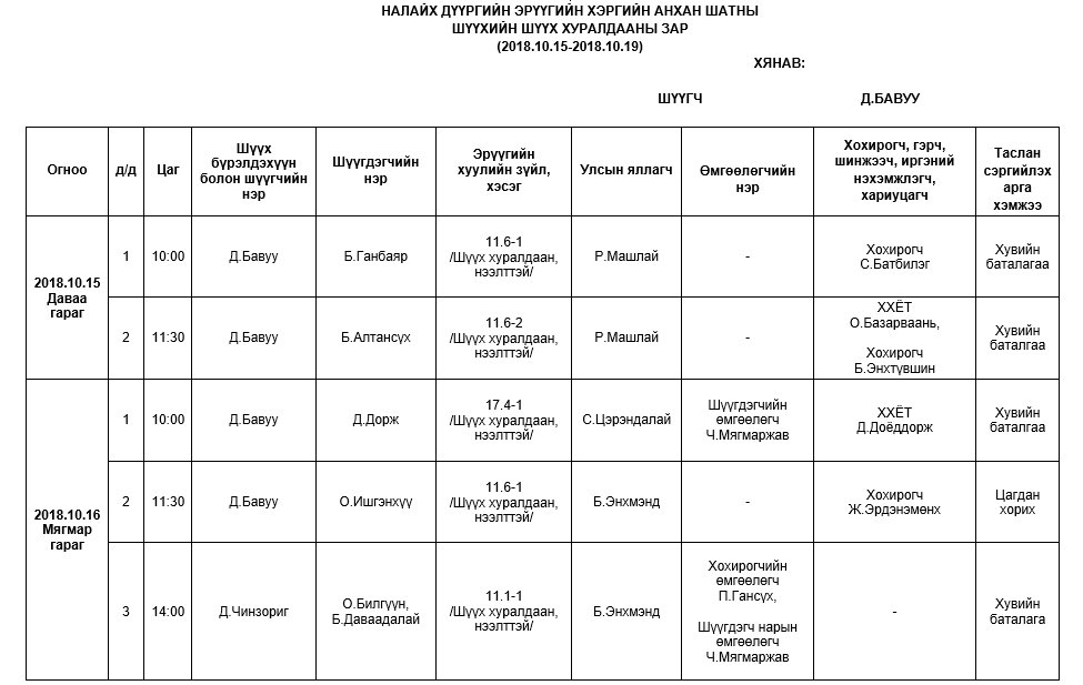 НАЛАЙХ - АНХАН ШАТНЫ ШҮҮХ ХУРАЛДААНААР ХЭЛЭЛЦҮҮЛЭХ ЭРҮҮГИЙН ХЭРГҮҮД (2018.10.15-10.19)