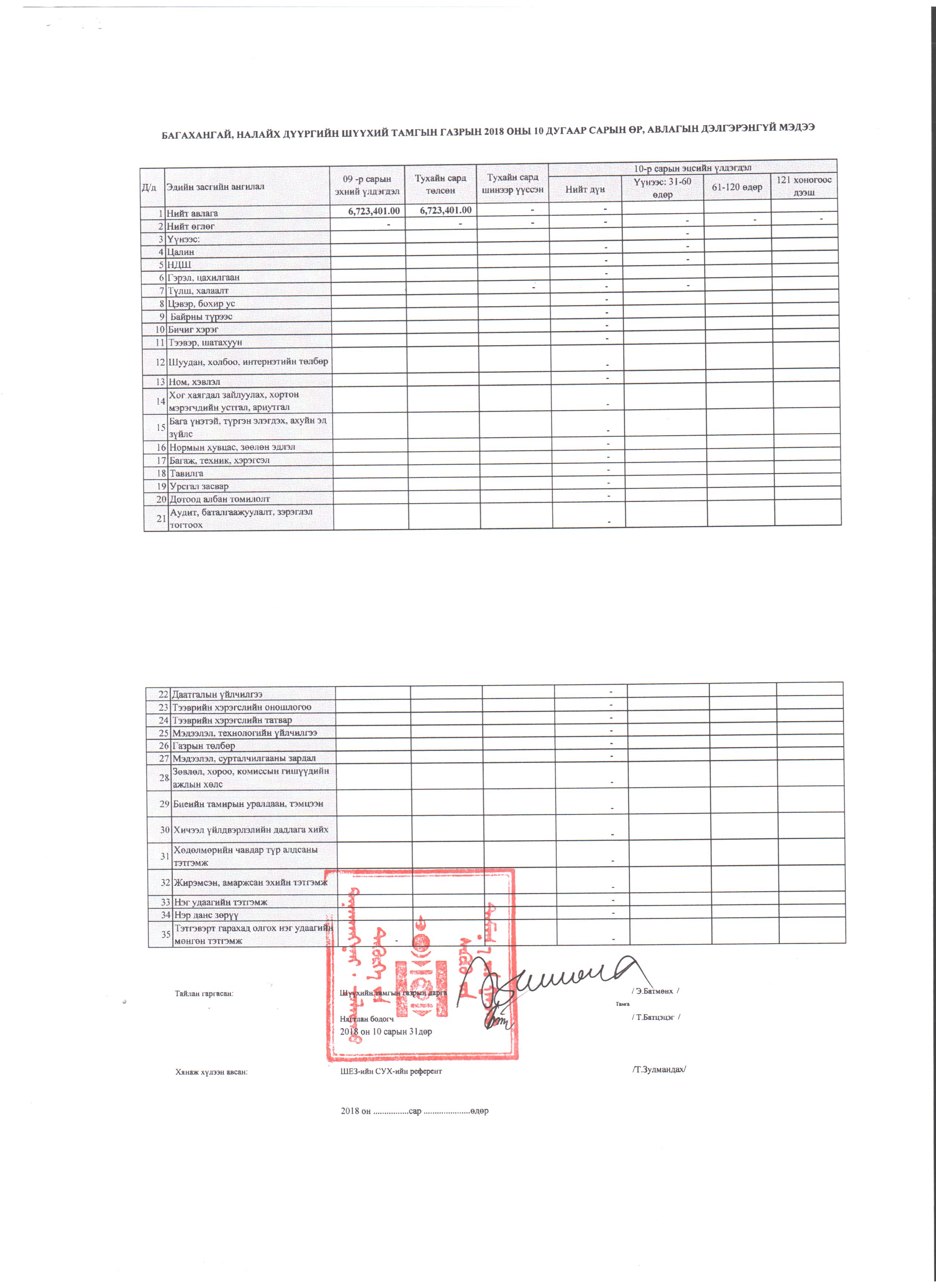 Өглөг, авлагын мэдээ 2018 оны 10 дугаар сар