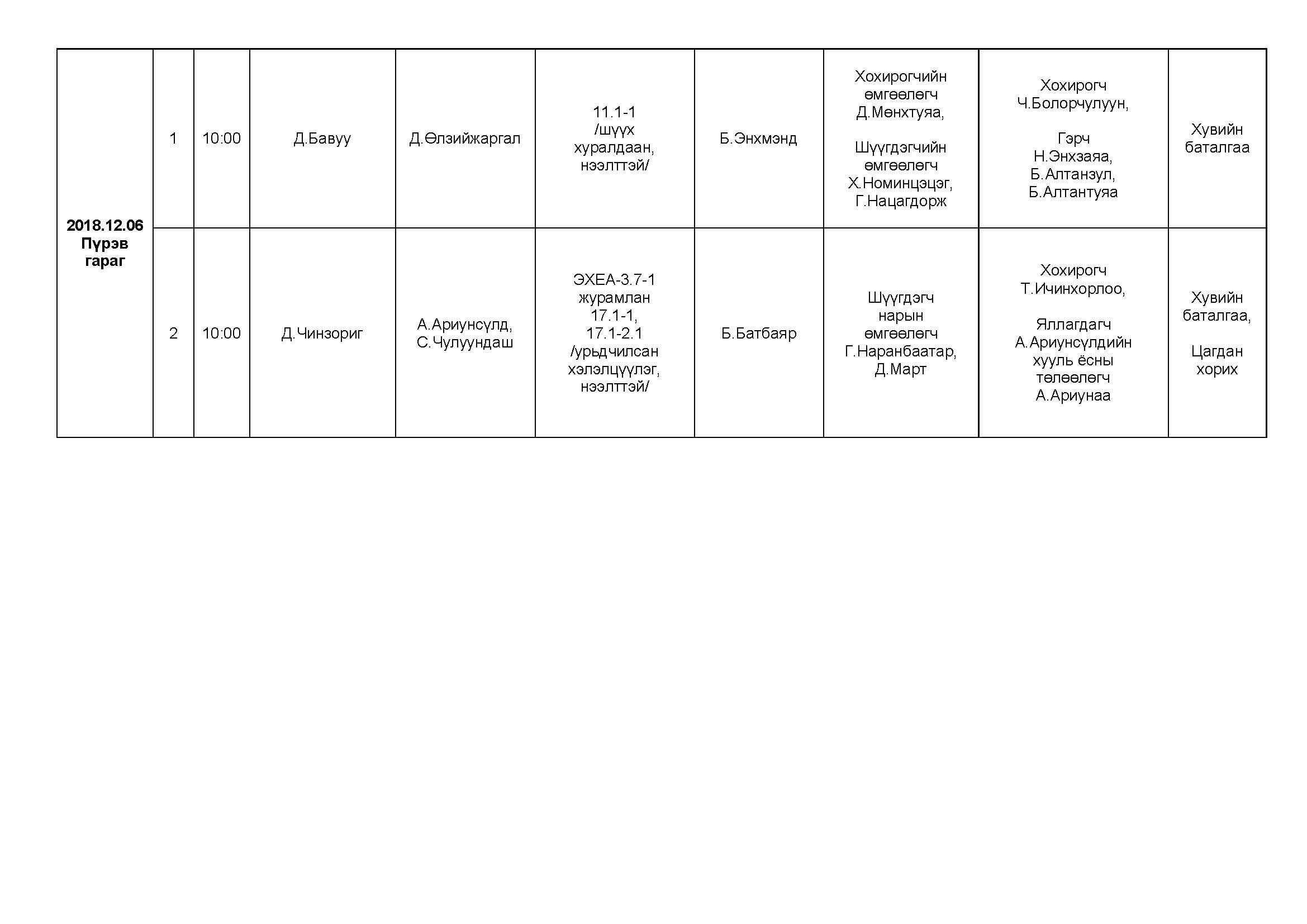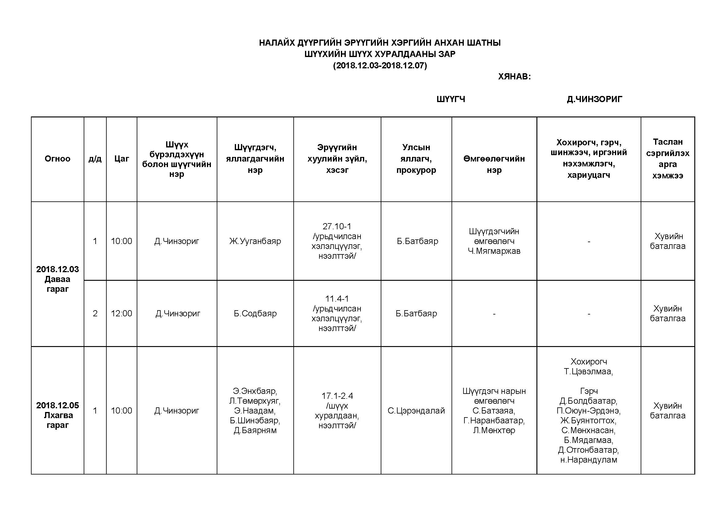 НАЛАЙХ - АНХАН ШАТНЫ ШҮҮХ ХУРАЛДААНААР ХЭЛЭЛЦҮҮЛЭХ ЭРҮҮГИЙН ХЭРГҮҮД (2018.12.03-12.07)