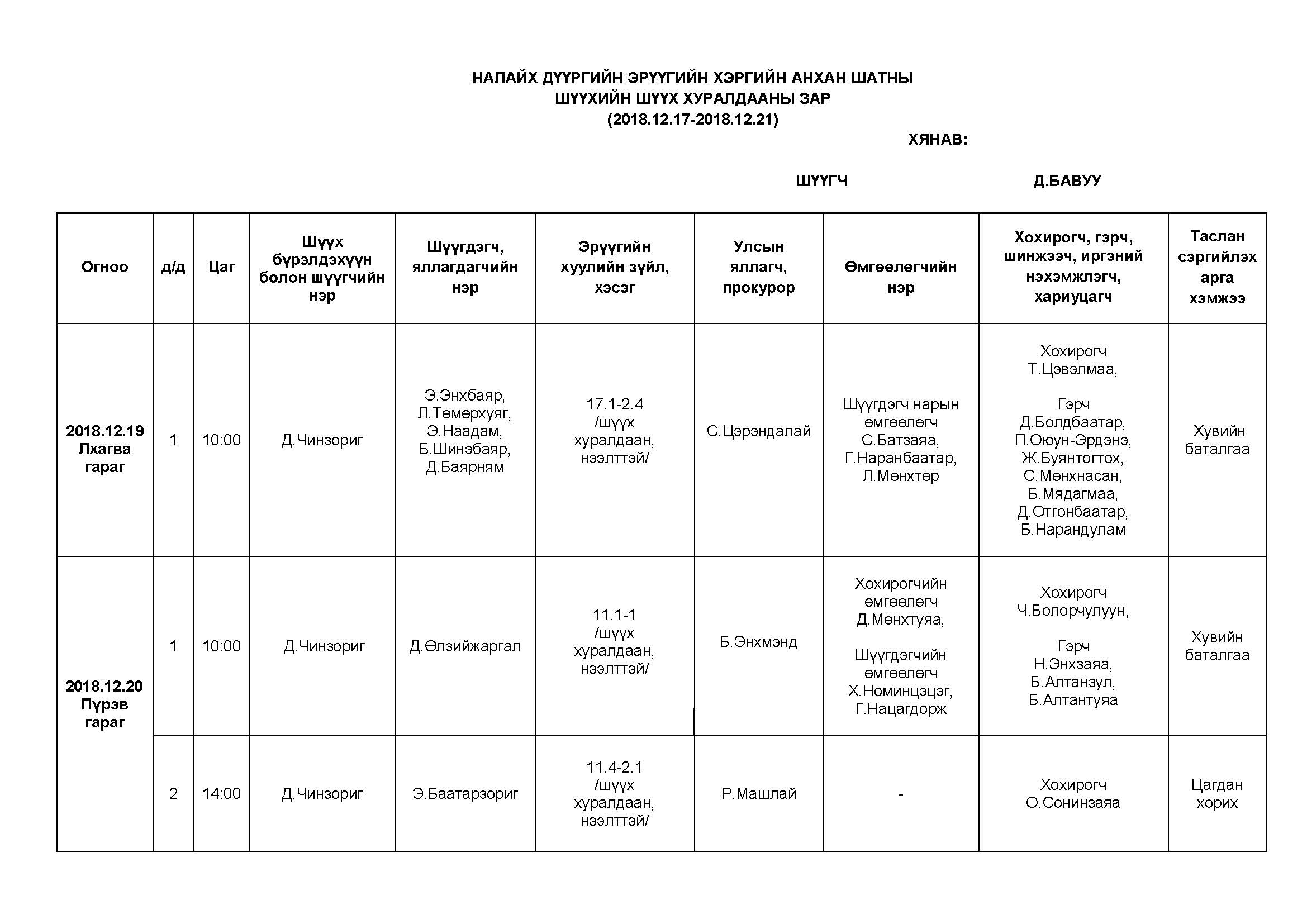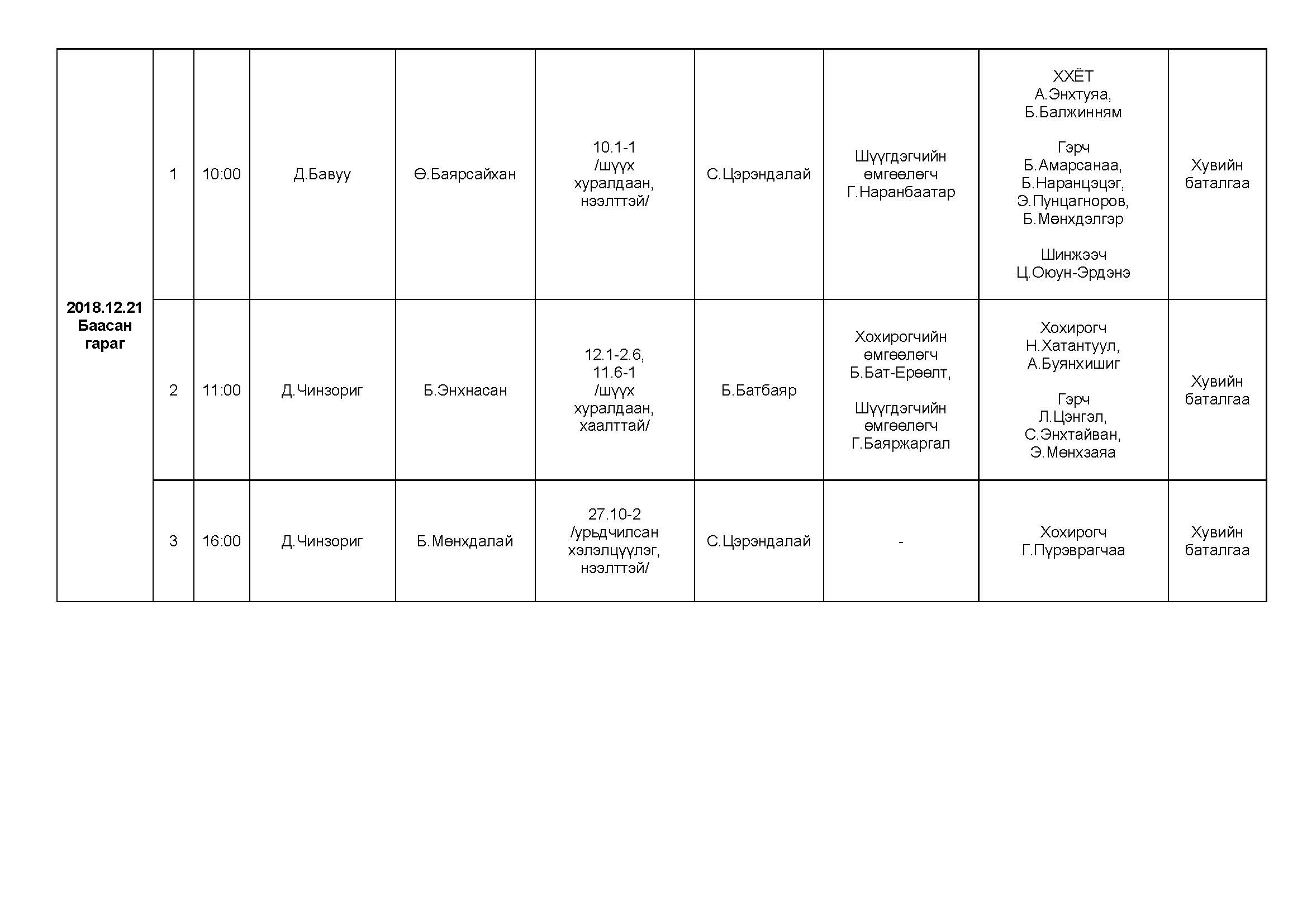 НАЛАЙХ - АНХАН ШАТНЫ ШҮҮХ ХУРАЛДААНААР ХЭЛЭЛЦҮҮЛЭХ ЭРҮҮГИЙН ХЭРГҮҮД (2018.12.17-12.21)