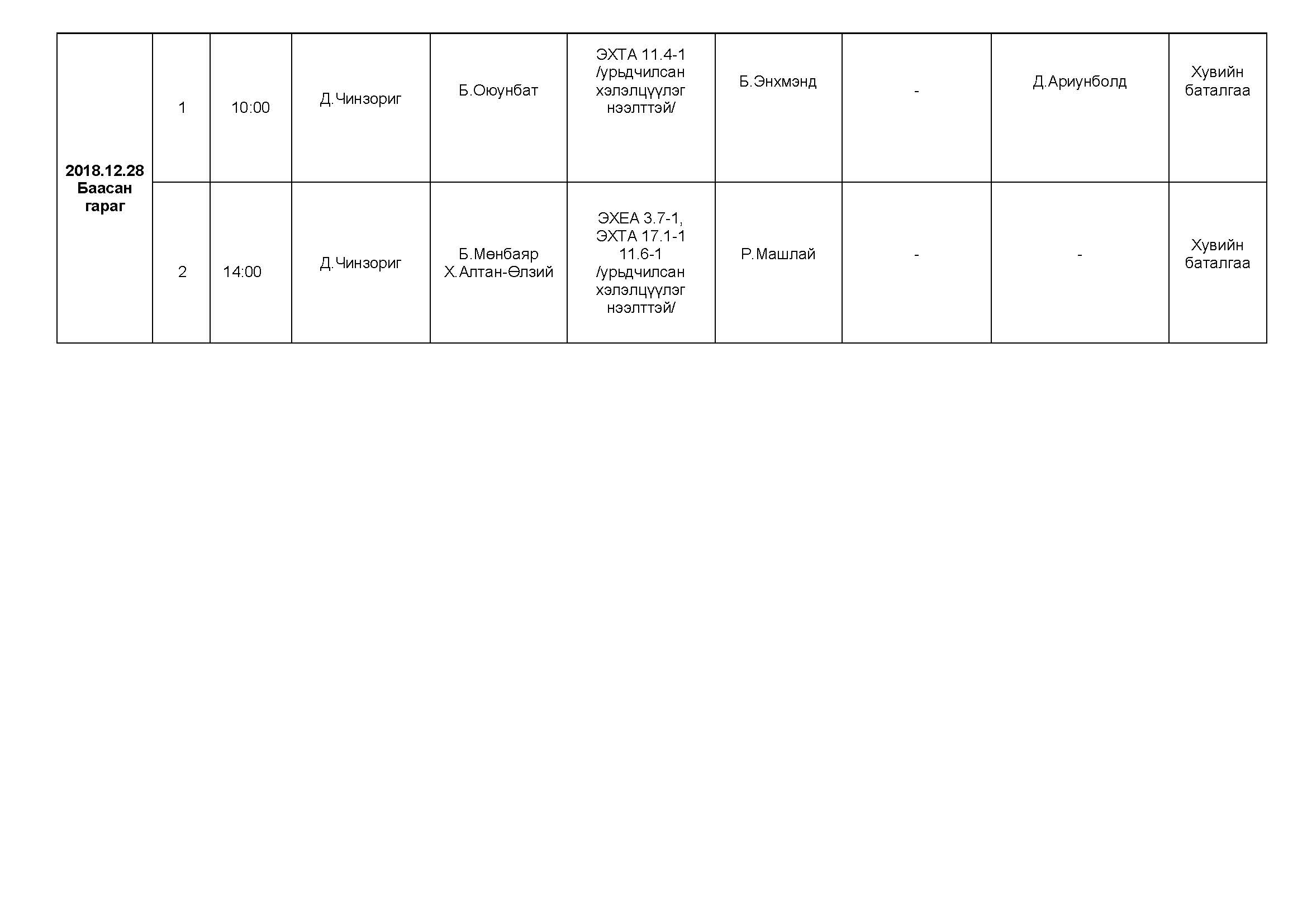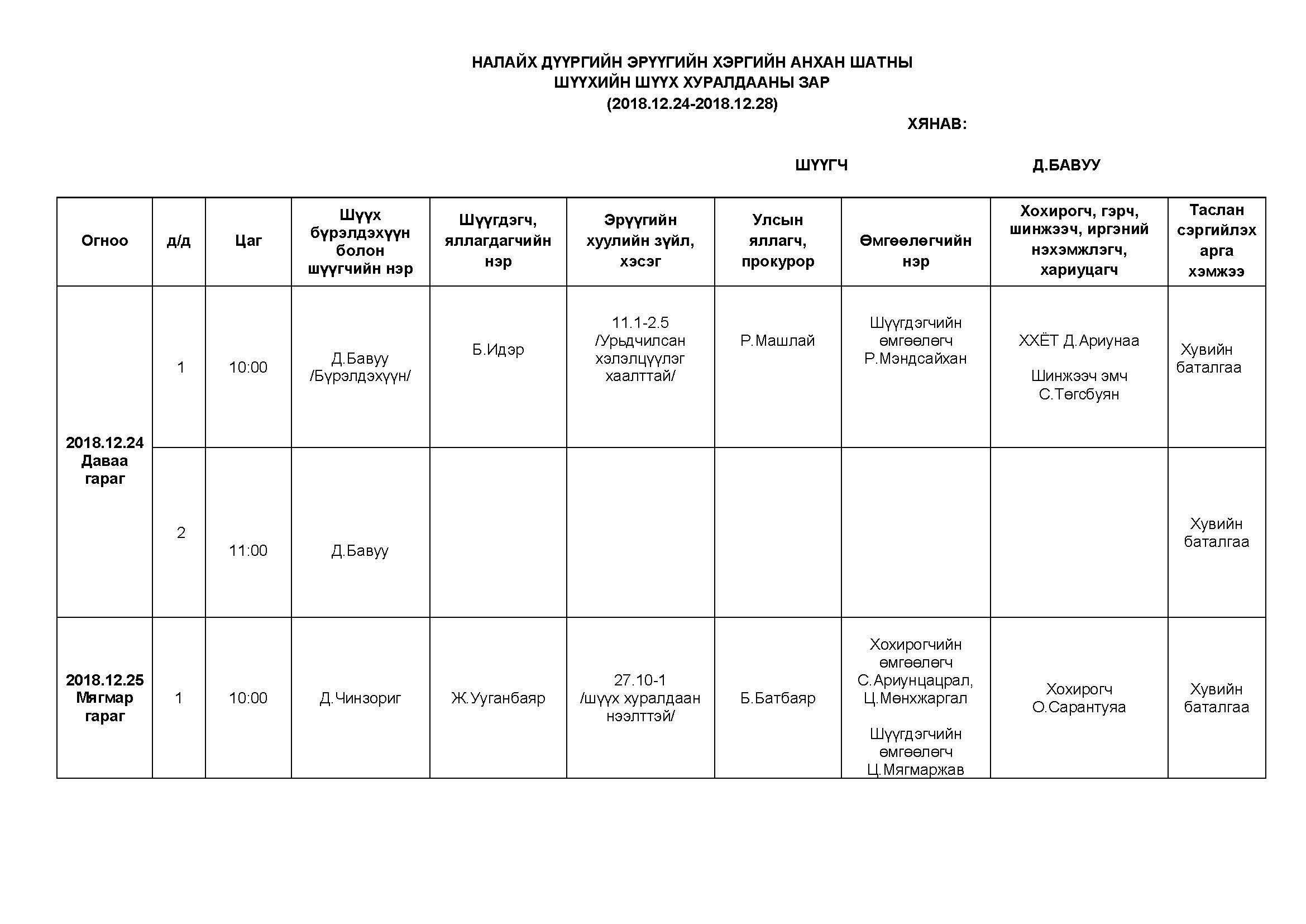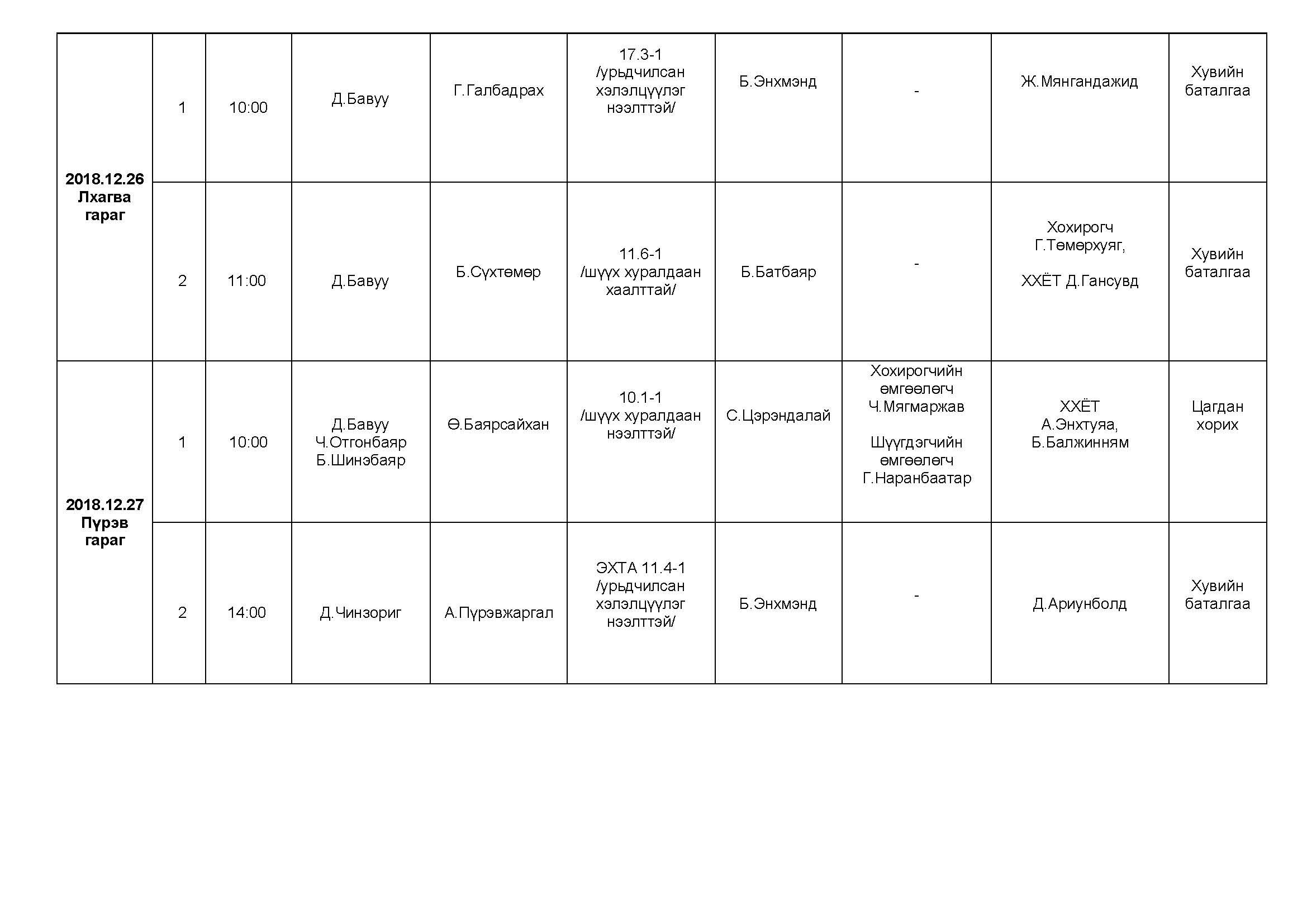 НАЛАЙХ - АНХАН ШАТНЫ ШҮҮХ ХУРАЛДААНААР ХЭЛЭЛЦҮҮЛЭХ ЭРҮҮГИЙН ХЭРГҮҮД (2018.12.24-12.28)