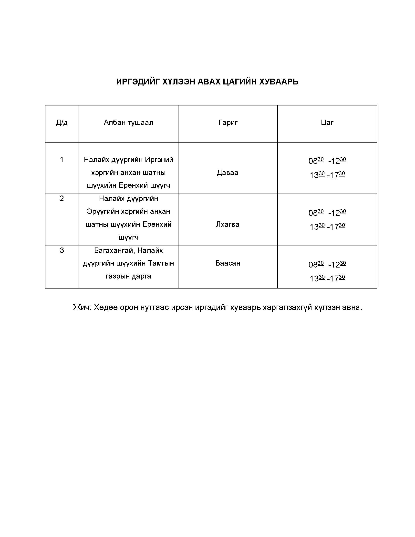 Тамгын газар - Иргэдийг хүлээн авах цагийн хуваар
