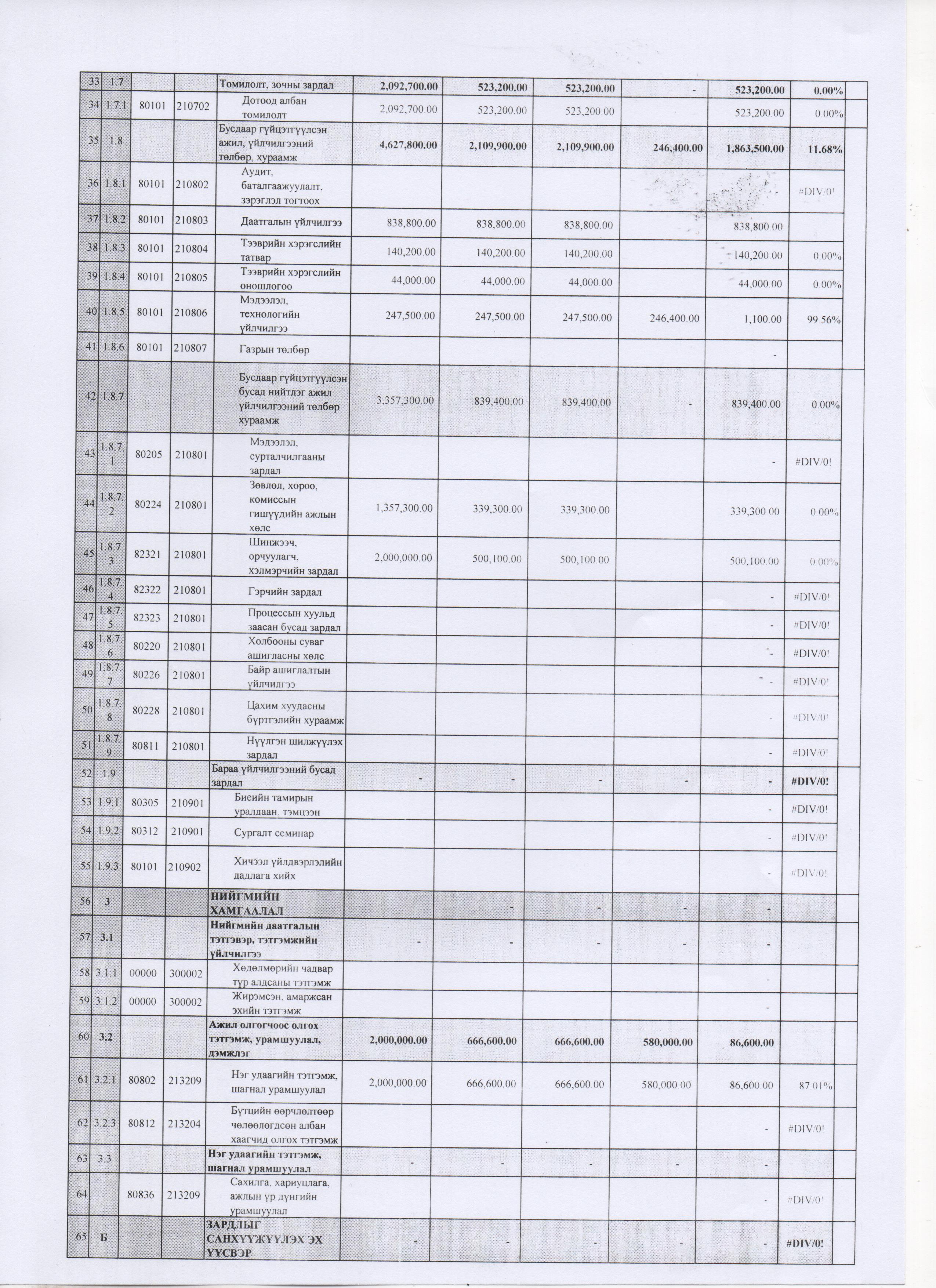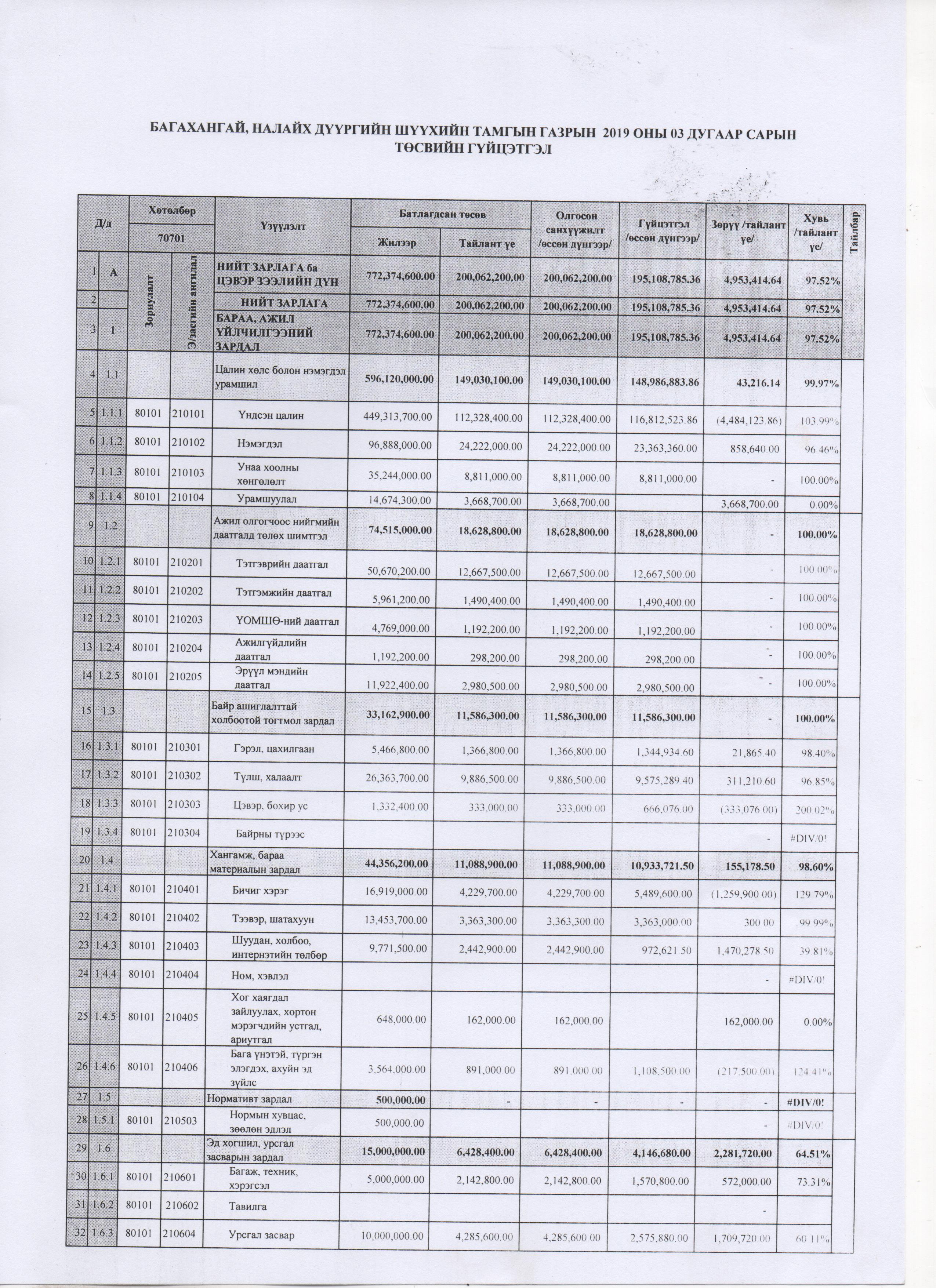 2019 оны 03 дугаар сарын төсвийн гүйцэтгэл