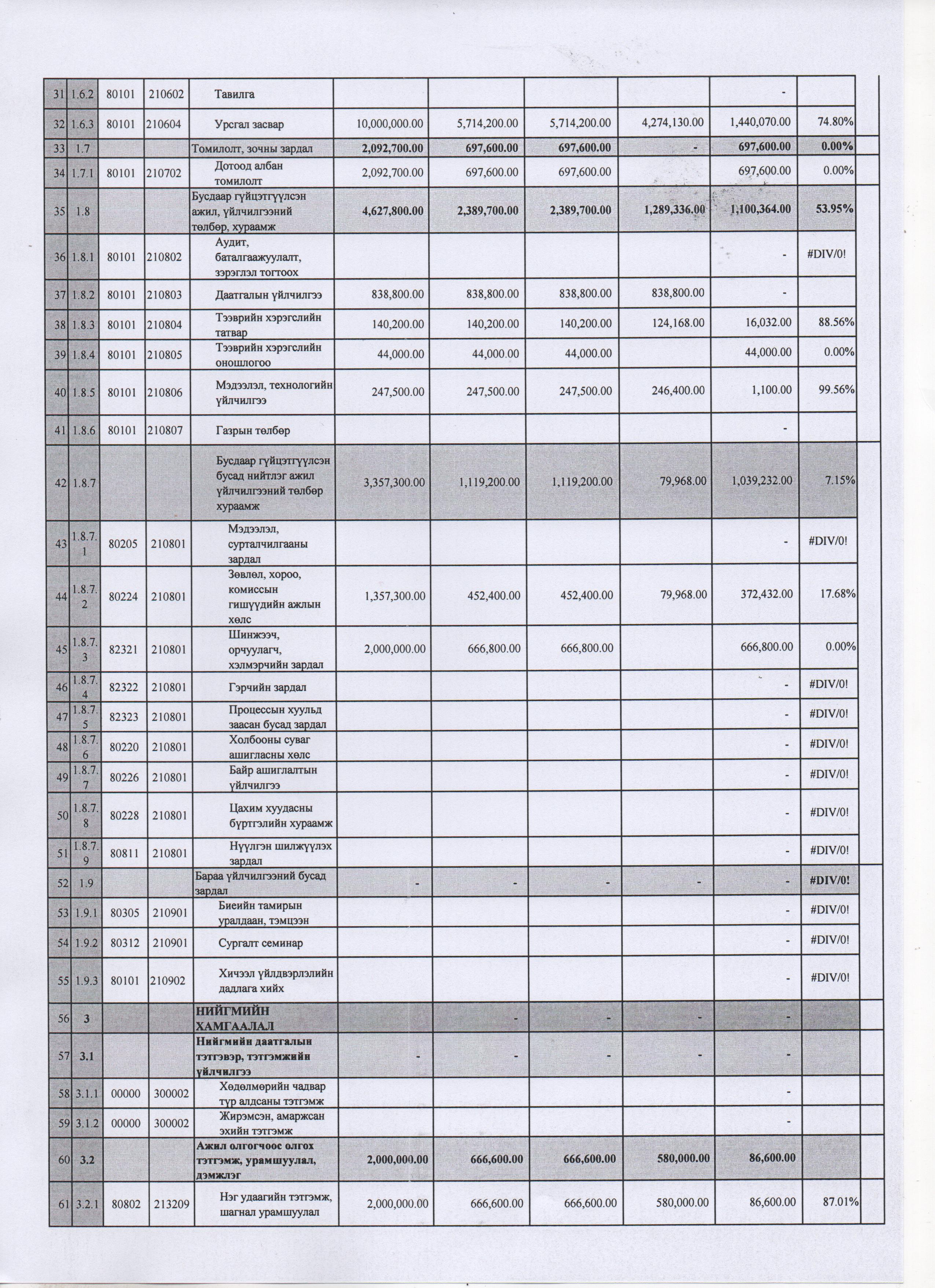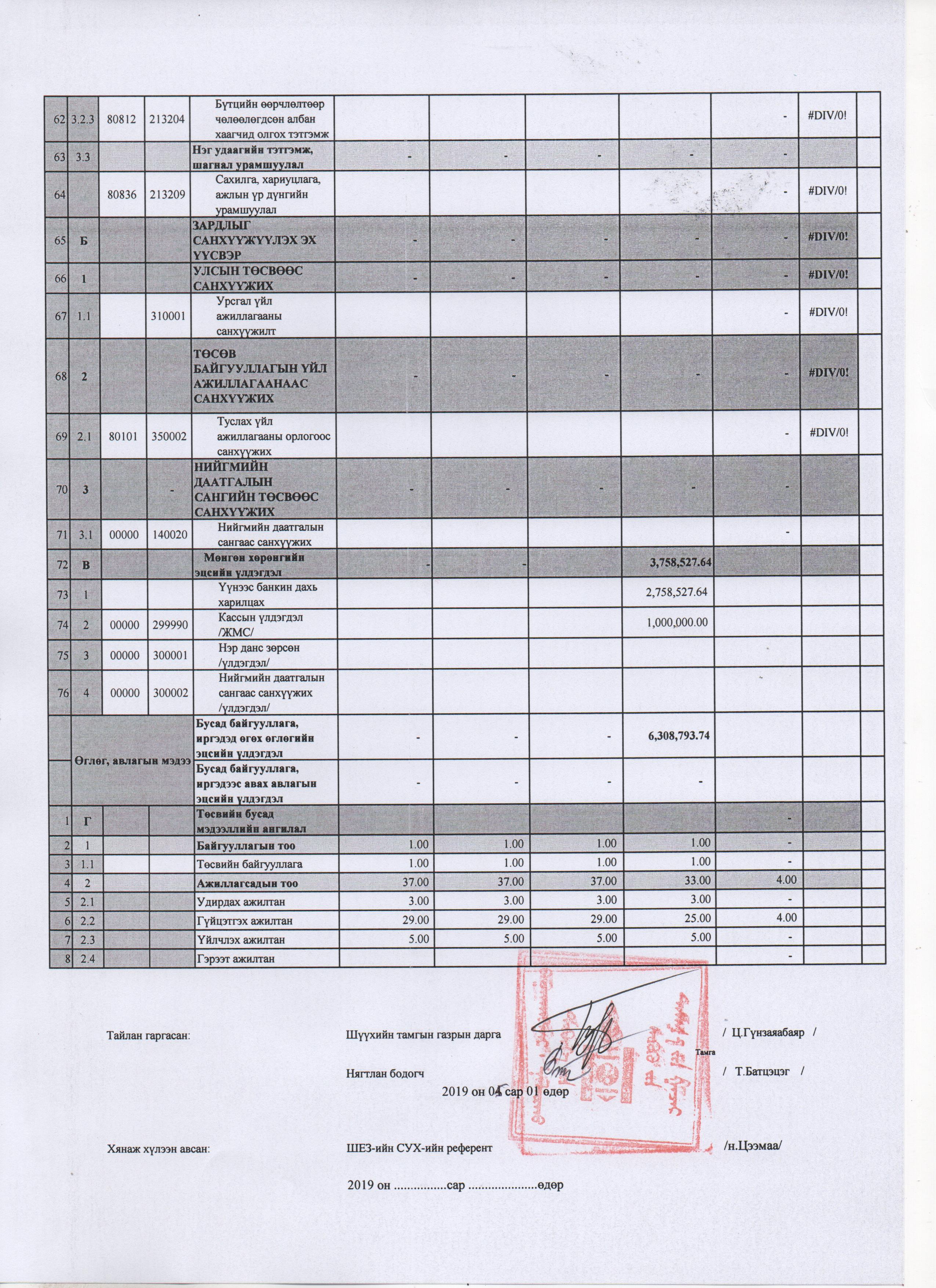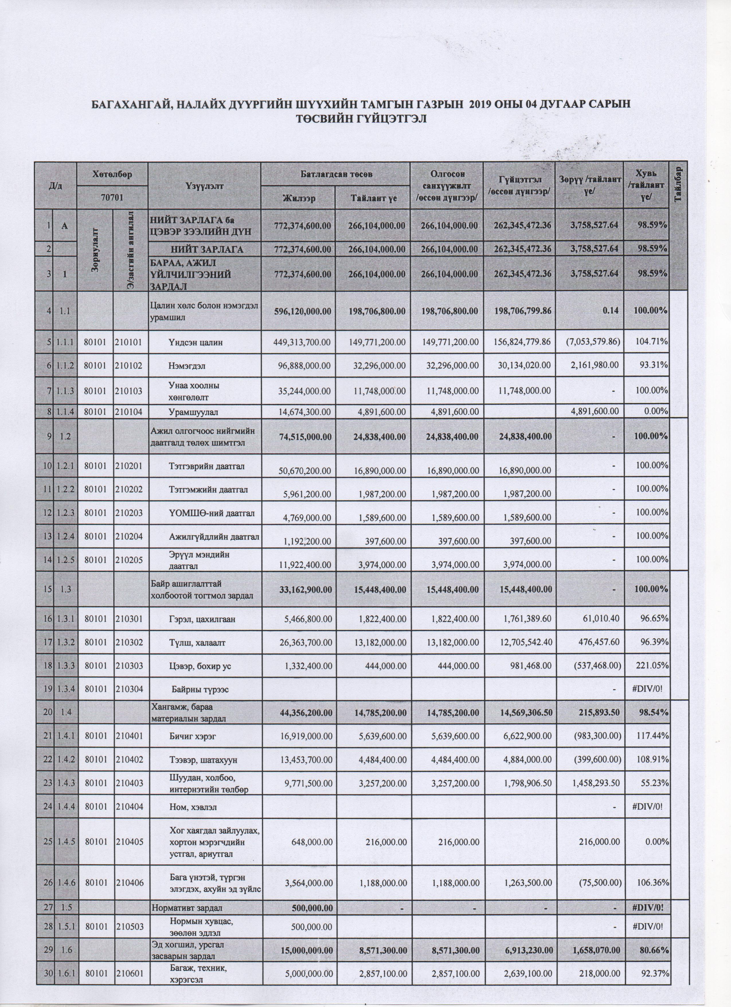 2019 оны 04 дүгээр сарын төсвийн гүйцэтгэл