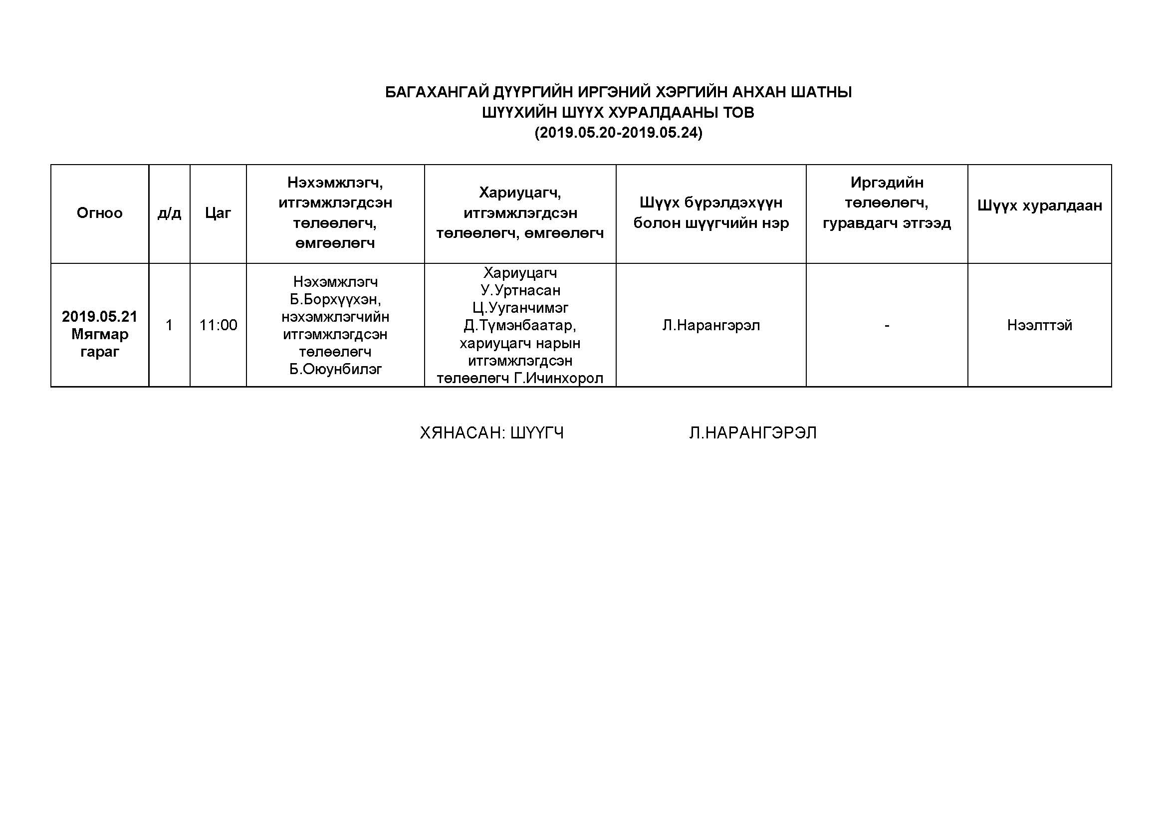 Багахангай - Шүүх хуралдаанаар хэлэлцэх иргэний хэргүүд (2019.05.20-05.24)