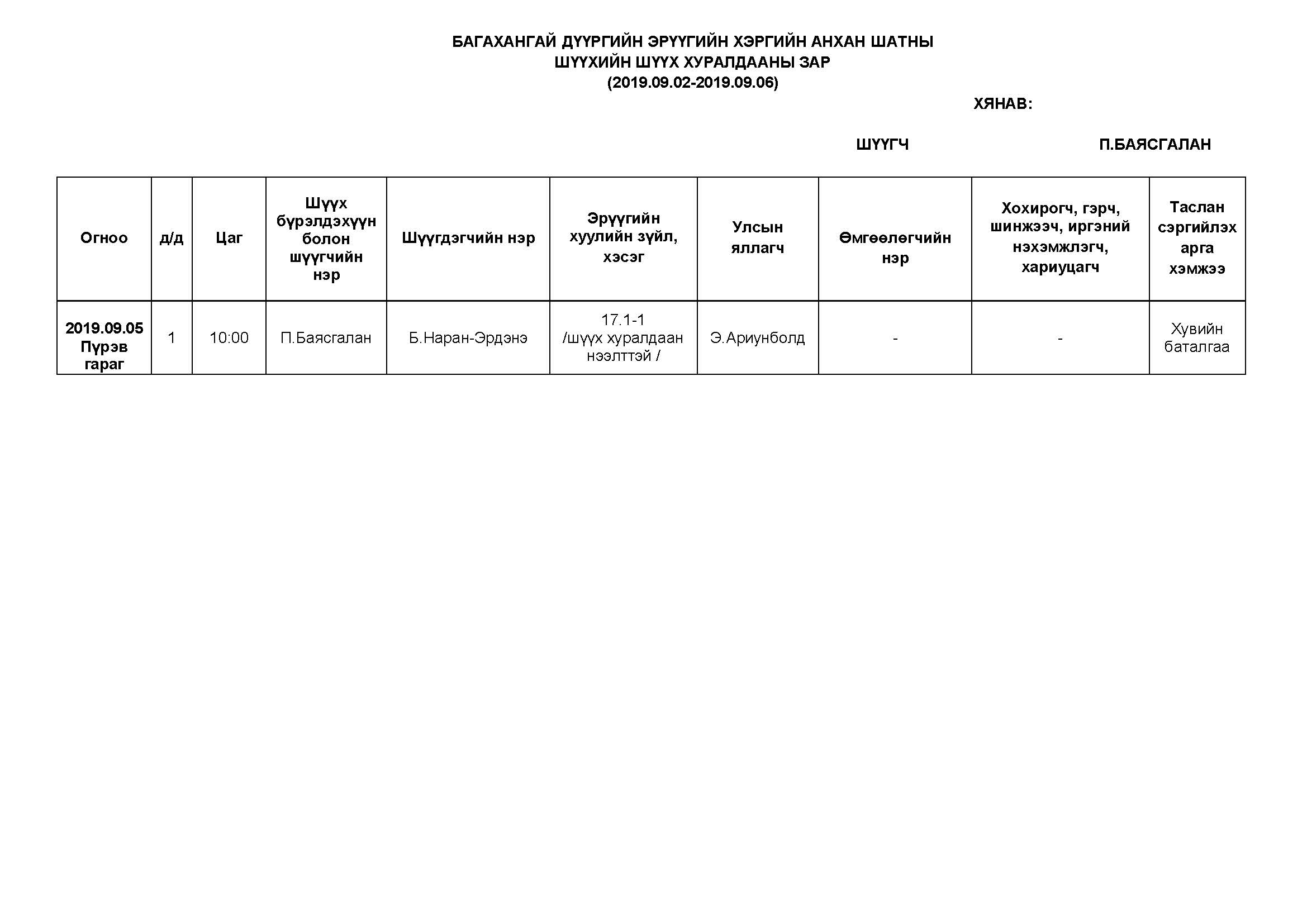 БАГАХАНГАЙ - АНХАН ШАТНЫ ШҮҮХ ХУРАЛДААНААР ХЭЛЭЛЦҮҮЛЭХ ЭРҮҮГИЙН ХЭРГҮҮД (2019.09.02-09.06)