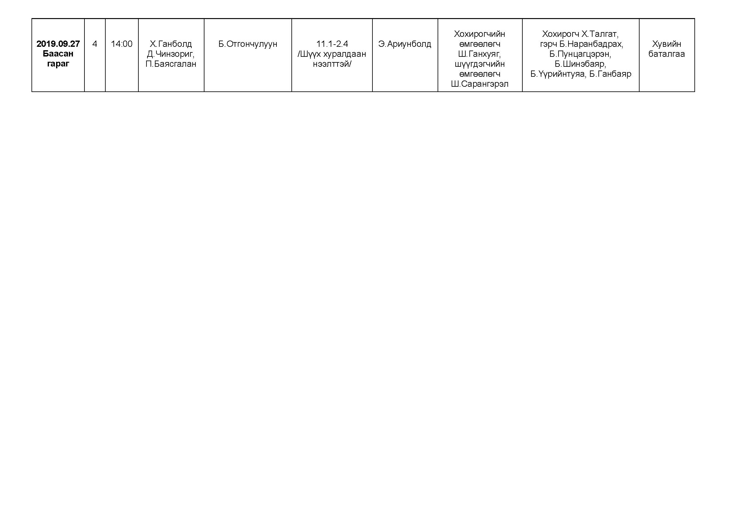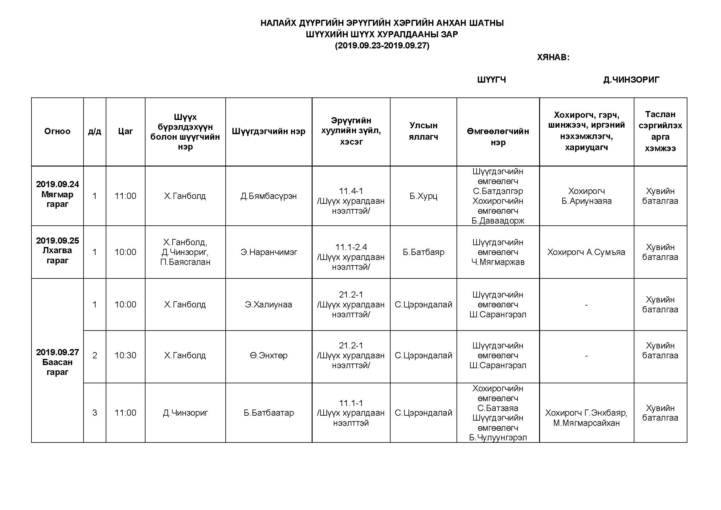 НАЛАЙХ - АНХАН ШАТНЫ ШҮҮХ ХУРАЛДААНААР ХЭЛЭЛЦҮҮЛЭХ ЭРҮҮГИЙН ХЭРГҮҮД (2019.09.23-09.27)