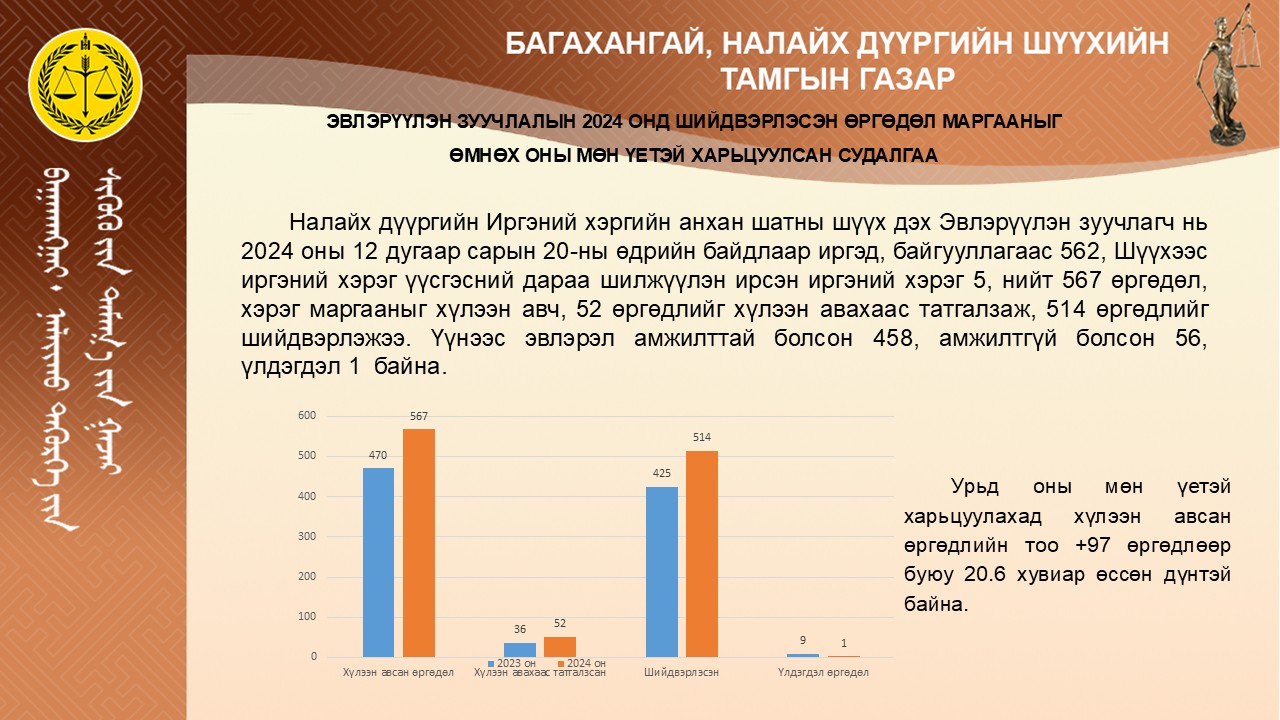 Багахангай, Налайх дүүргийн Иргэний хэргийн анхан шатны шүүх дэх Эвлэрүүлэн зуучлалын 2024 оны мэдээ