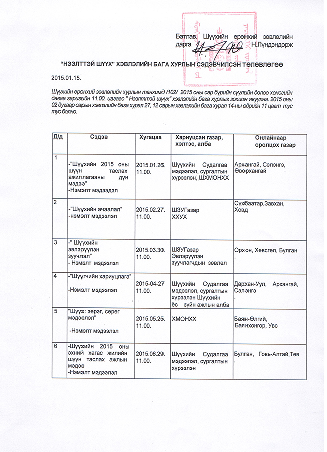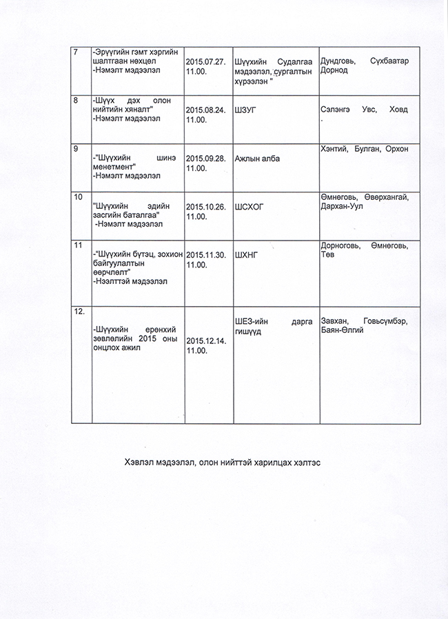"Нээлттэй шүүх" хэвлэлийн бага хурлын сэдэвчилсэн төлөвлөгөө