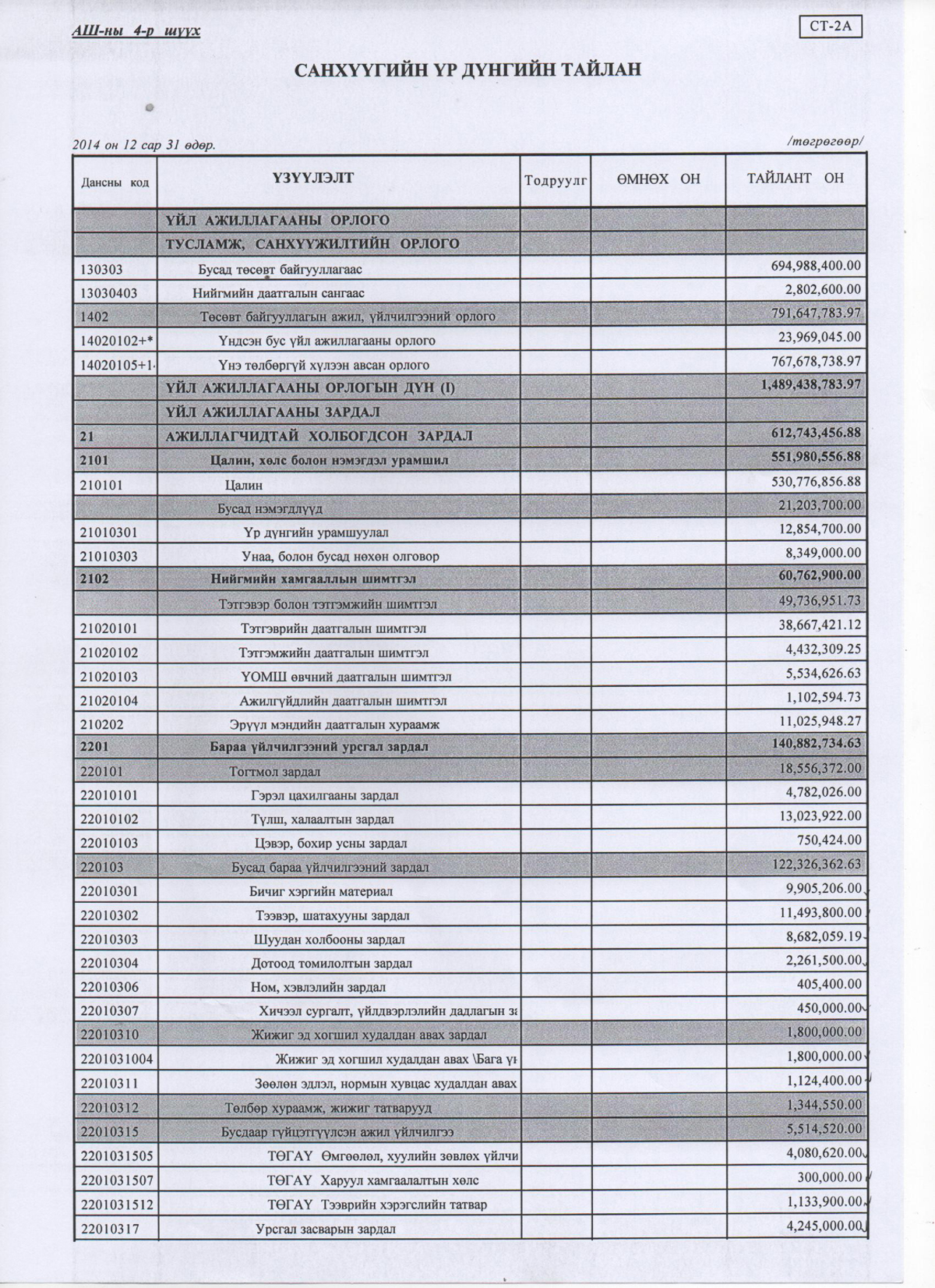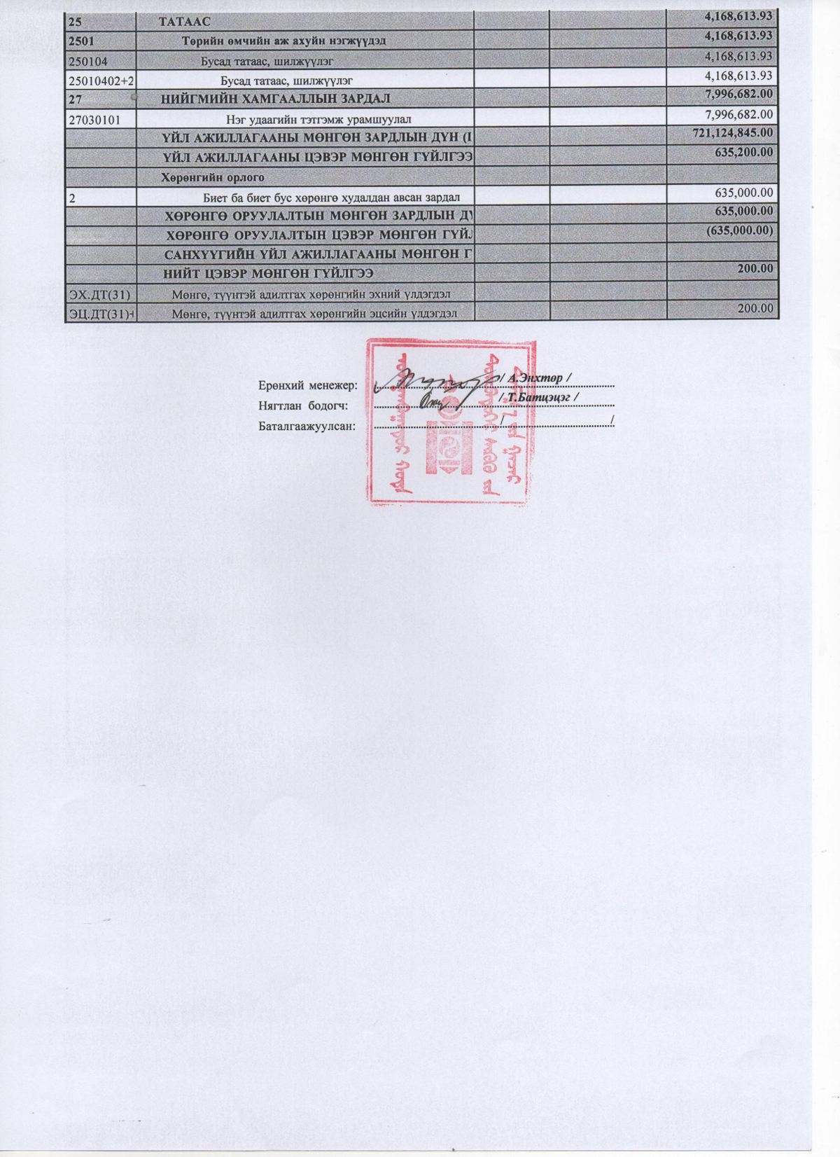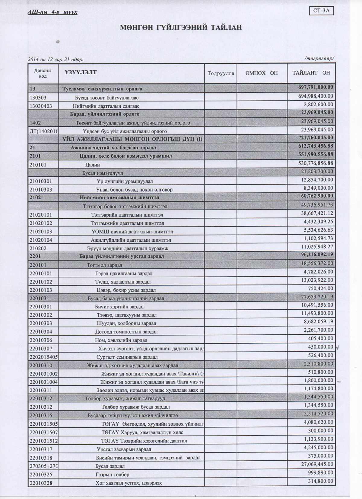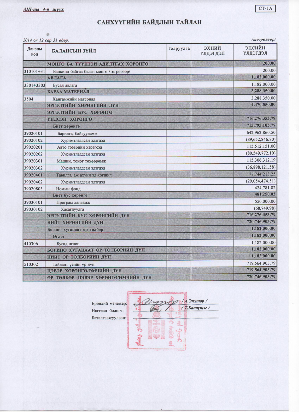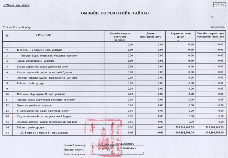 Дүүргийн эрүү, иргэний хэргийн анхан шатны 4 дүгээр шүүхийн 2014 оны жилийн эцсийн аудитлагдсан санхүүгийн тайлан