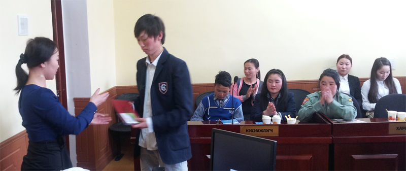 1. “Шүүх ба Олон Нийт” сэдвийн хүрээнд эссэ бичих уралдаан явуулснаас Тэргүүн байранд “Эрдмийн оргил” цогцолбор сургуулийн 12а ангийн сурагч Ш.Шижирчимэг, Дэд байранд мөн сургуулийн 12б ангийн сурагч Ө.Уянга нар шалгарав.