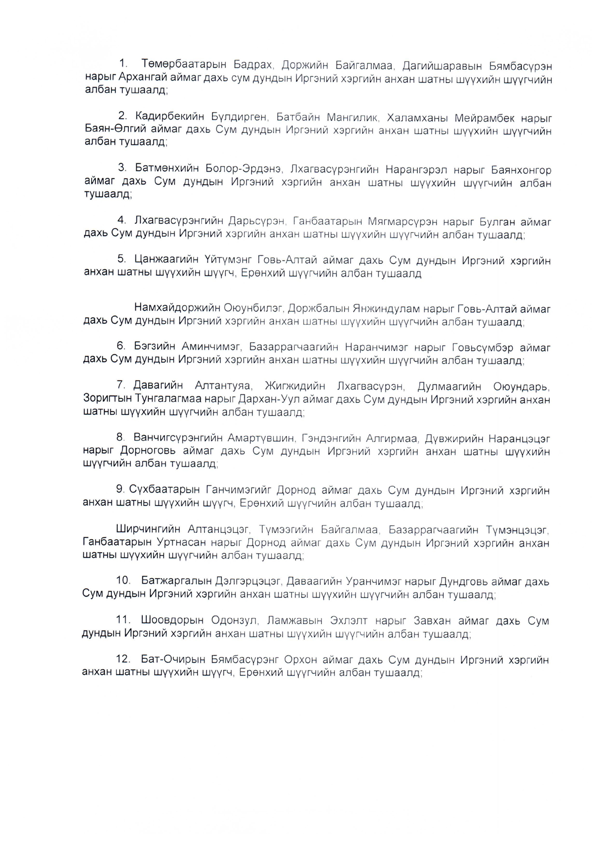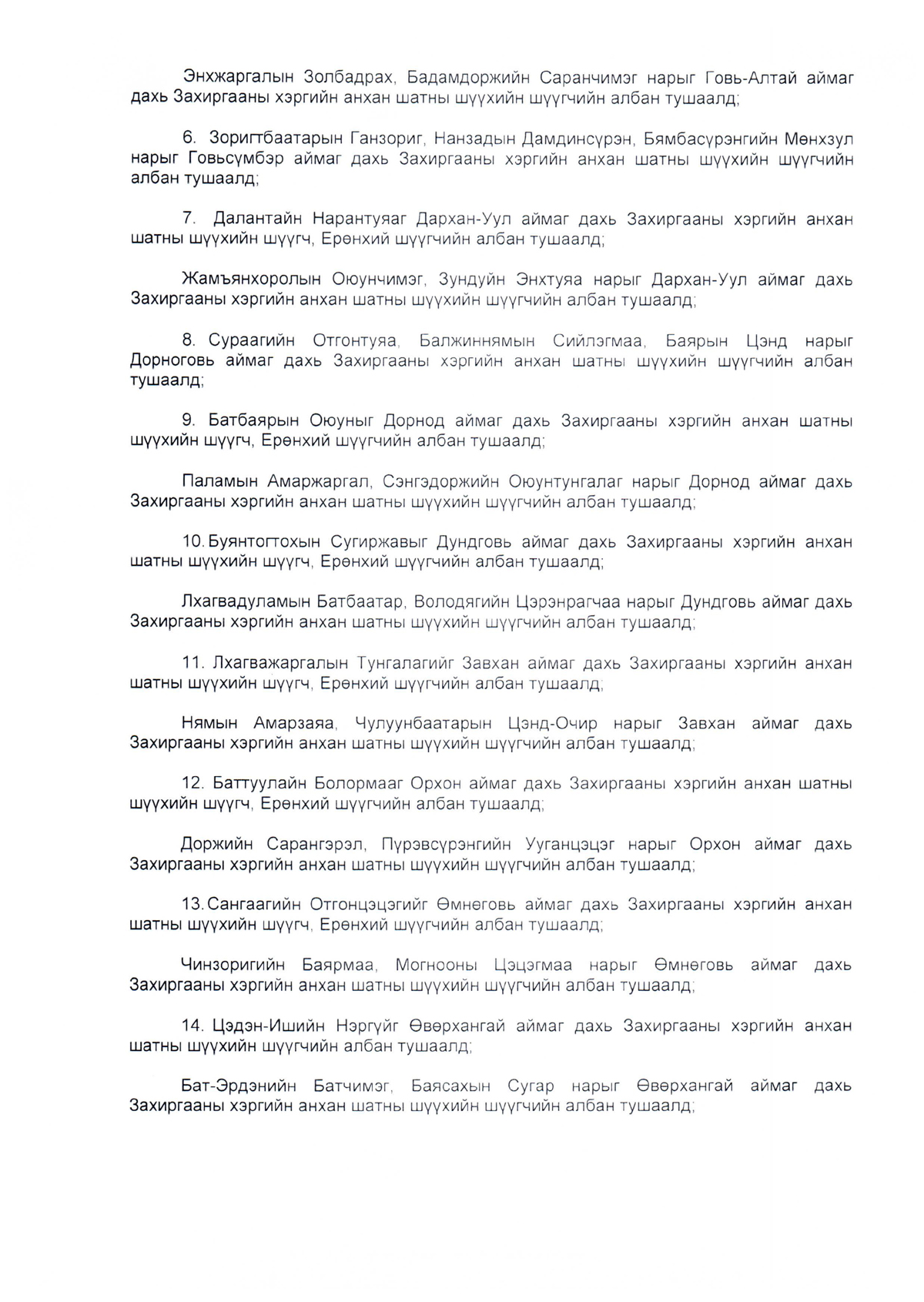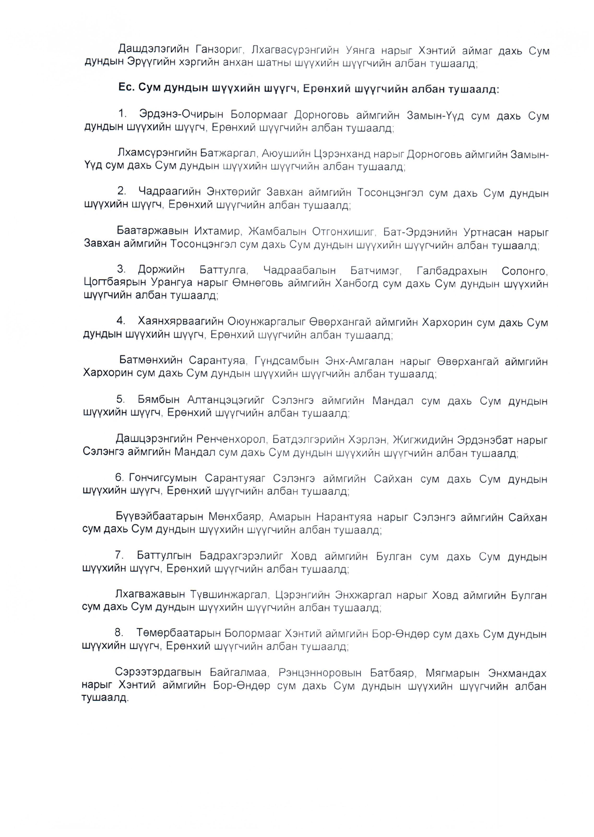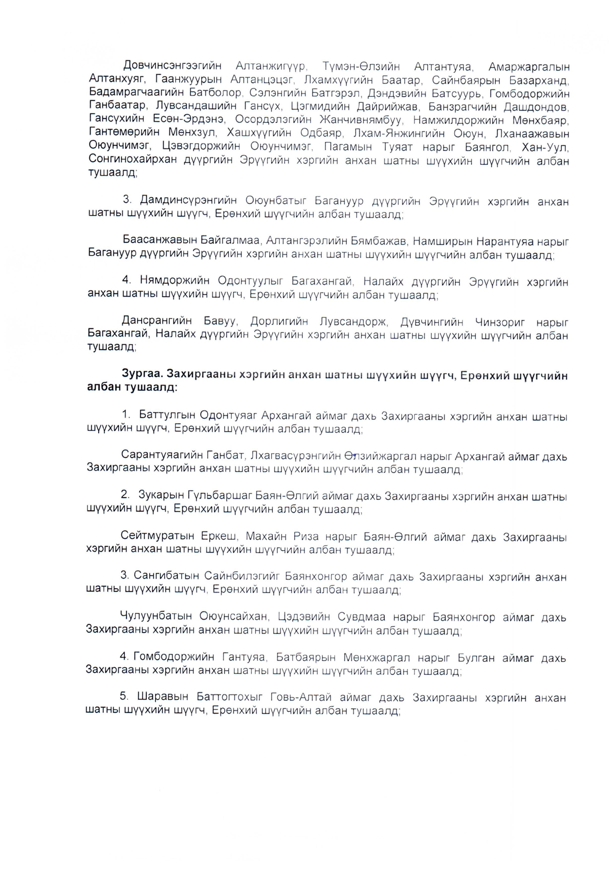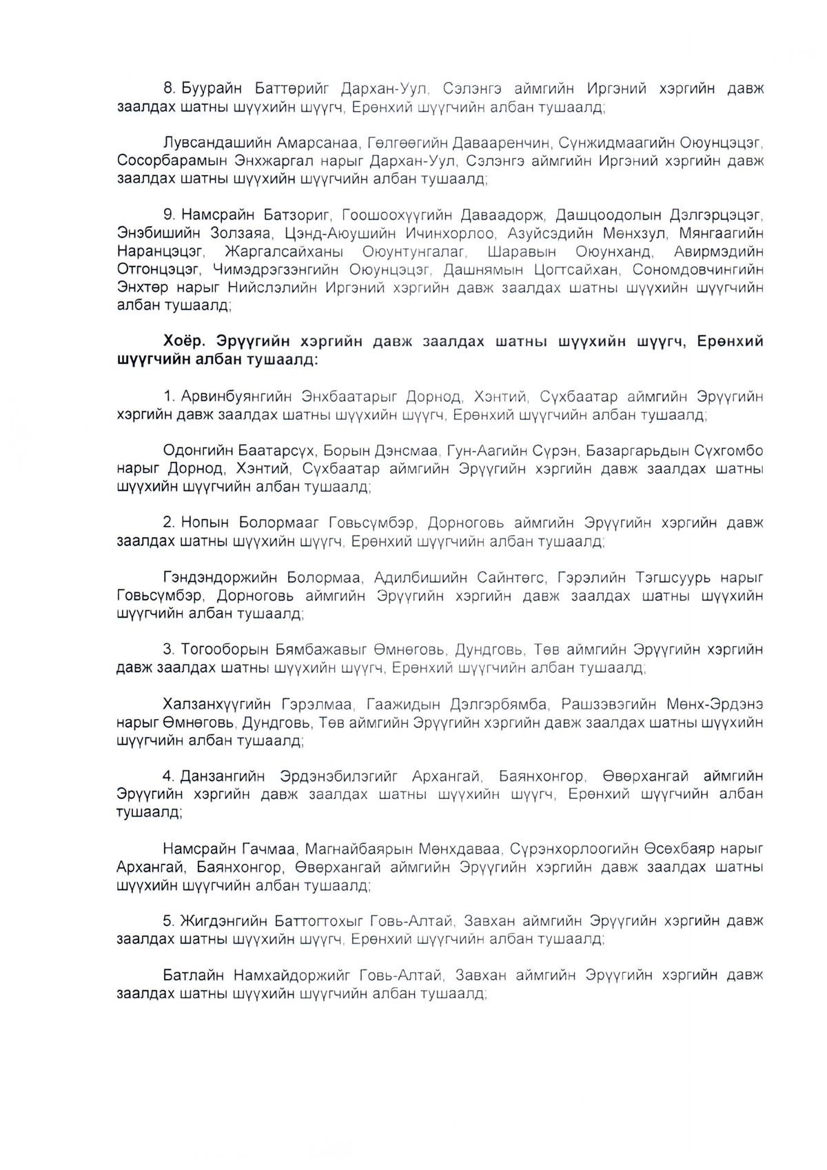 Зарим хүмүүсийг анхан болон давж заалдах шатны шүүхийн шүүгч, Ерөнхий шүүгчийн албан тушаалд томилох тухай