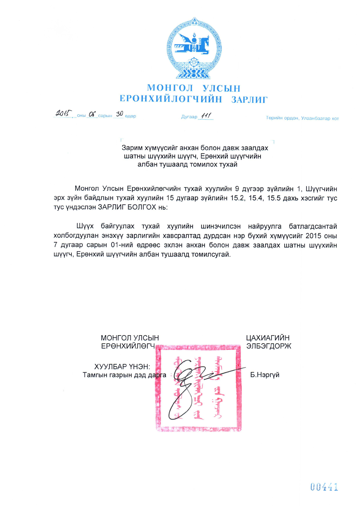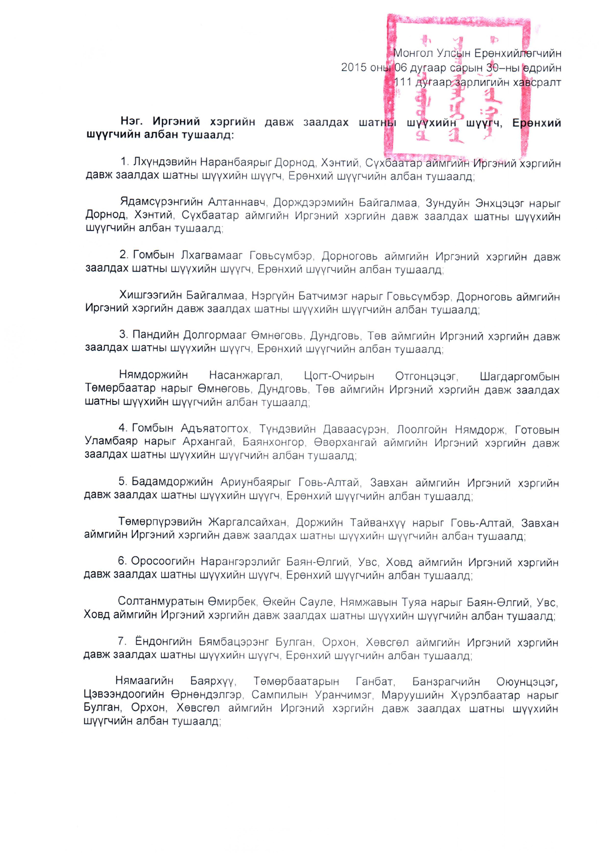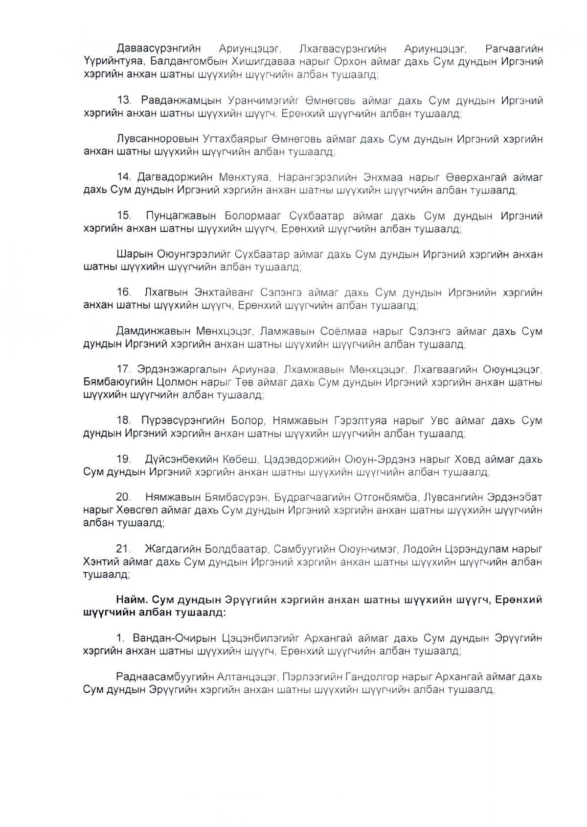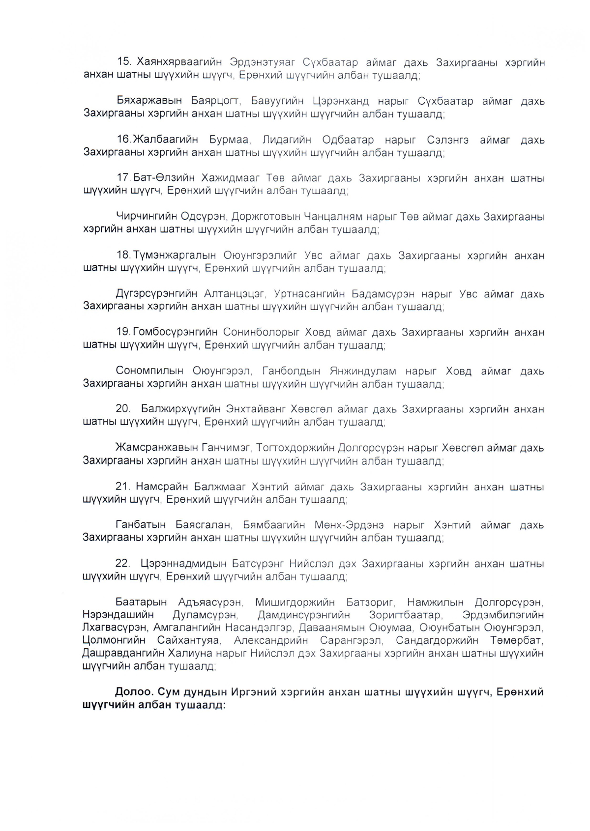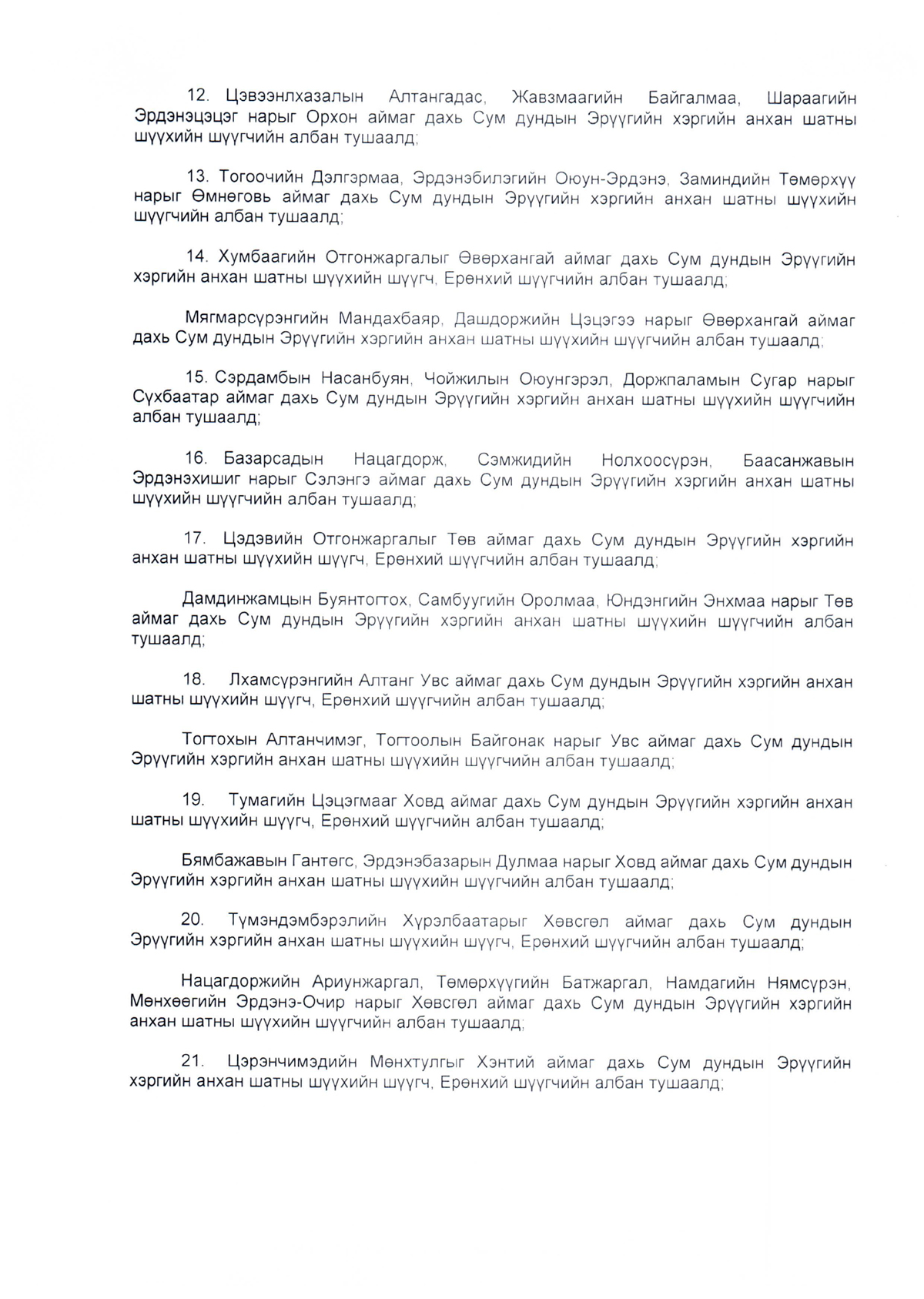Зарим хүмүүсийг анхан болон давж заалдах шатны шүүхийн шүүгч, Ерөнхий шүүгчийн албан тушаалд томилох тухай