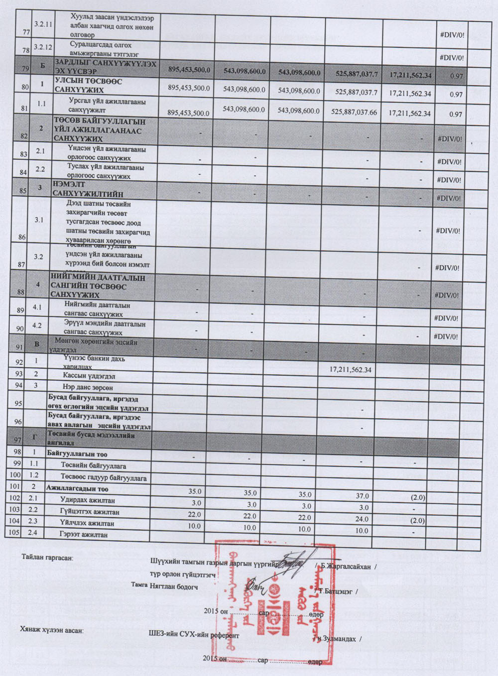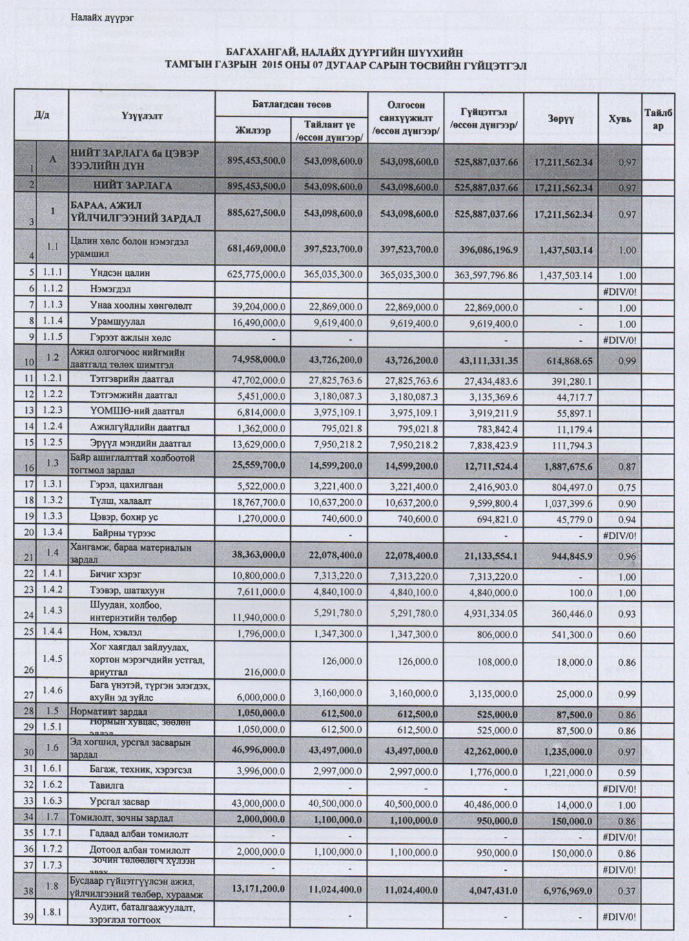 2015 оны 7 дугаар сарын төсвийн гүйцэтгэл