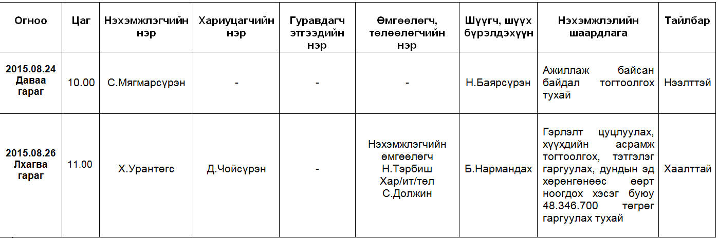 Шүүх хуралдаанаар хэлэлцэх иргэний хэргүүд (2015.08.24-28)