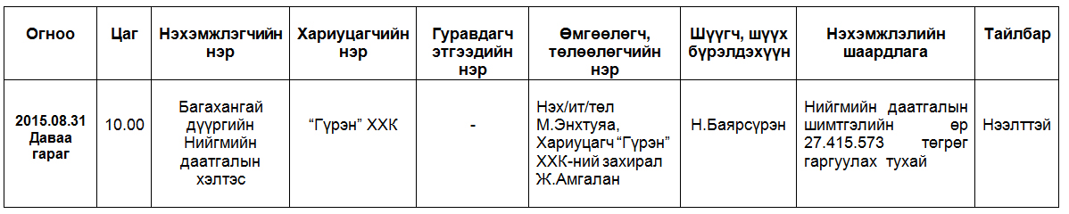 Шүүх хуралдаанаар хэлэлцэх иргэний хэргүүд (2015.08.31-09.04)