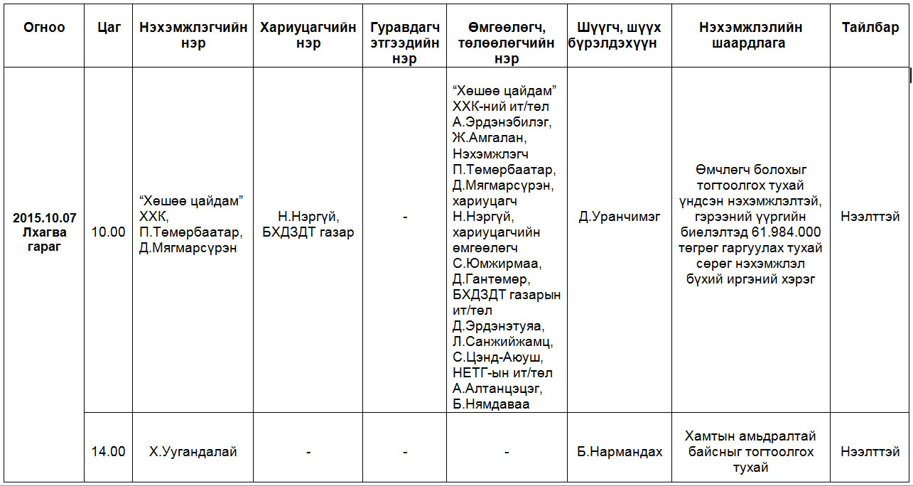 Шүүх хуралдаанаар хэлэлцэх иргэний хэргүүд (2015.10.05-10.09)