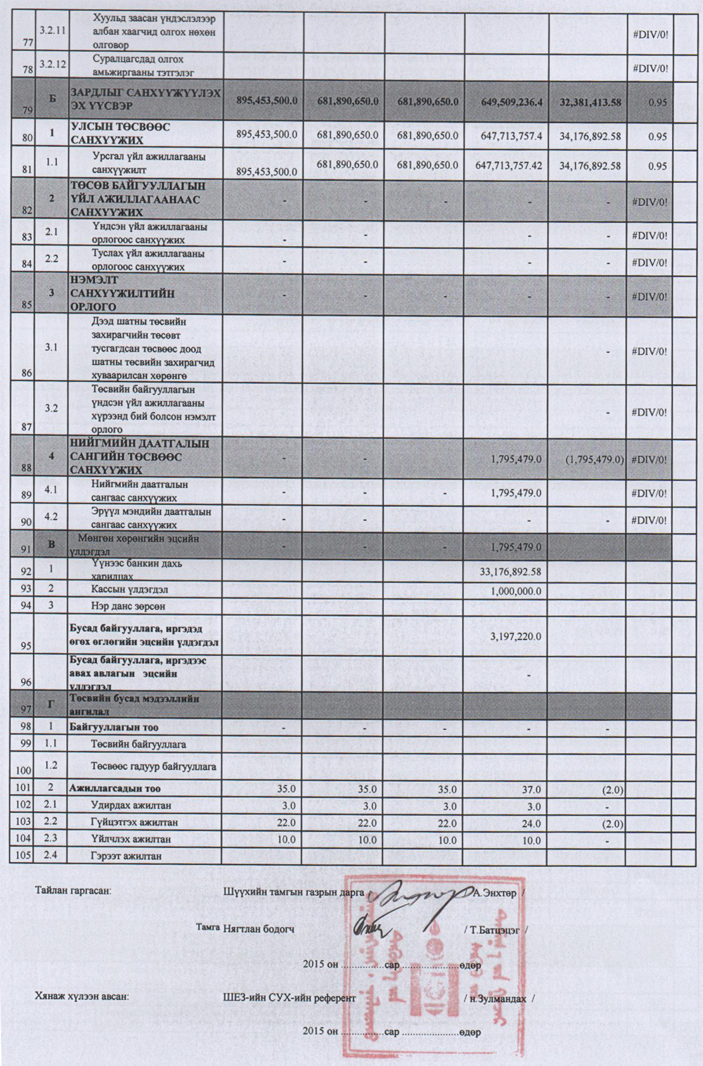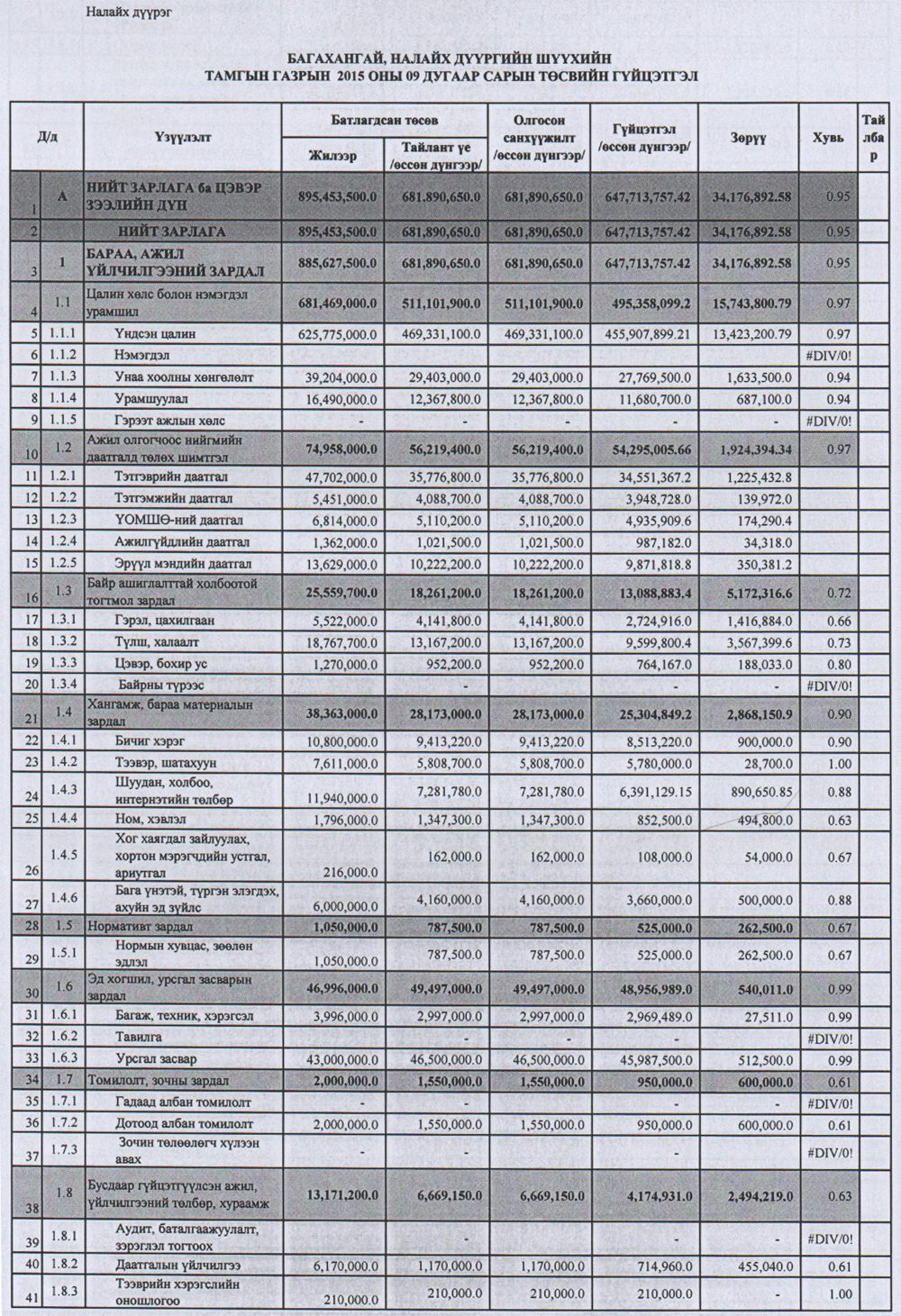 2015 оны 9 дүгээр сарын төсвийн гүйцэтгэл