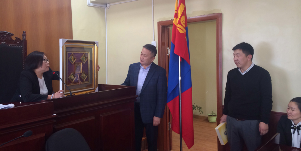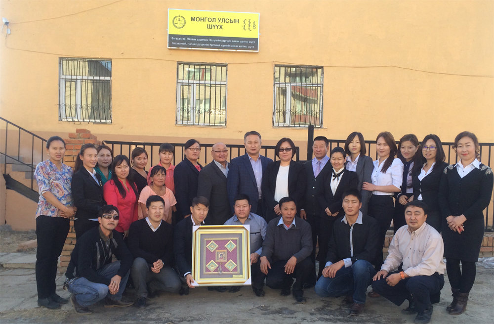 Монгол Улсын Ерөнхийлөгч Ц.Элбэгдоржийн 2015 оны 10 дугаар сарын 29-ний өдрийн 167 дугаар зарлигаар Өмнөговь аймаг дахь Сум дундын иргэний хэргийн анхан шатны шүүхийн шүүгчийн албан тушаалд томилогдсон тамгын газрын дарга А.Энхтөрд Багахангай, Налайх дүүргийн Эрүү, Иргэний хэргийн шүүх, шүүхийн тамгын газрын хамт олноос дурсгалын зүйл гардуулж ажлын амжилт хүслээ.