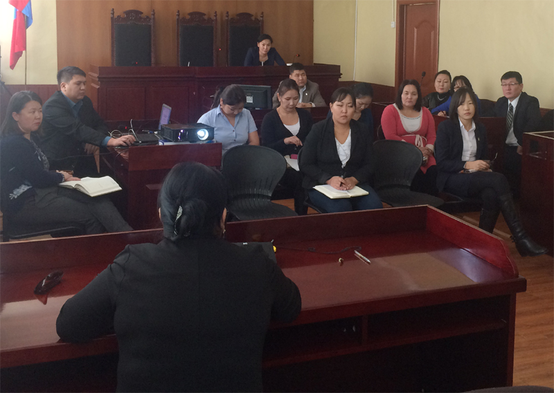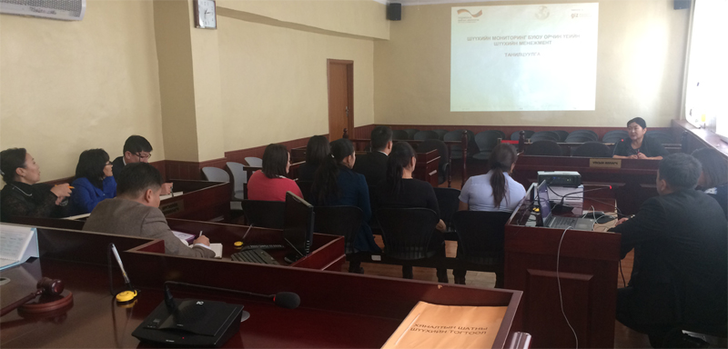 Шүүхийн ерөнхий зөвлөлийн ажлын албаны ажлын хэсгийн бүрэлдэхүүн сургагч багш Ц.Өрнөндэлгэр, Ш.Одгэрэл, Д.Оргил нар 2015 оны 11 дүгээр сарын 18-ны өдөр Багахангай, Налайх дүүргийн иргэний хэргийн анхан шатны шүүхийн шүүгч, захиргааны ажилтнуудад Шүүхийн мониторингийн тухай ойлголт, Шүүхийн мониторингийн зорилго, зорилтууд, нэгдсэн системийн тухай ойлголт, системд нэмэлтээр хийгдсэн дотоод мэдээний маягт, киоск төхөөрөмж,  Dashboard буюу шүүн таслах ажлын өдөр тутмын мэдээлэл нэгдсэн системийг нэвтрүүлснээр цаашид хүрэх үр дүнгийн тухай танилцууллаа.