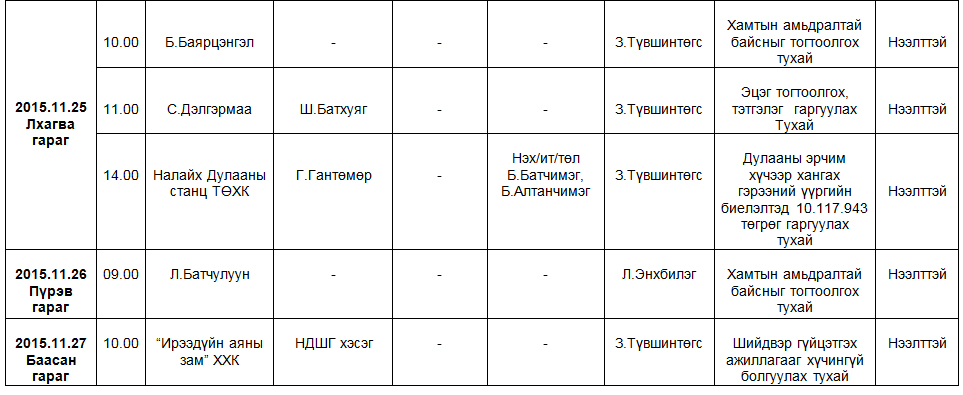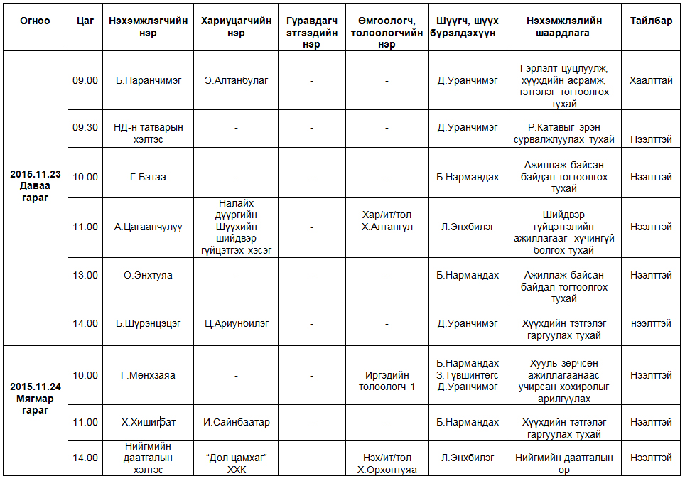 Шүүх хуралдаанаар хэлэлцэх иргэний хэргүүд (2015.11.23-11.27)