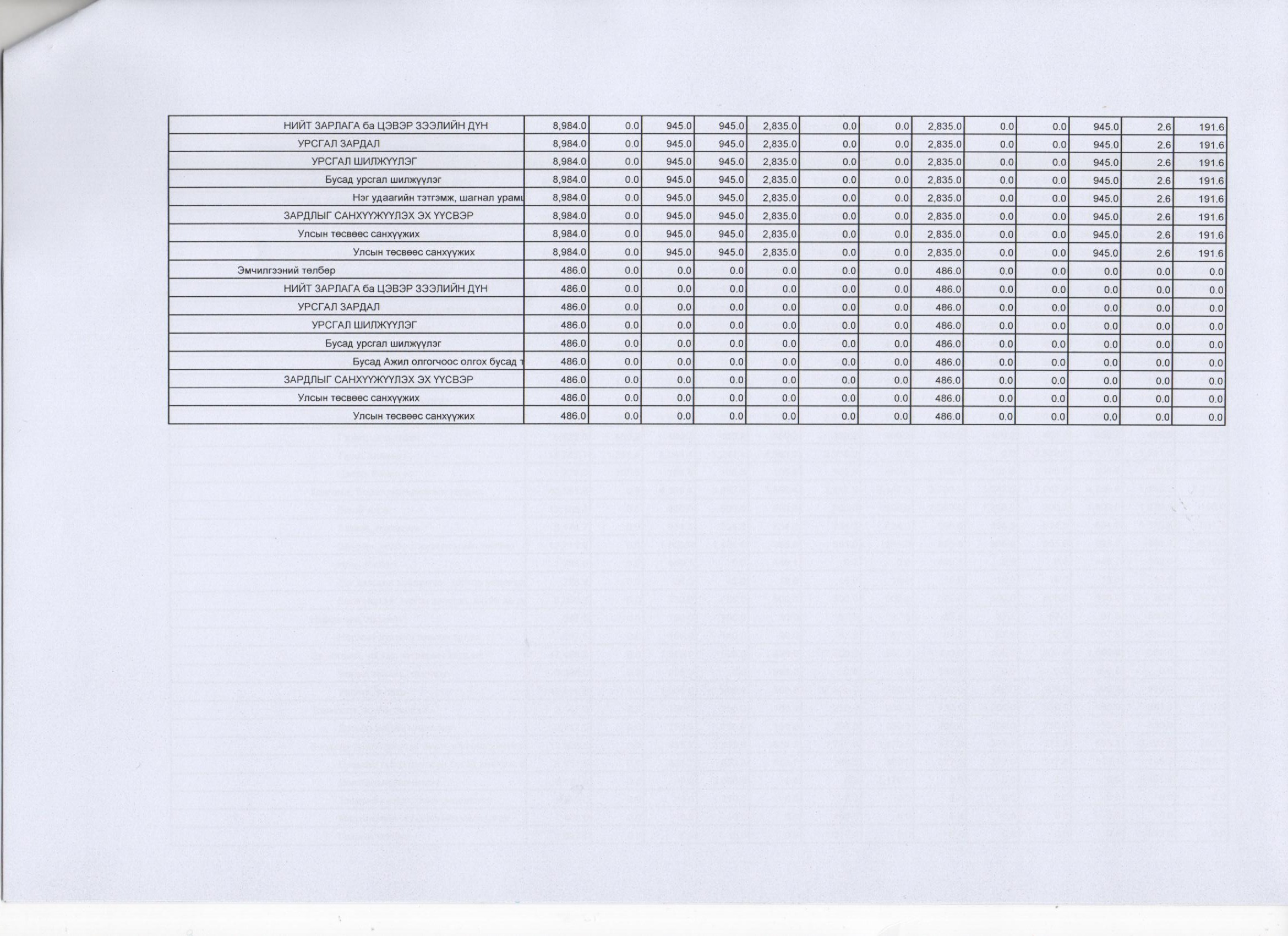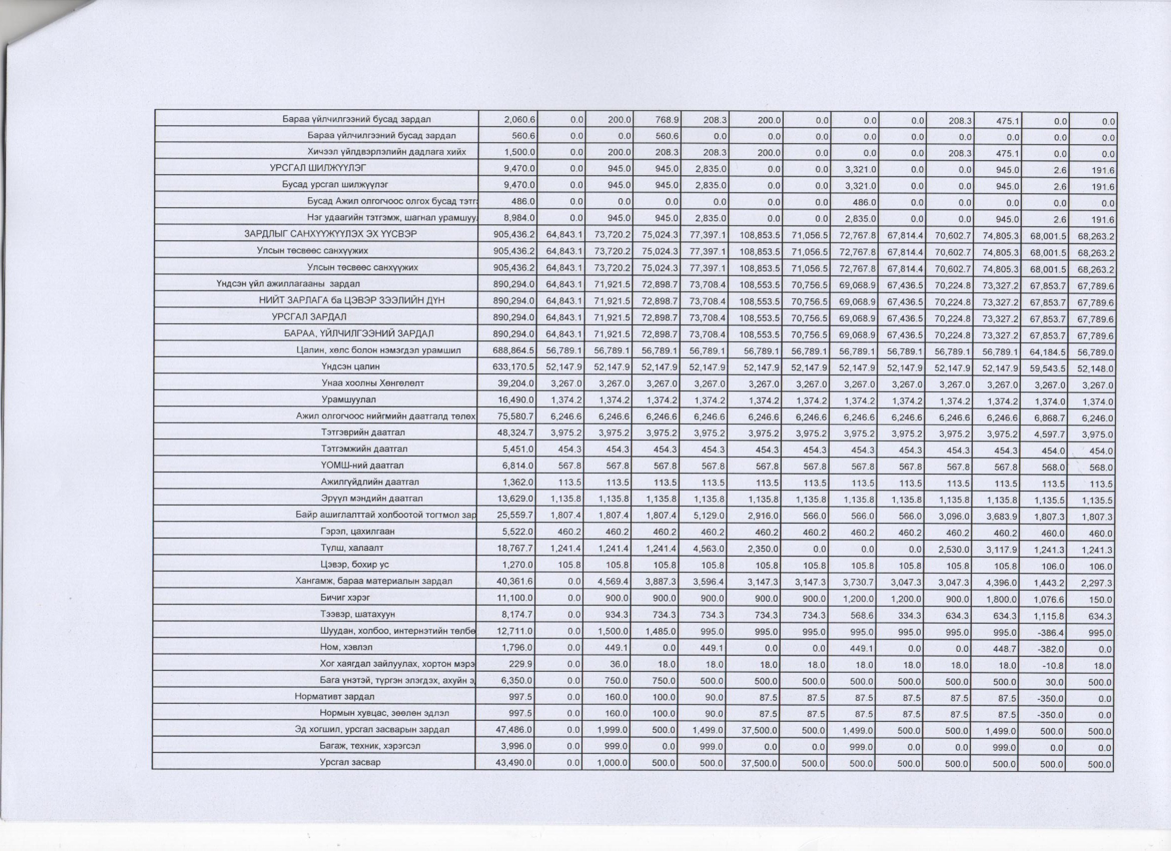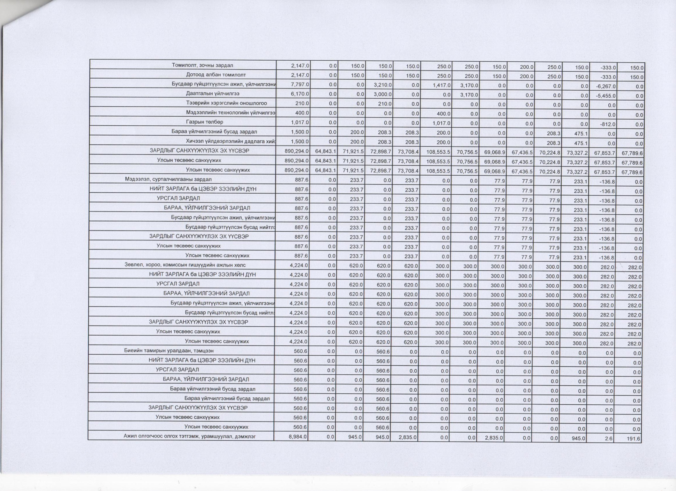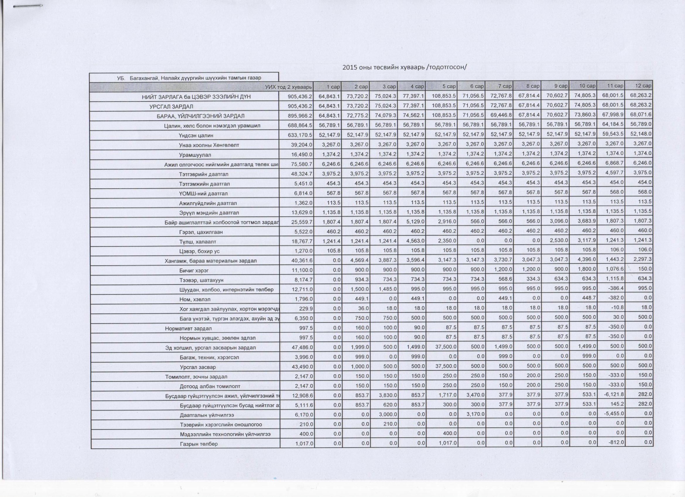 2015 оны тодотгосон төсвийн хуваарь