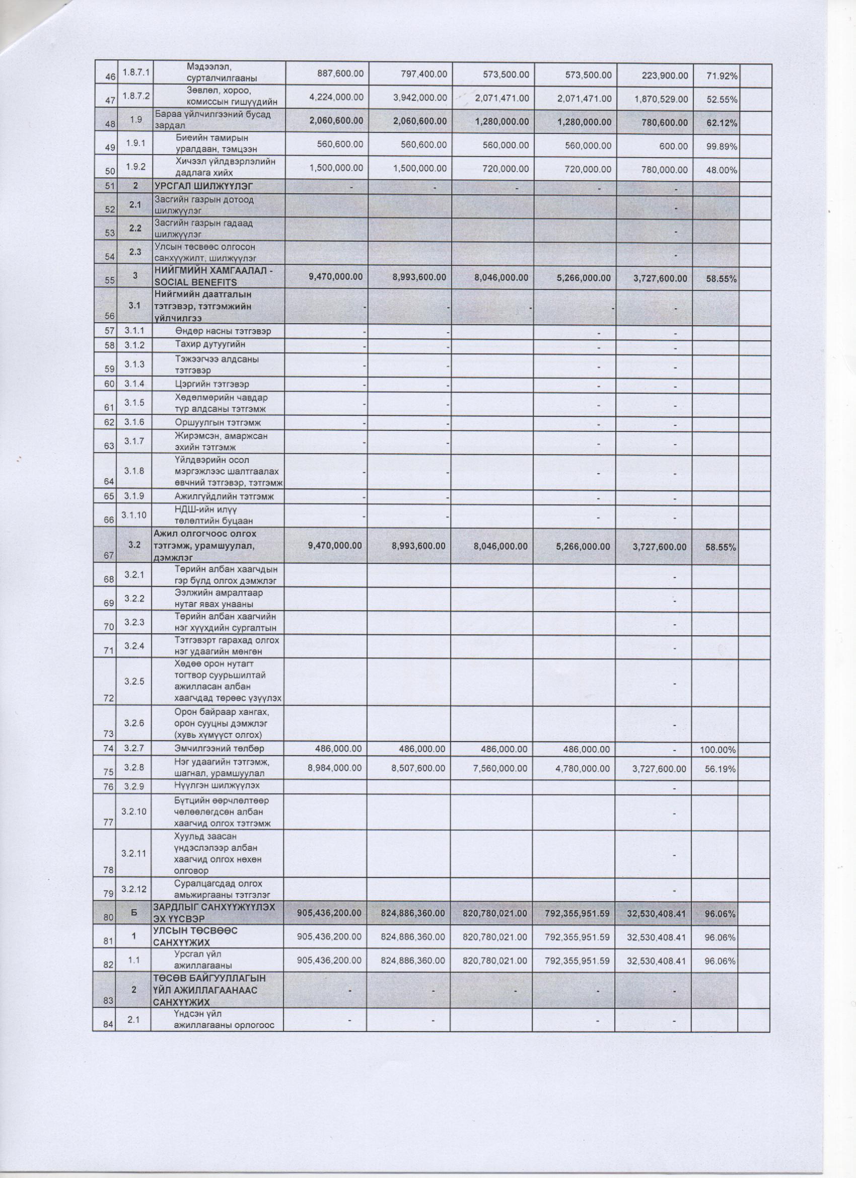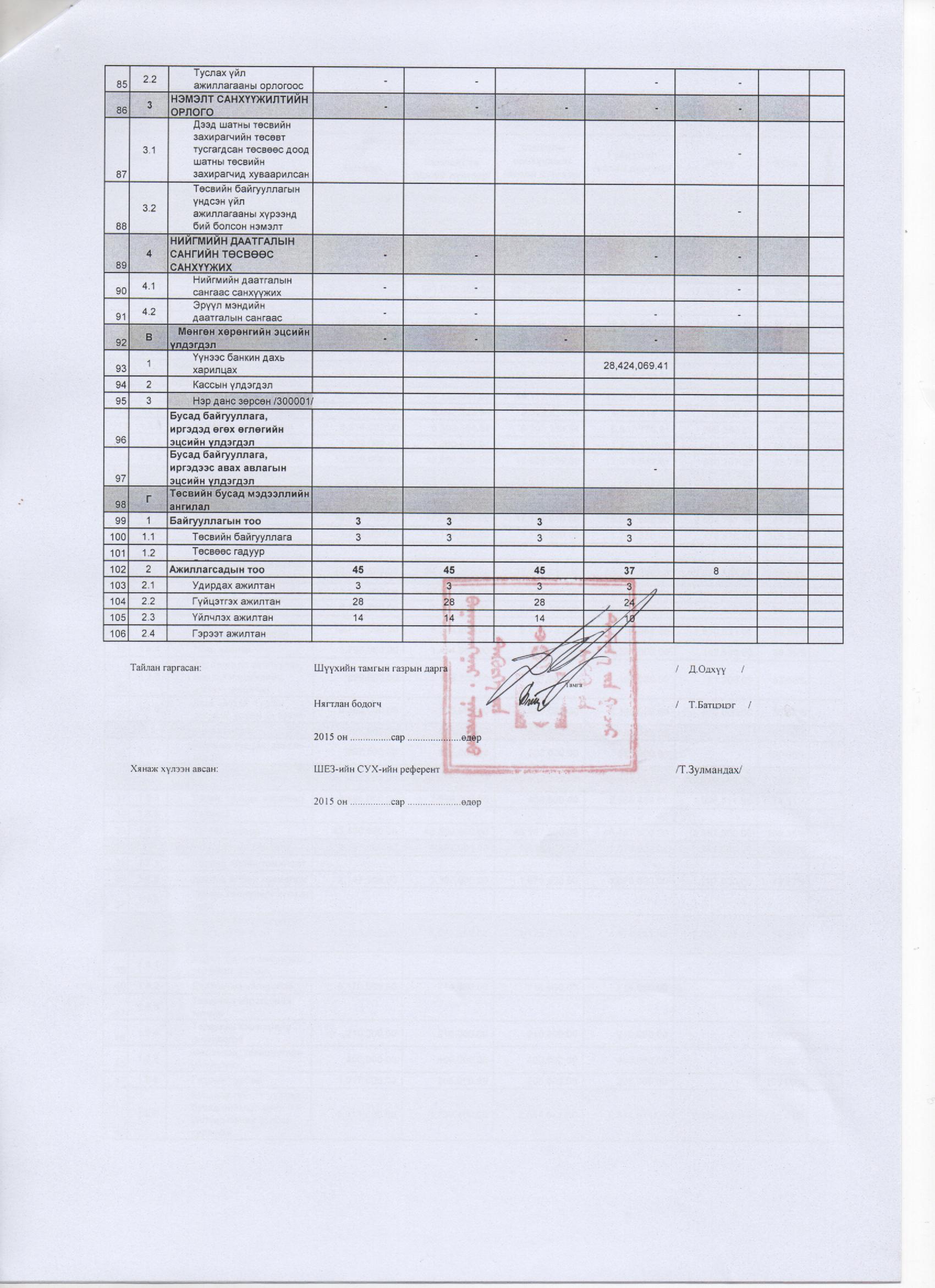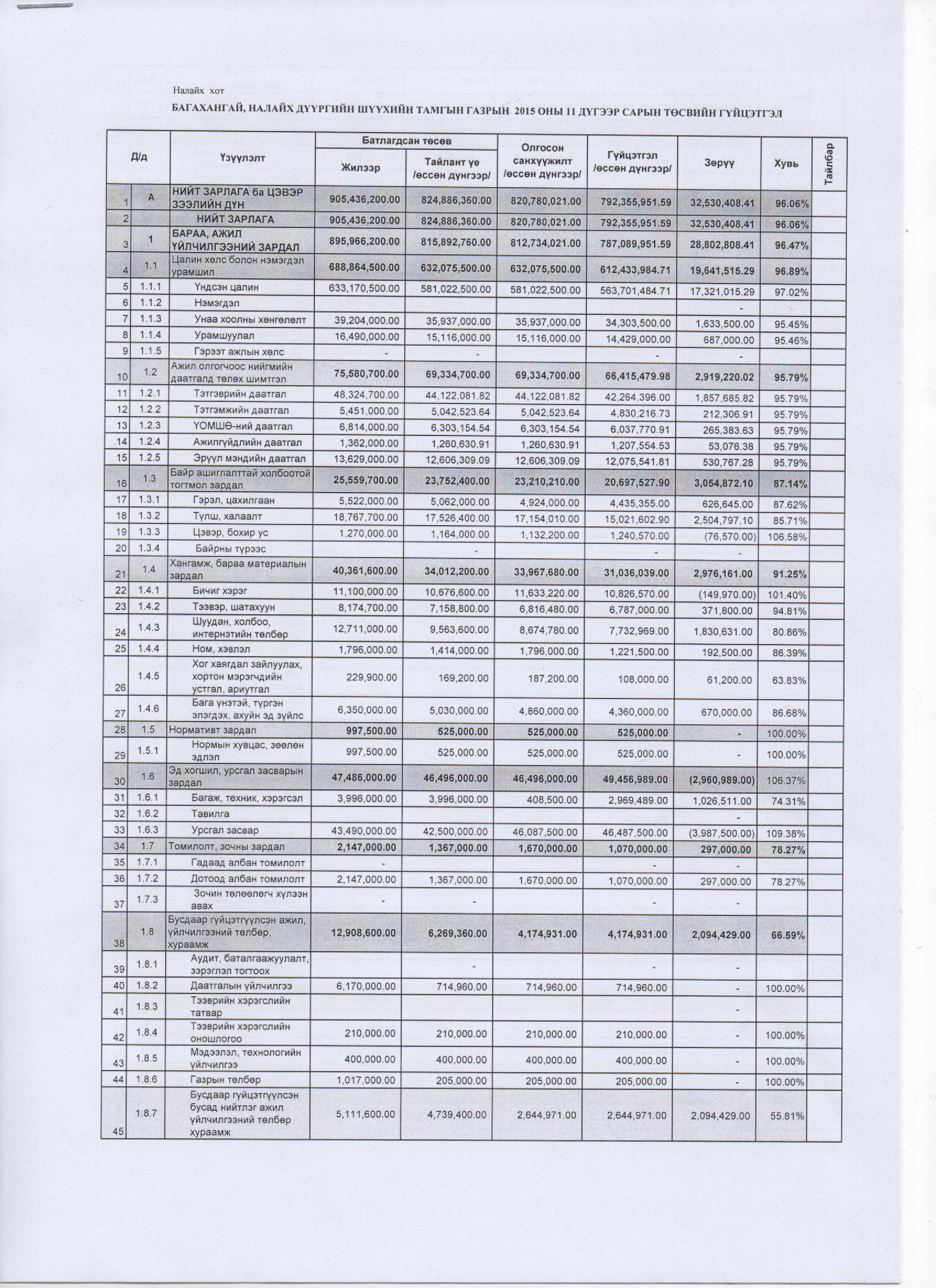 2015 оны 11 дүгээр сарын төсвийн гүйцэтгэл