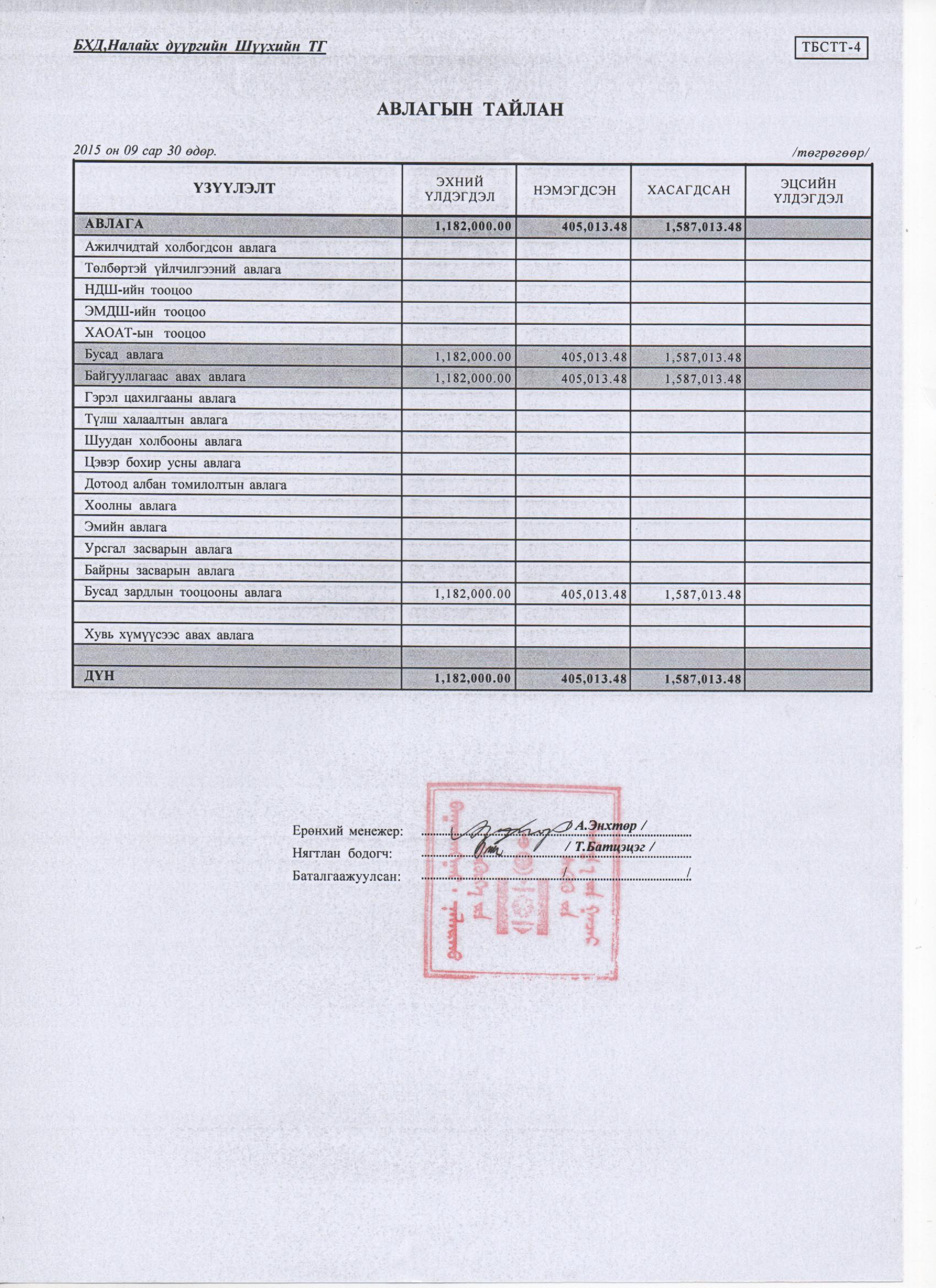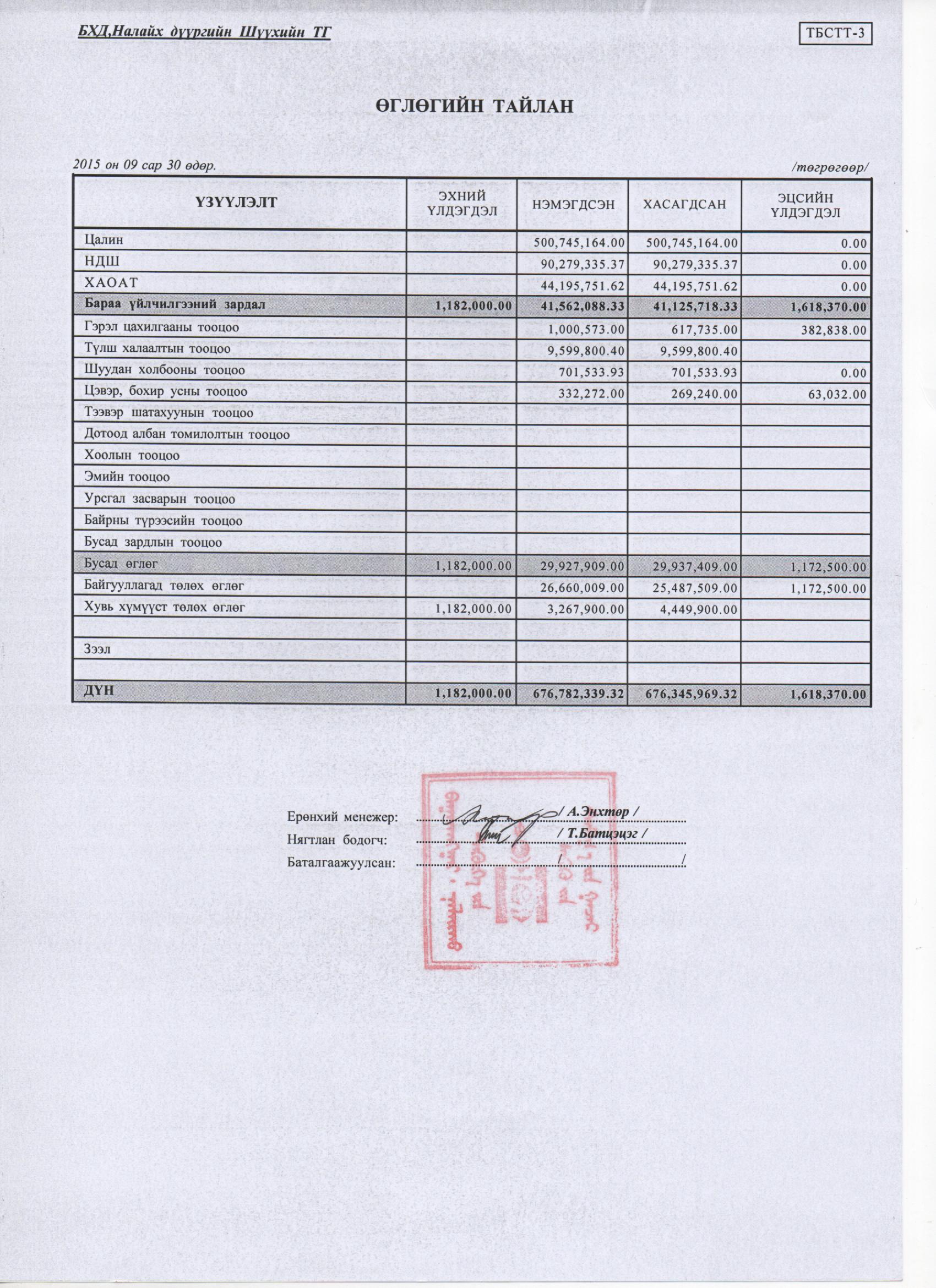 Өглөг, авлагын тайлан 3 дугаар улирал