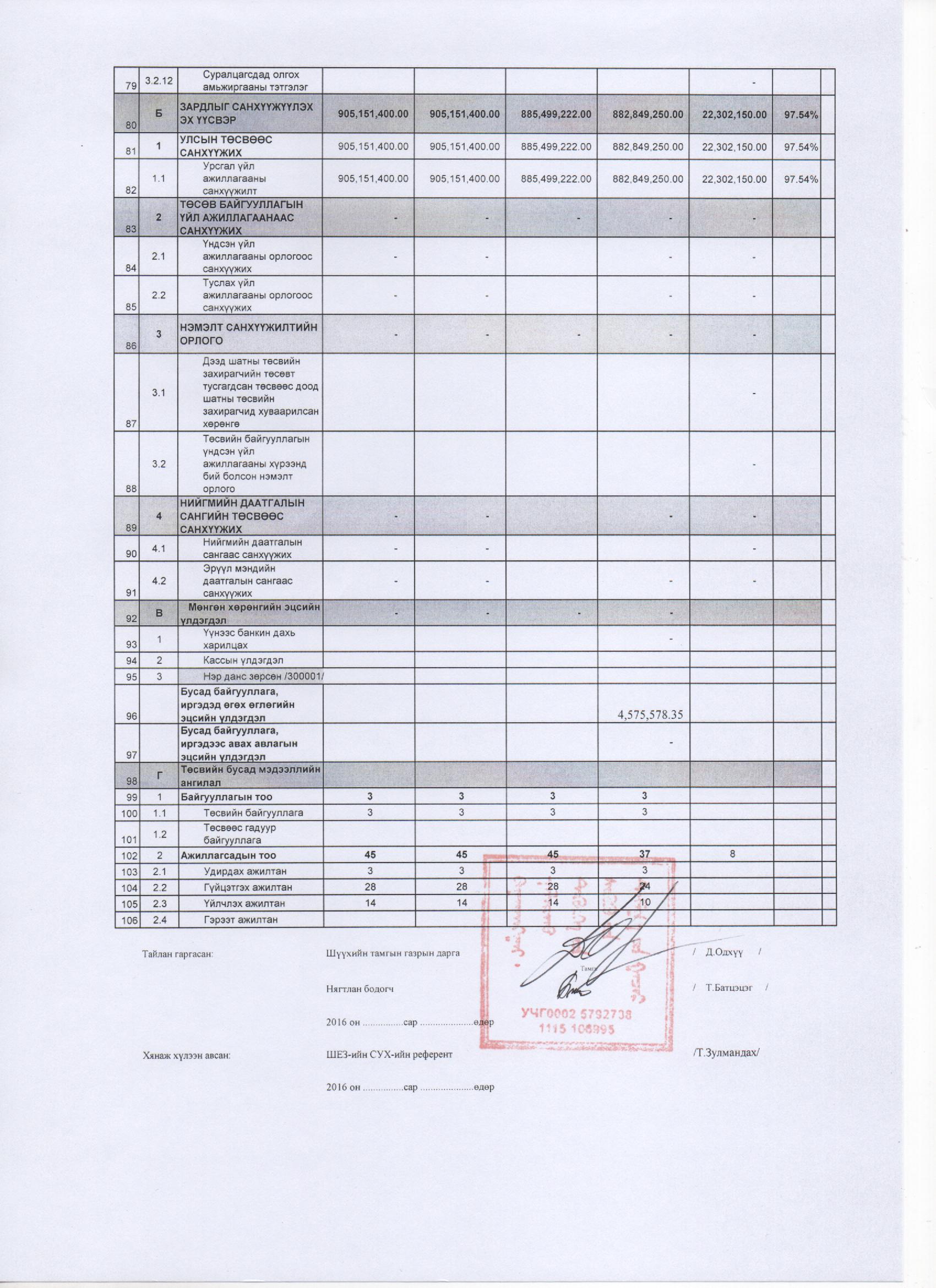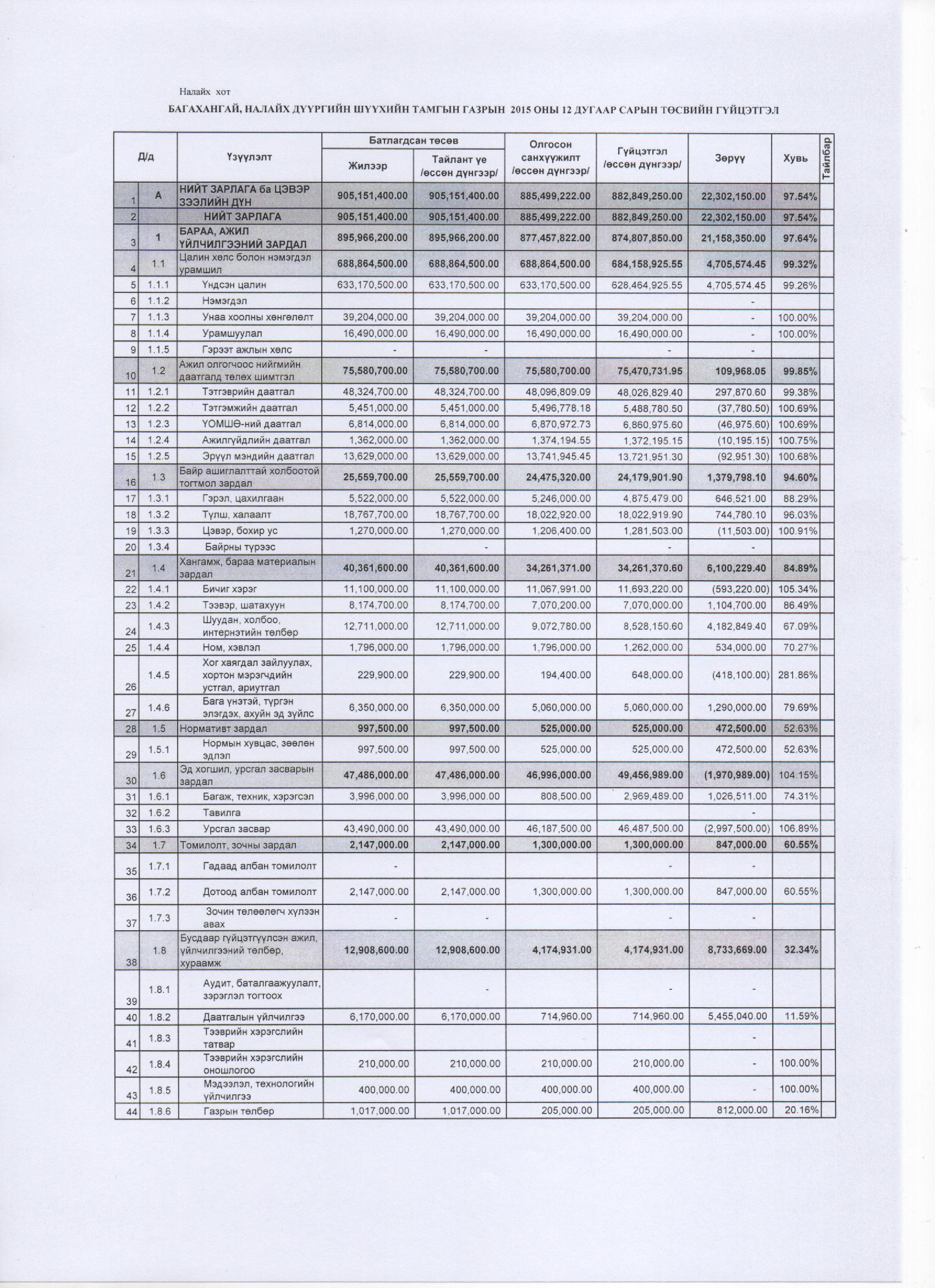 2015 оны 12 дугаар сарын төсвийн гүйцэтгэл