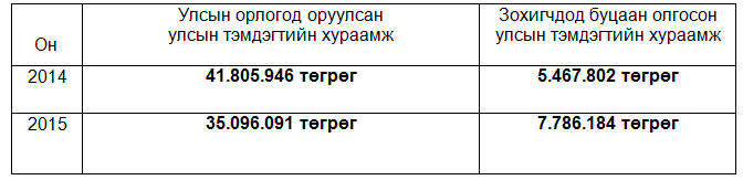 2015 оныг өмнөх 2014 оны мөн үетэй харьцуулахад:
