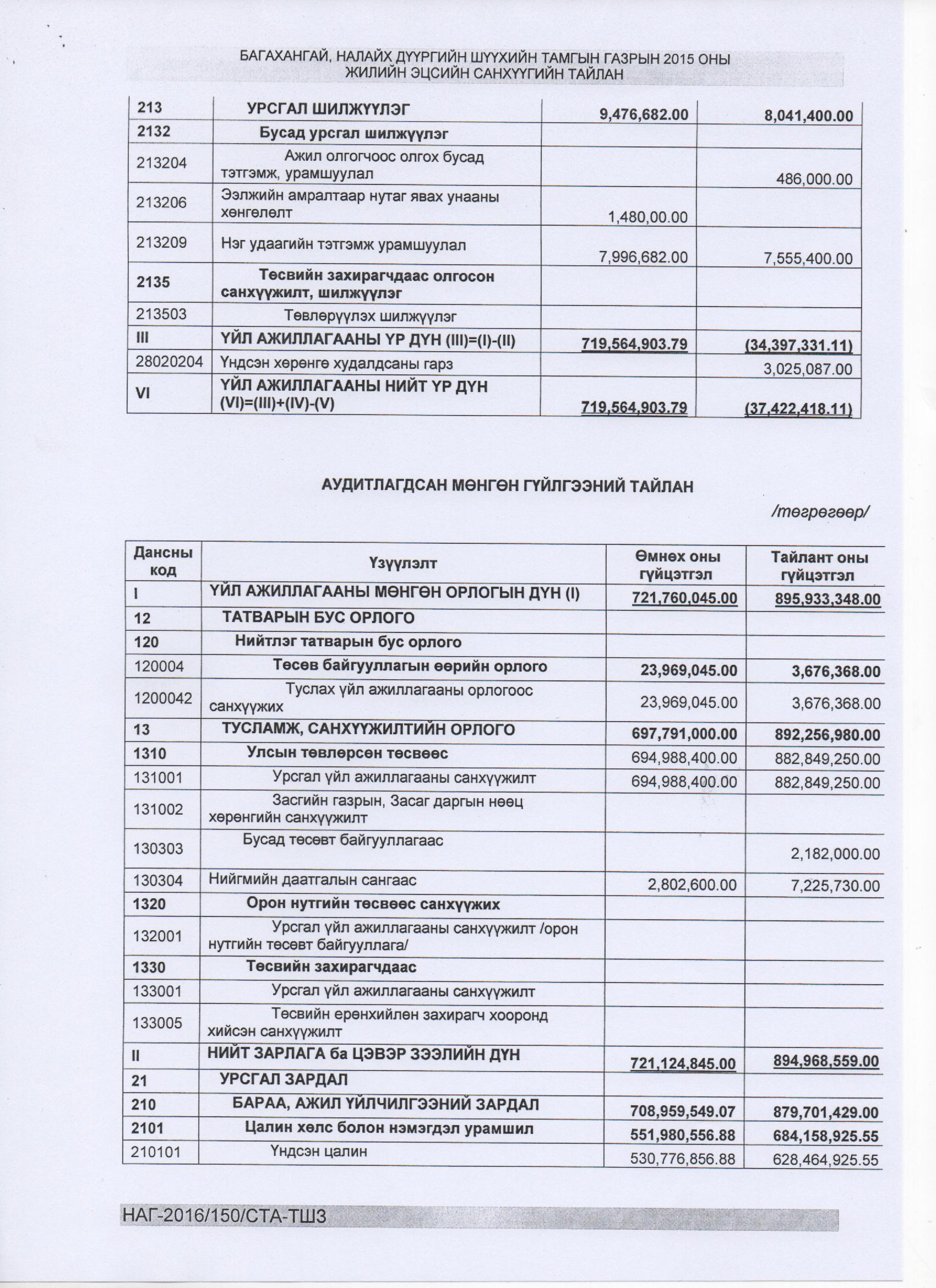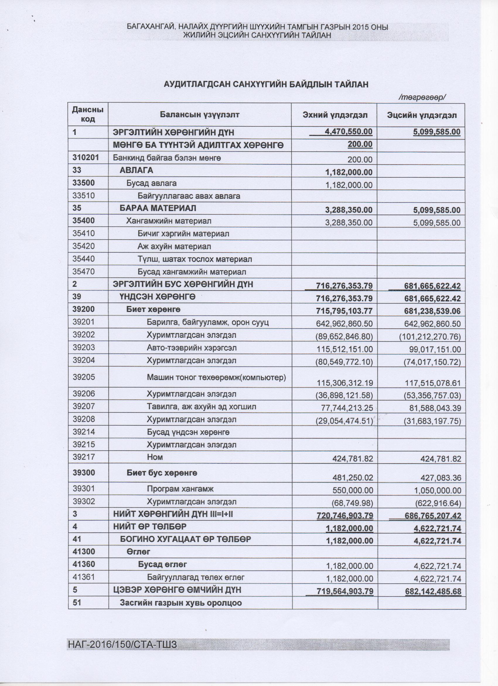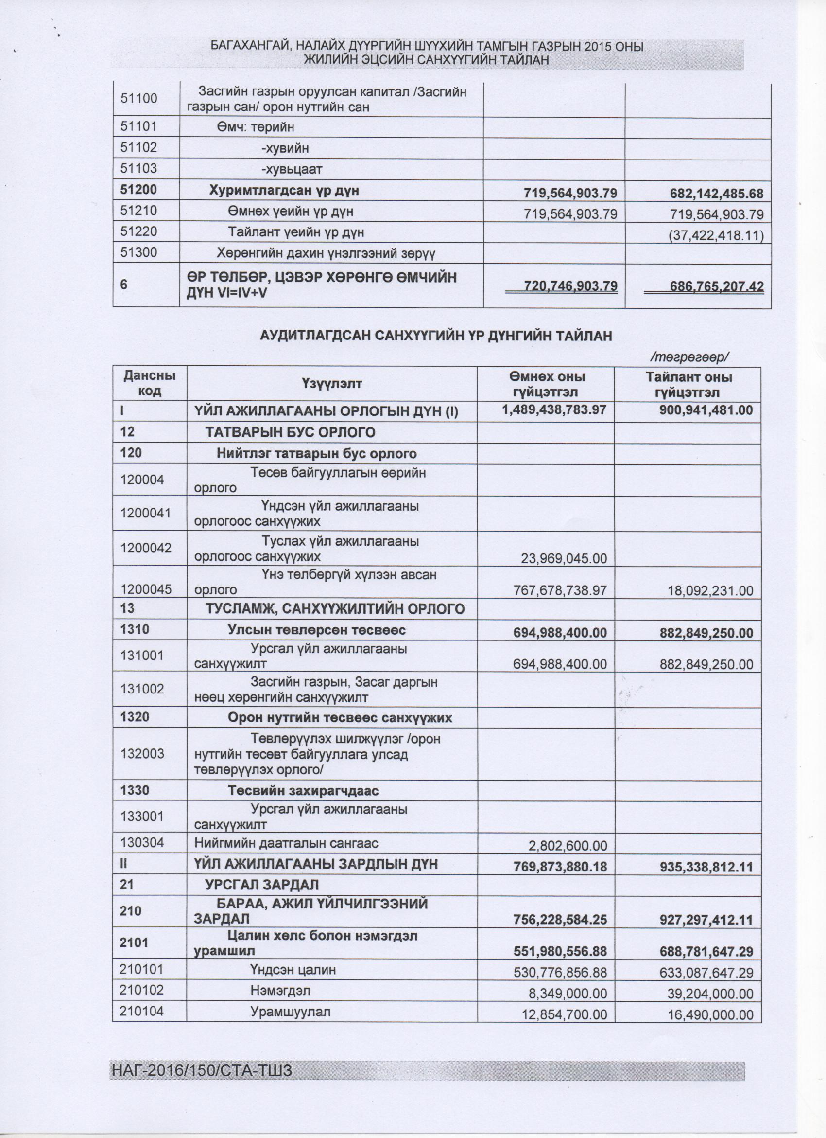 2015 оны аудитлагдсан тайлан
