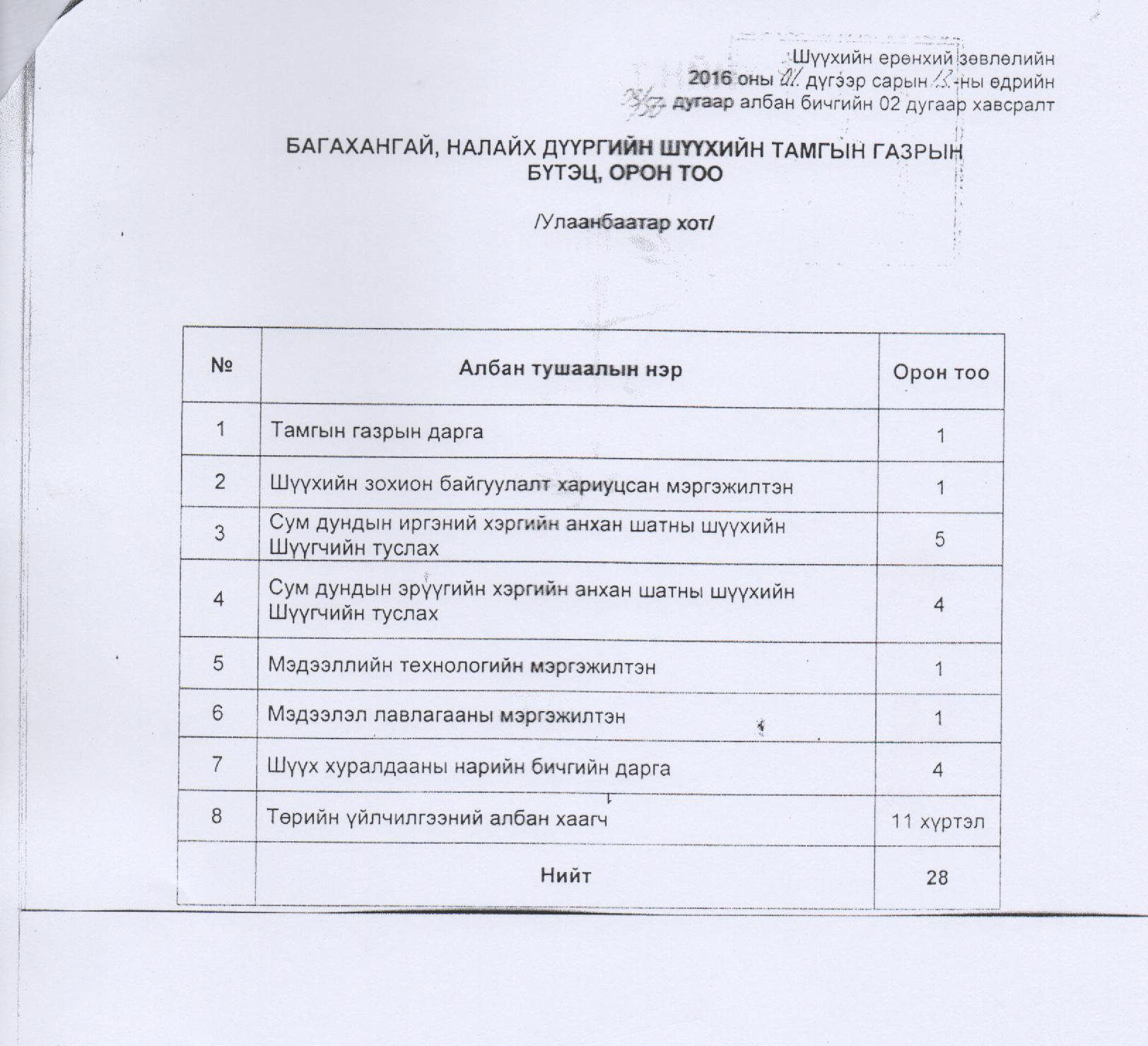 Шүүхийн тамгын газрын бүтэц, орон тоо 2016